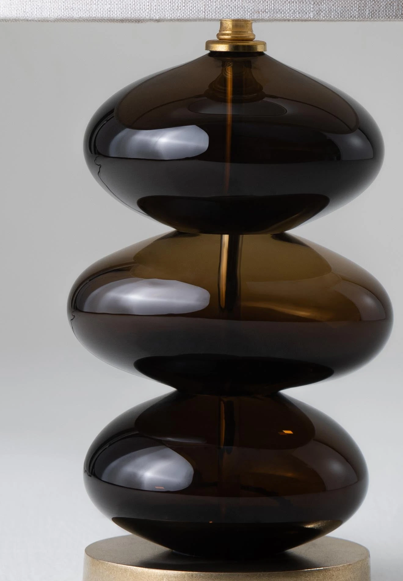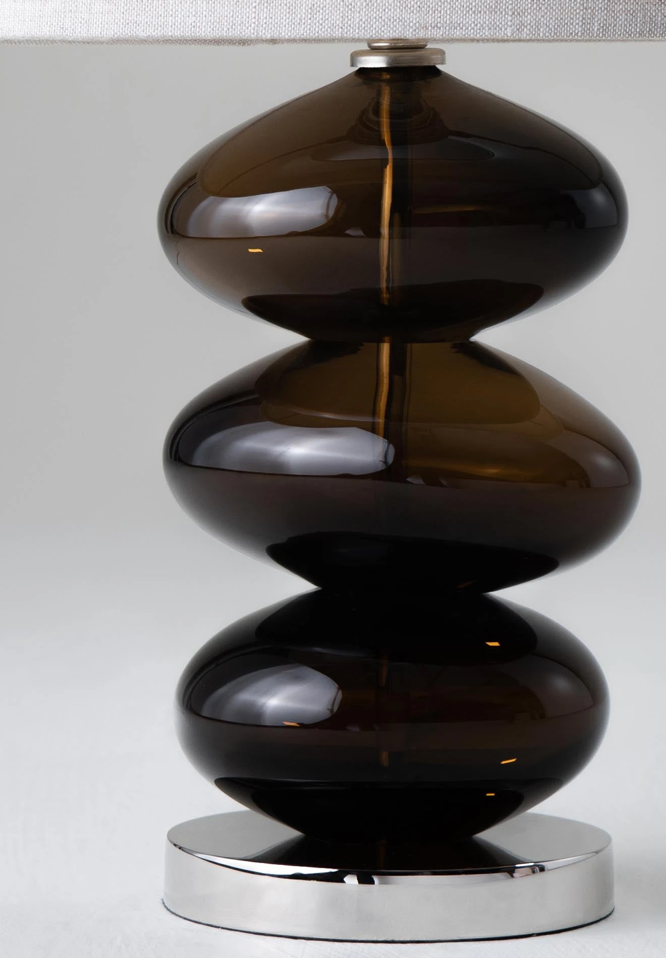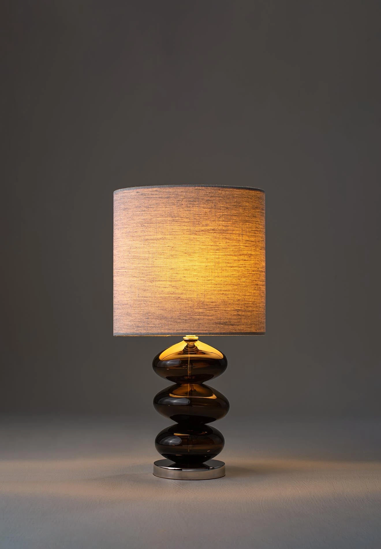 The Adam Lamps were designed by British glass artist Adam Aaronson. Resembling a stack of pebbles on the beach, each glass ‘pebble’ is blown, ground and polished to balance perfectly.