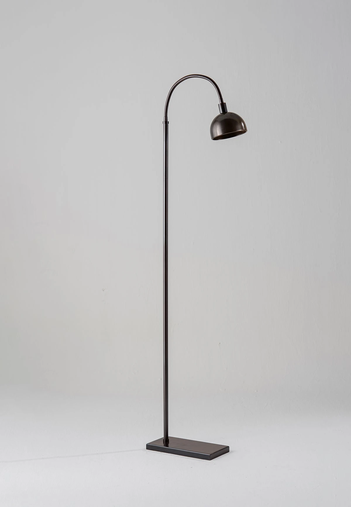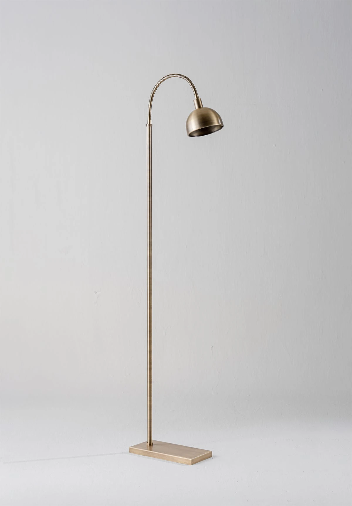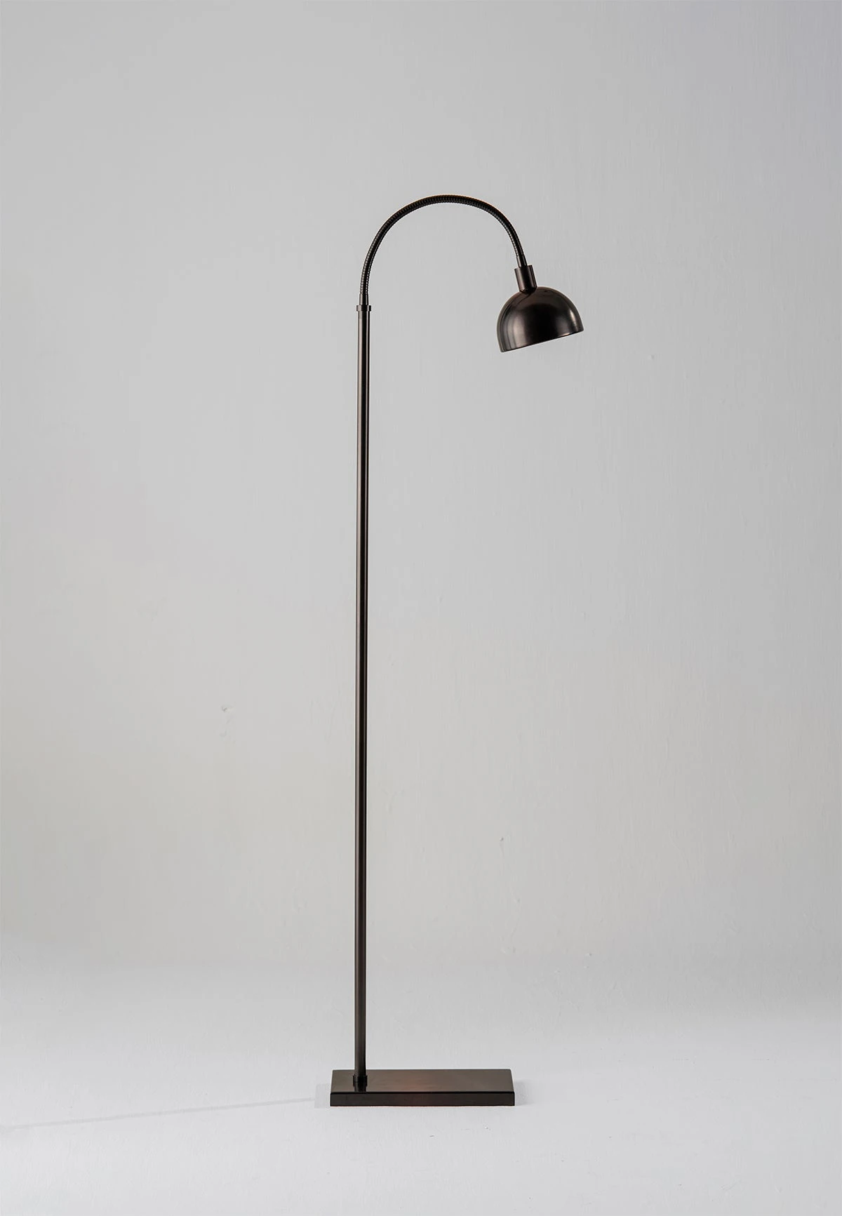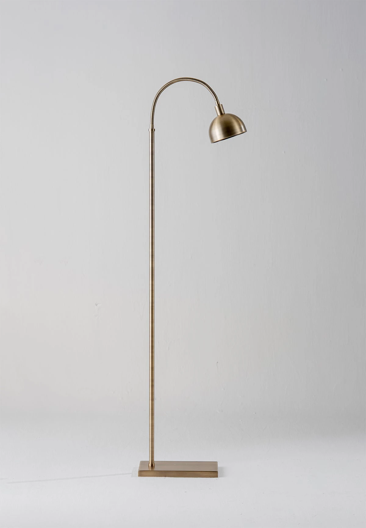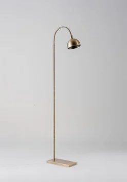Based on the popular Arc floor lamp. The Aguilar features a classic rectangular base and curved antenae with a cupped metal shade.