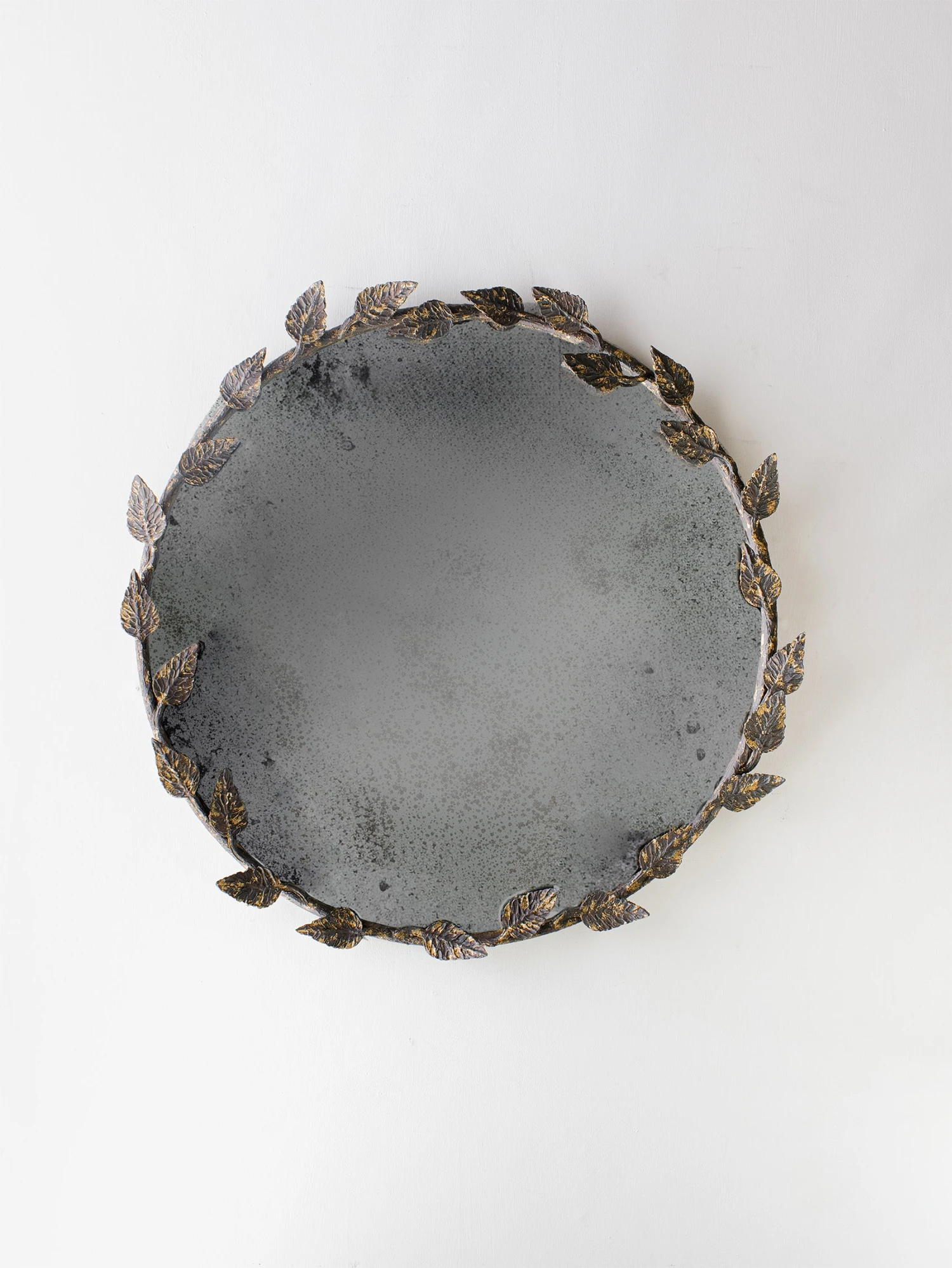With its hand-cut metal leaves and textured circular frame, the Aurelia Mirror is based on a Roman metal garland. Each metal leaf has been covered in a thick layer of impasto to create a sculptural effect. The Aurelia is also available in small.