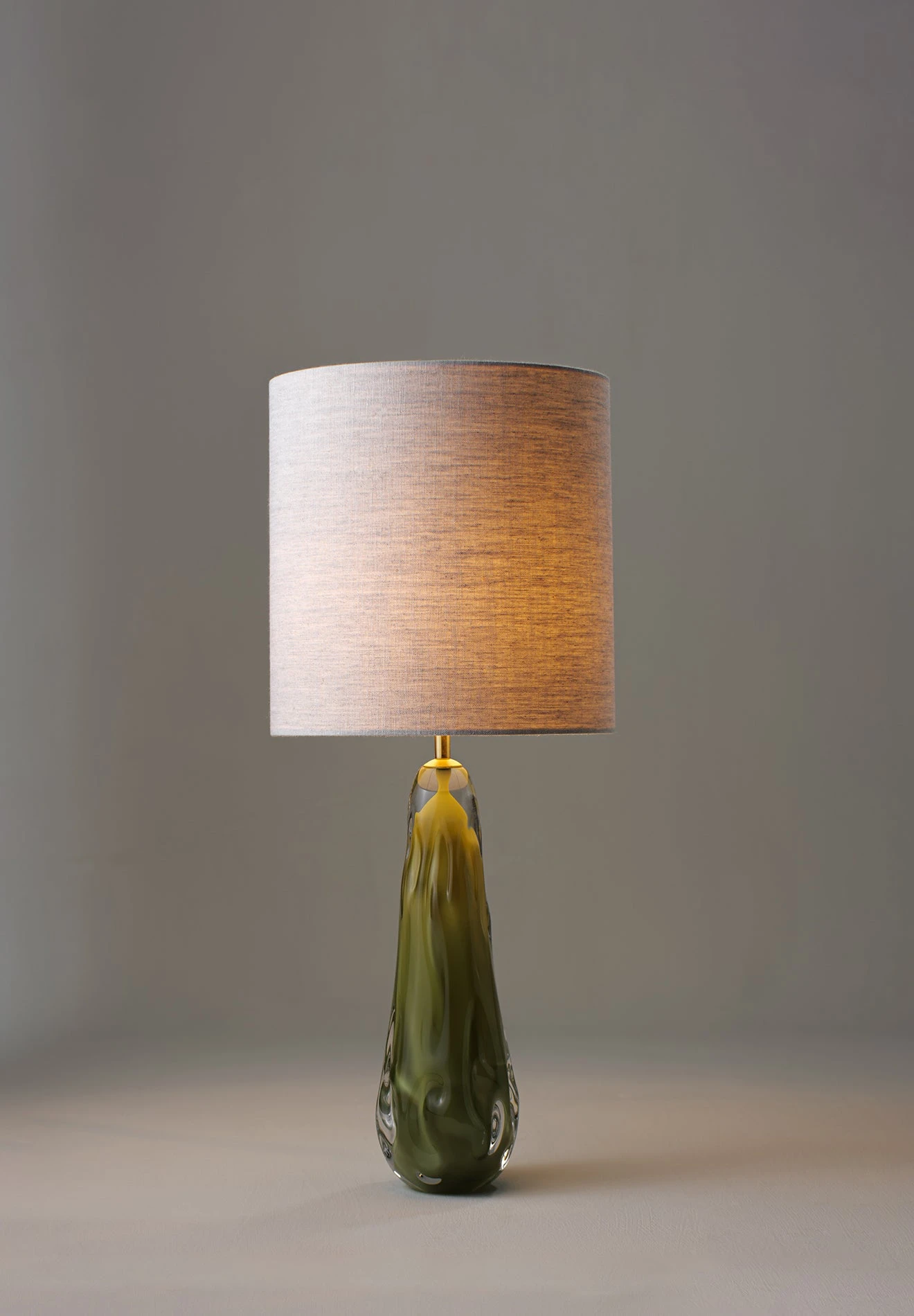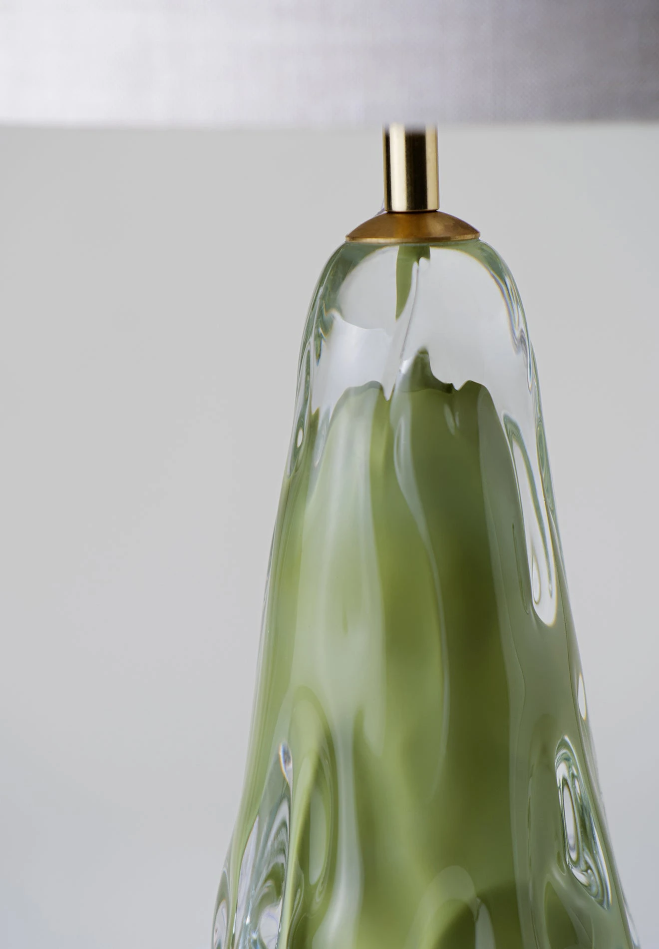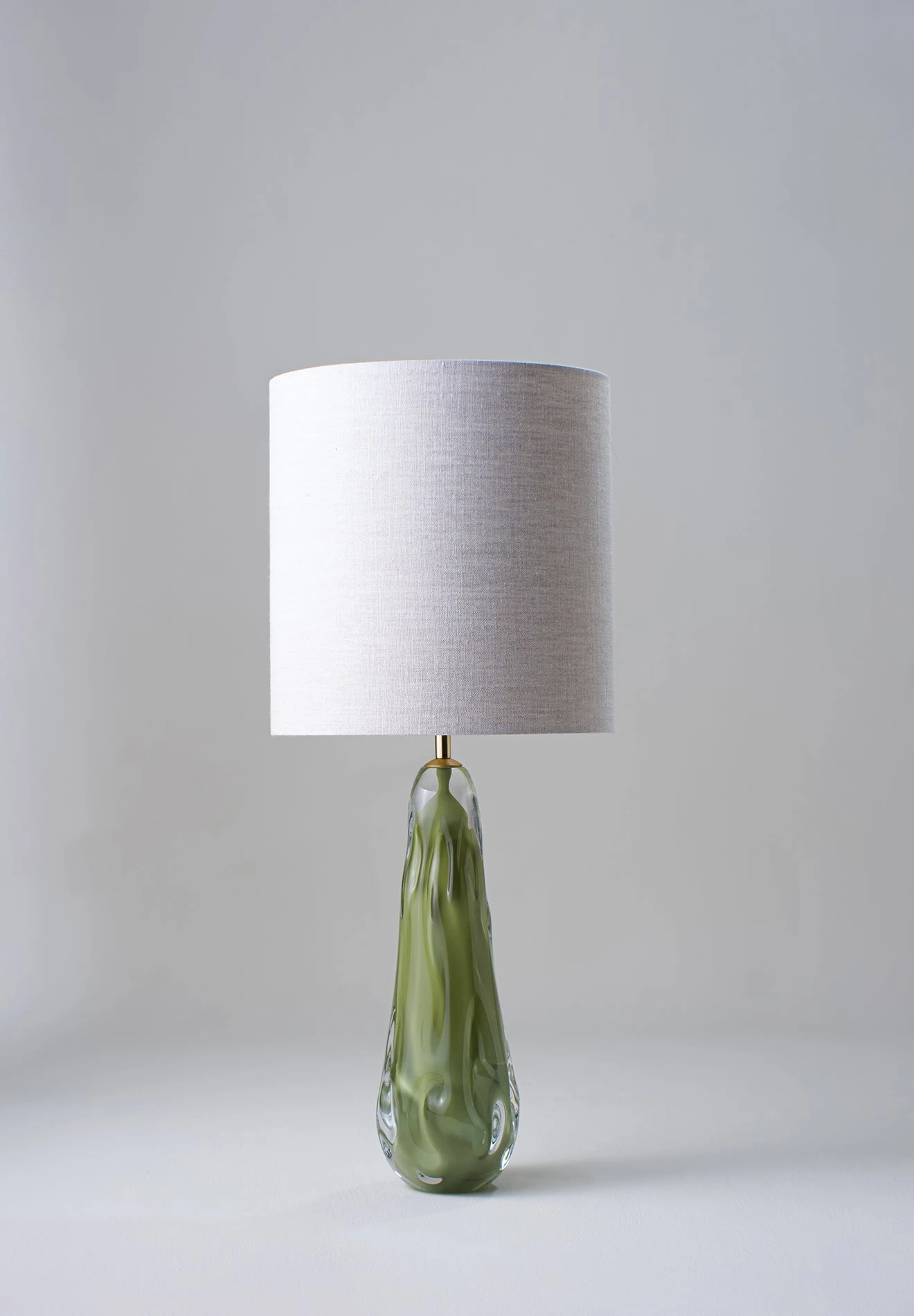 The Large Avocado Lamp resembles a piece of molten glass. Made of 2 layers; its rippled surface catches the light from above with a coloured encapsulation within.