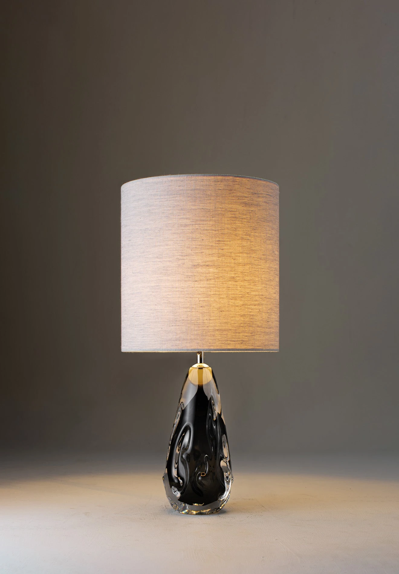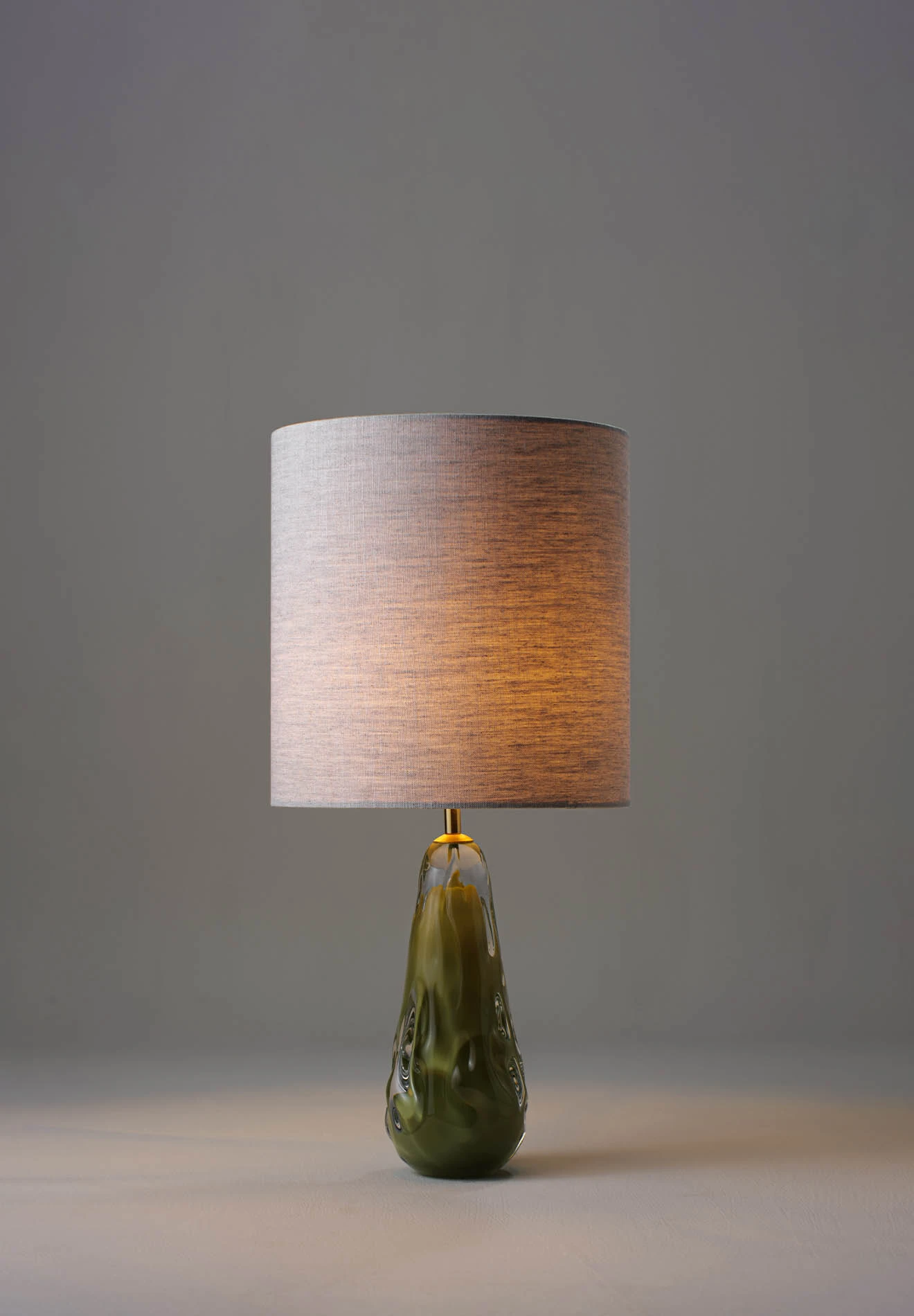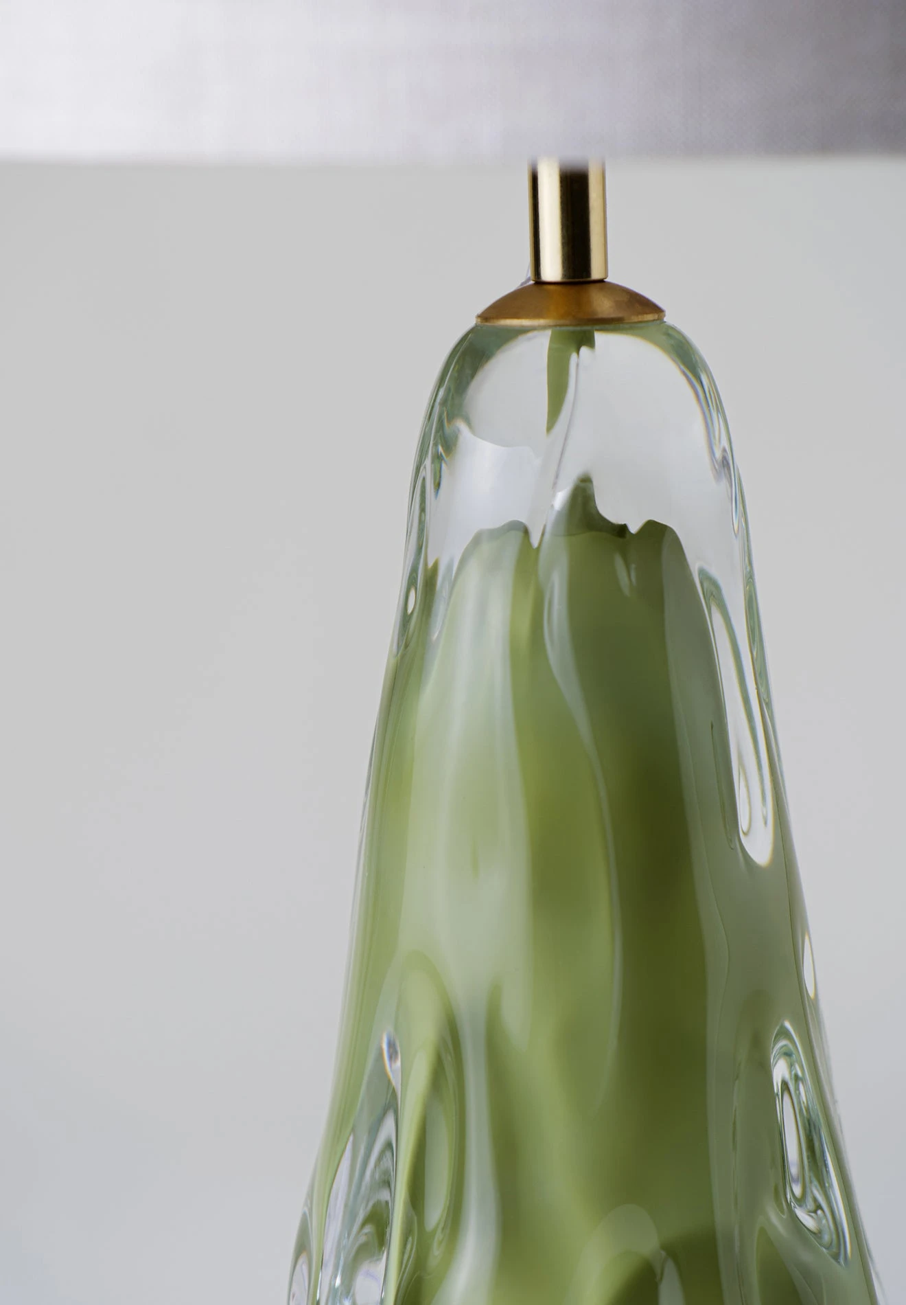 The Small Avocado Lamp resembles a piece of molten glass. Made of 2 layers; its rippled surface catches the light from above with a coloured encapsulation within.