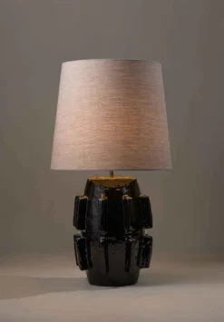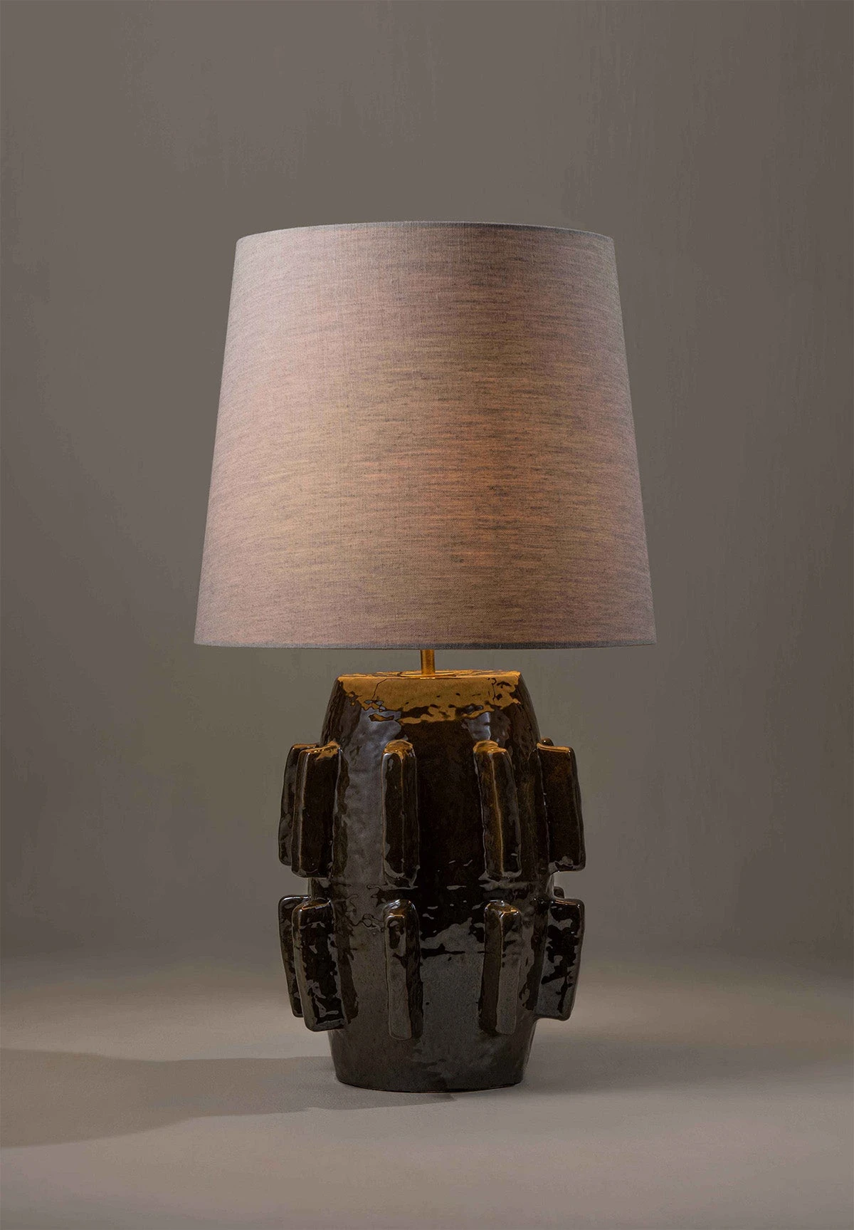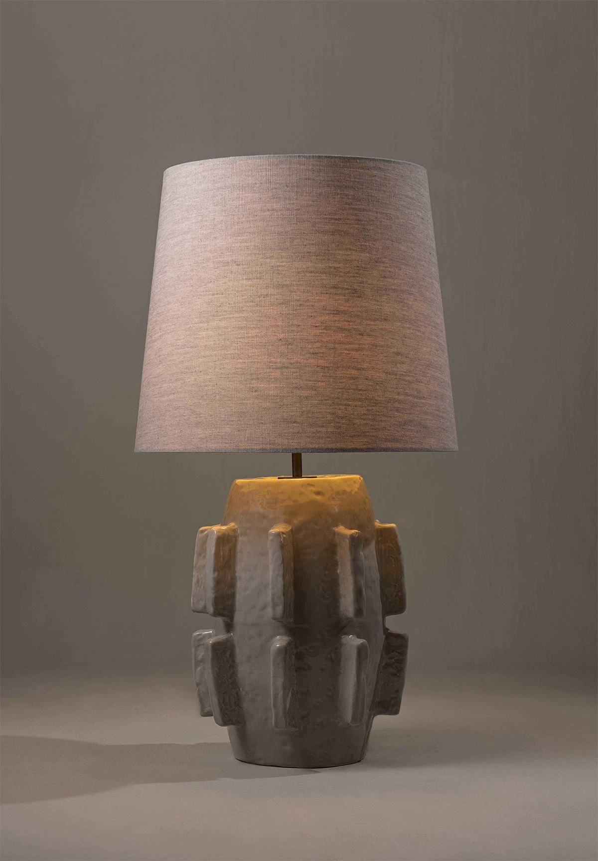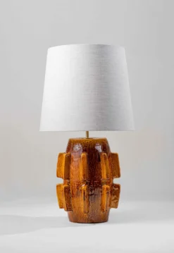 The Barbara lamp pays homage to the modernist sculptures of Barbara Hepworth. The piece was initially hand-sculpted and textured in clay before being produced in ceramic and fired in a range of different reactive glazes.