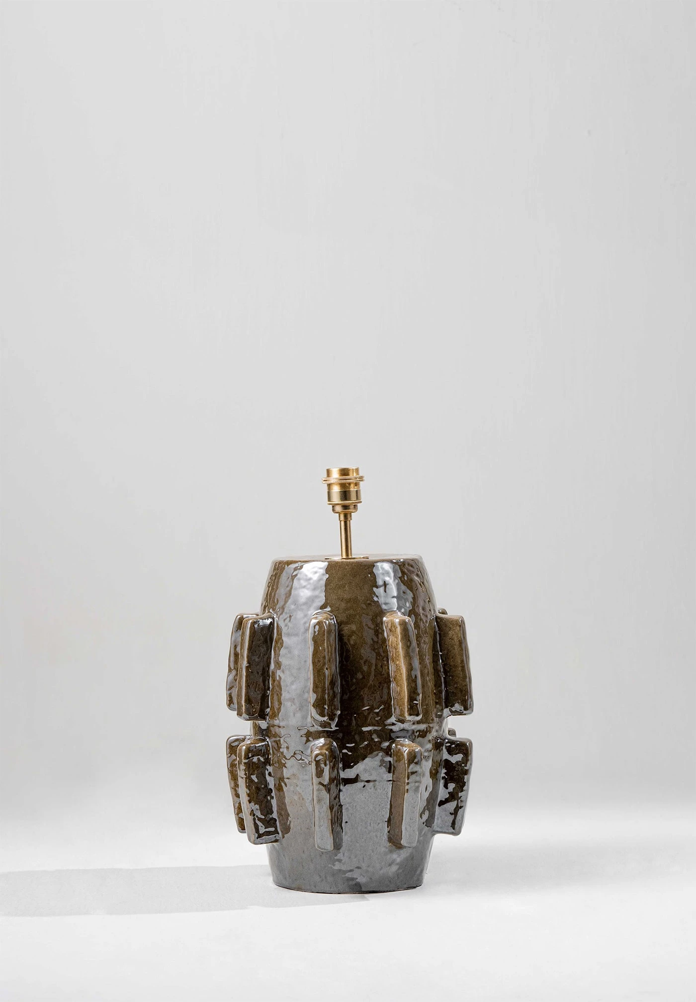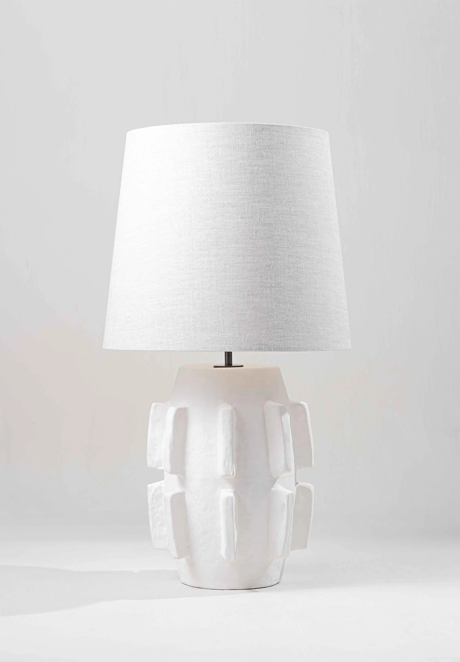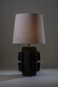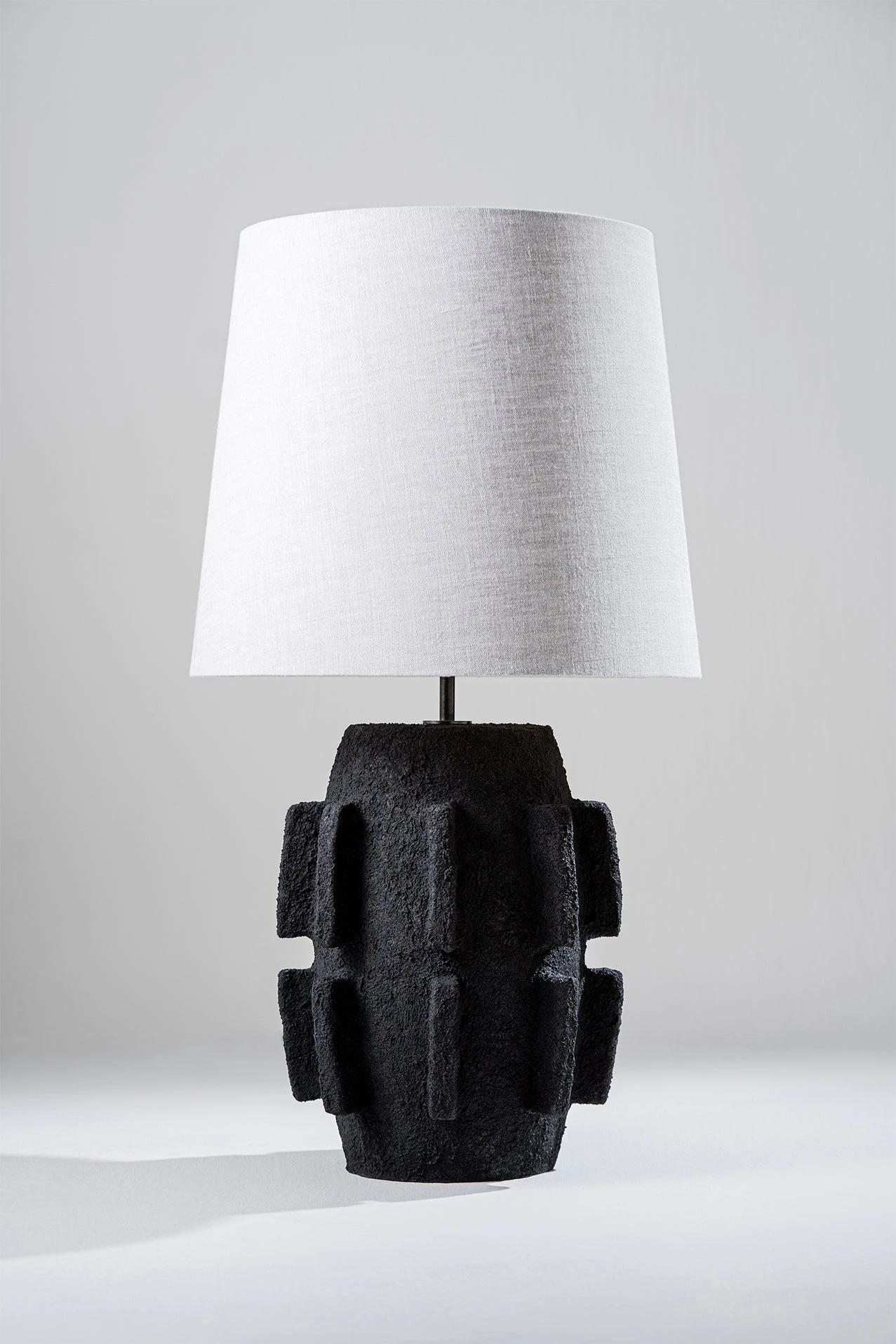 The Barbara lamp pays homage to the modernist sculptures of Barbara Hepworth. The piece was initially hand-sculpted and textured in clay before being produced in ceramic and fired in a range of different reactive glazes.