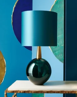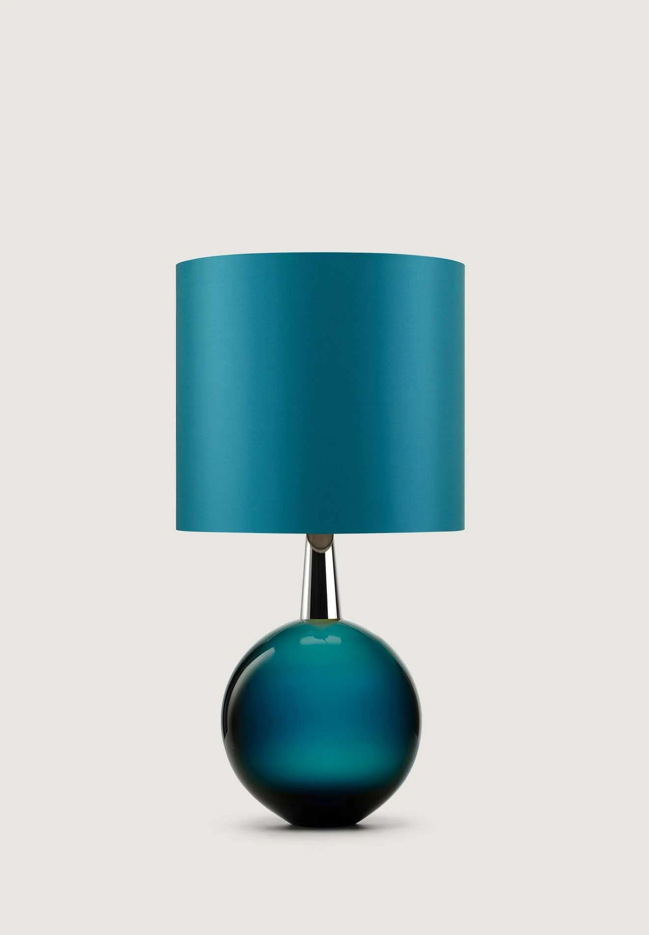 The Bishop Lamp is free-blown in order to maintain the rich intensity of the coloured glass pigment. It is paired with an elongated flute-shaped collar.
