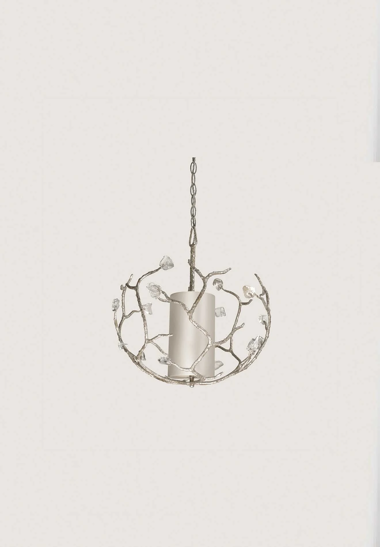 Each Blossom Chandelier has been made and textured in forged steel, with every arm carrying individually formed shards of glass that catch and reflect the light onto the ceiling above.