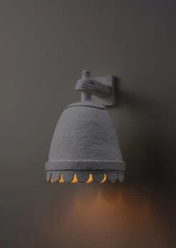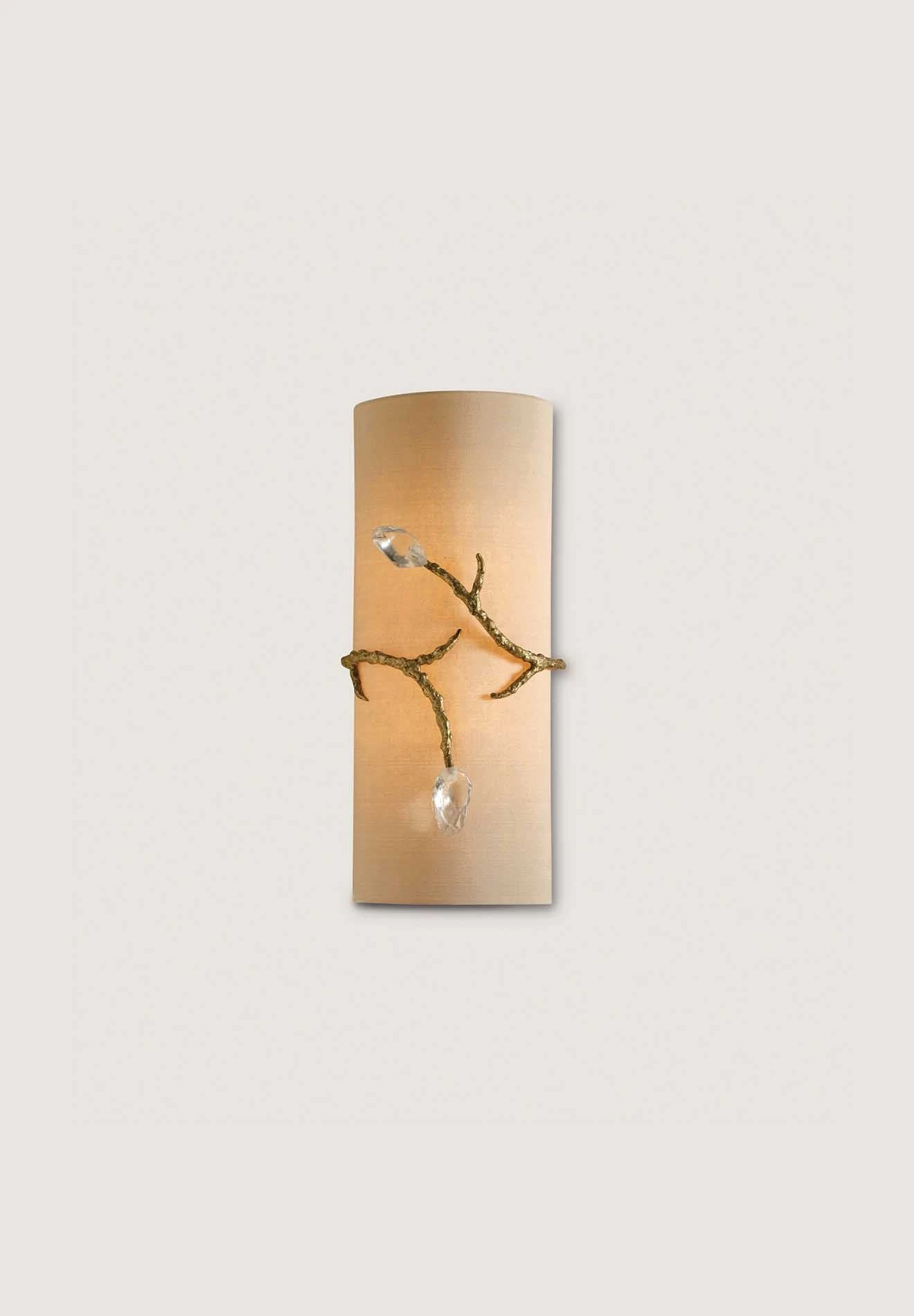 Each Blossom Wall Light has been made and textured in forged steel with ‘blossom’ motifs formed from shards of glass, the piece is lit from within the shade creating a soft diffused light.