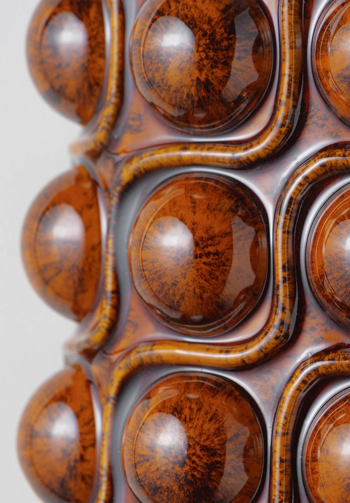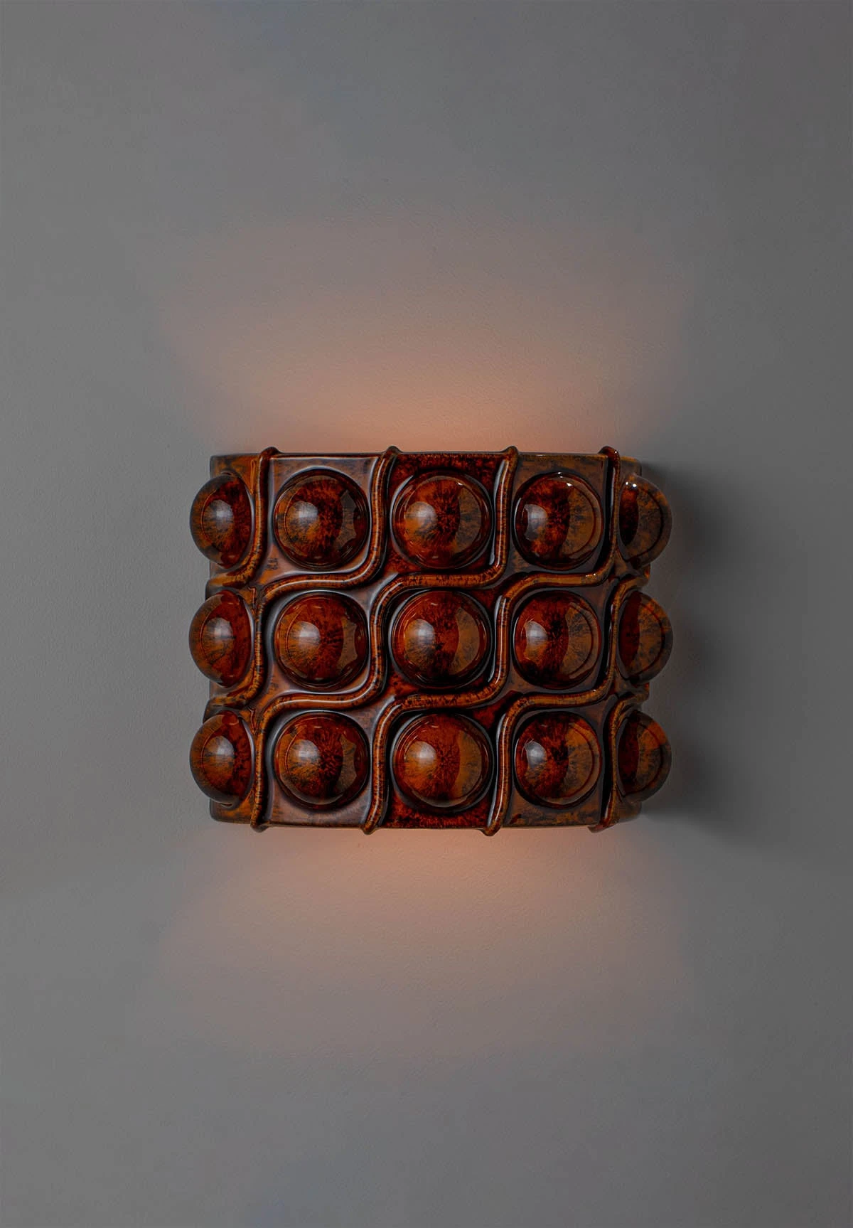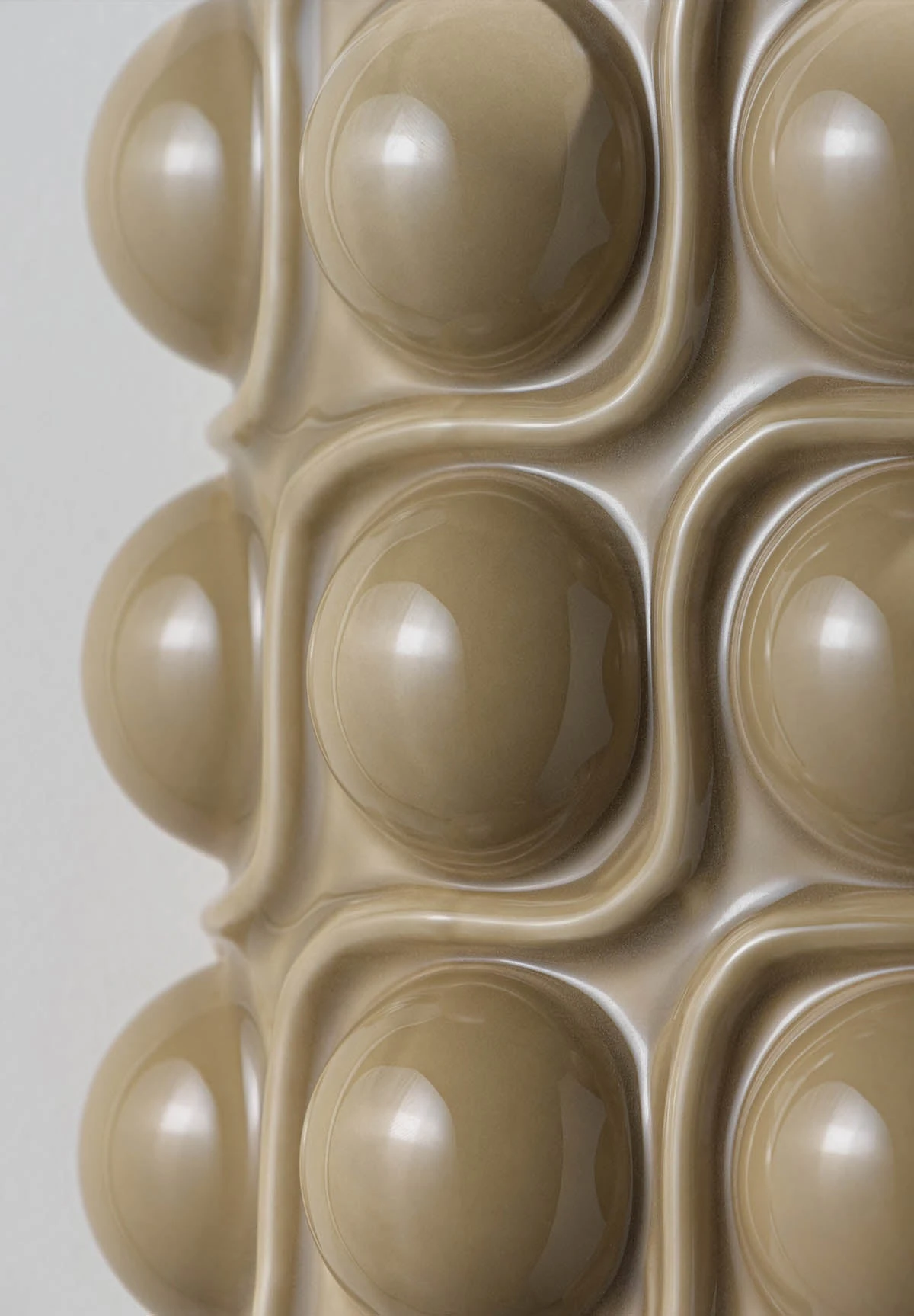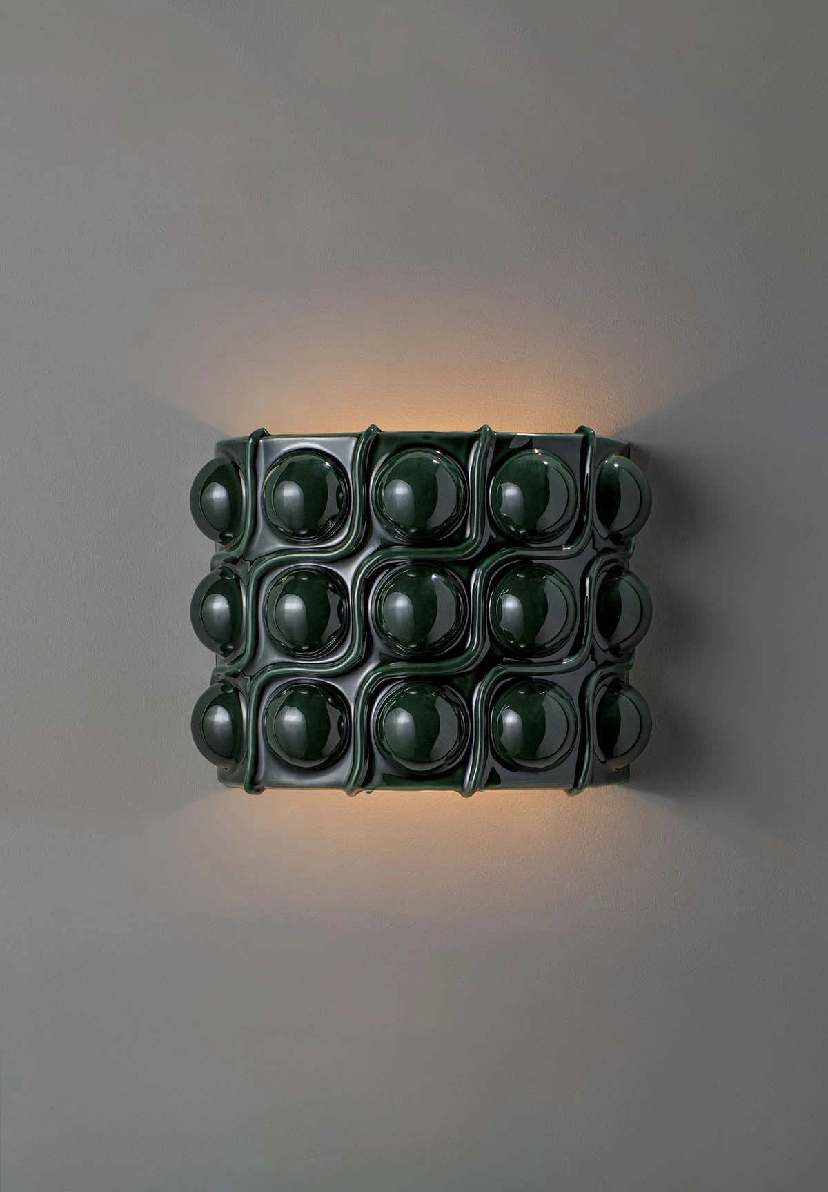 The Boublé table lamp, a retro-inspired ceramic lamp inspired by the work of Georges Jouve, has been an important part of the Porta Romana collection for 15 years. For Spring 25, the design has been reinterpreted as the striking Bolla wall light in a range of irresistible glazes including Safari, Tigers Eye, Pudding, Almond or Myrtle.