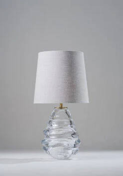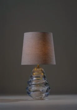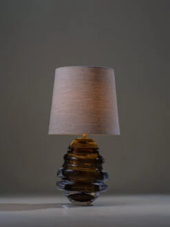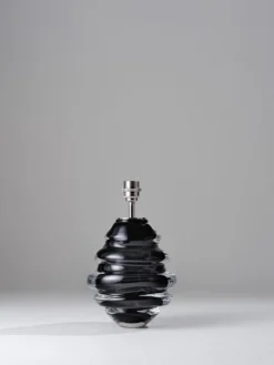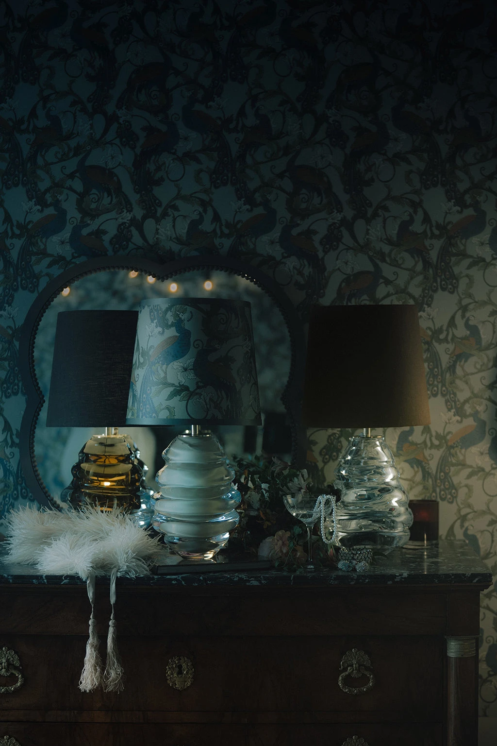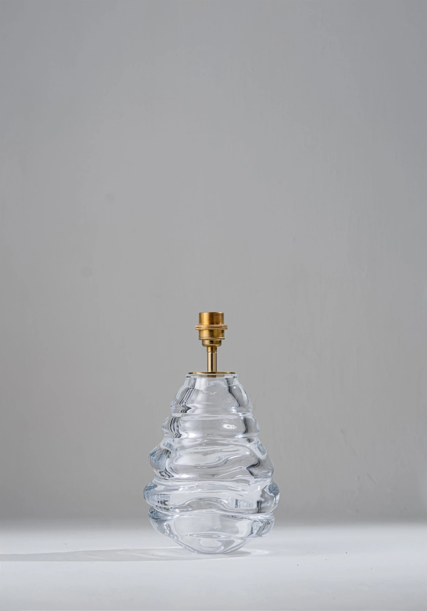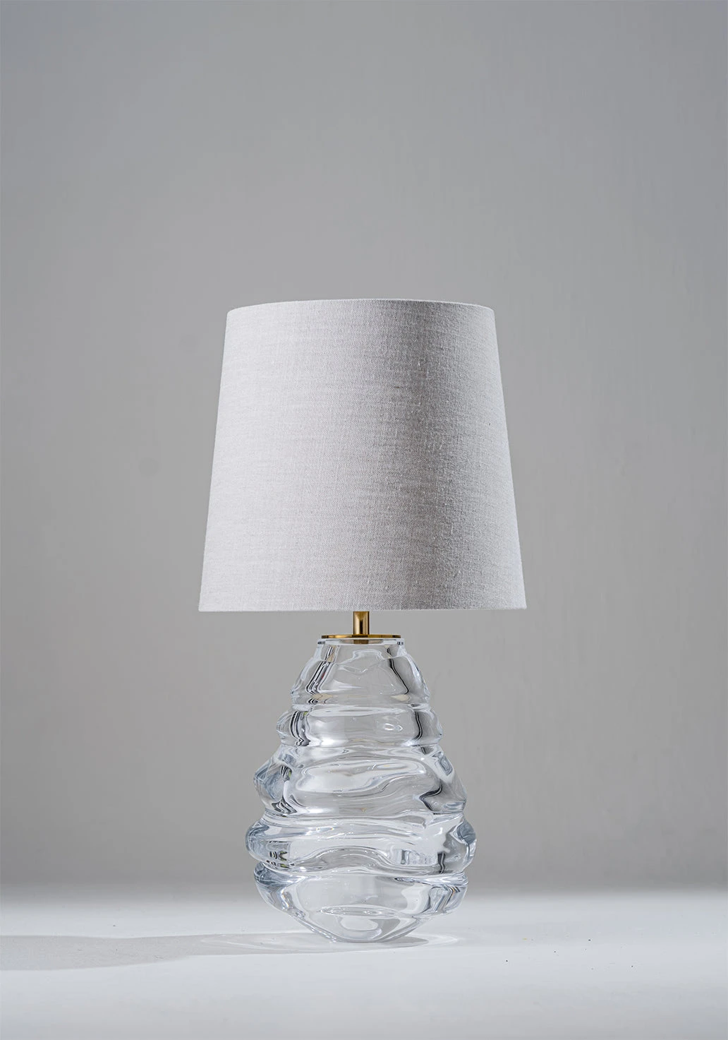 The Briony lamp is made from handblown glass. The centre, coloured in either Charcoal, Cedar, Moth or Clear is then encapsulated in thickly layered rich folds of clear glass, to create an even greater sense of depth.