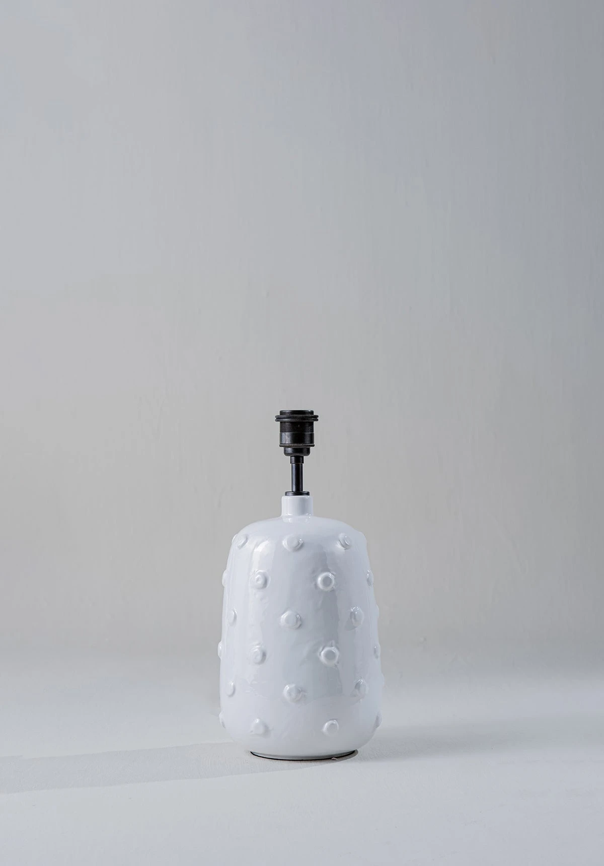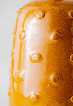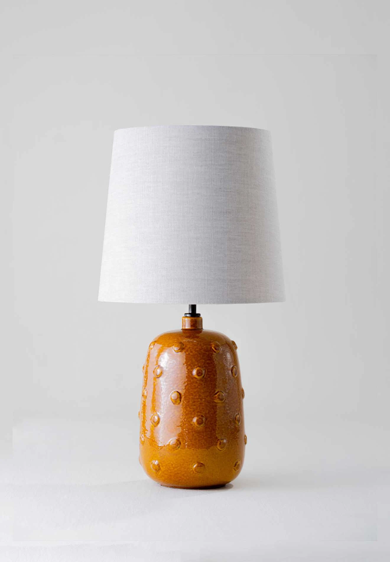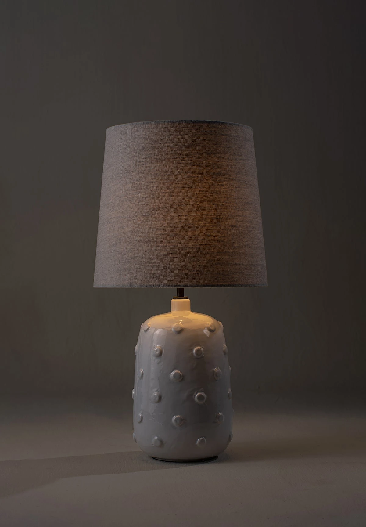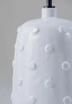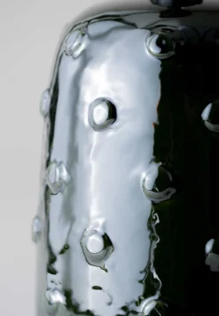 Inspired by ancient ceramics from Mesopotamia, the Button ceramic lamp is coated in a syrup of glaze scattered with irregular studs.