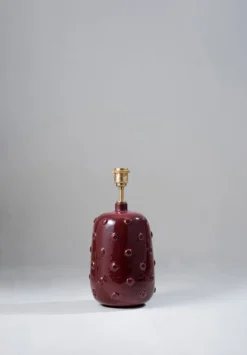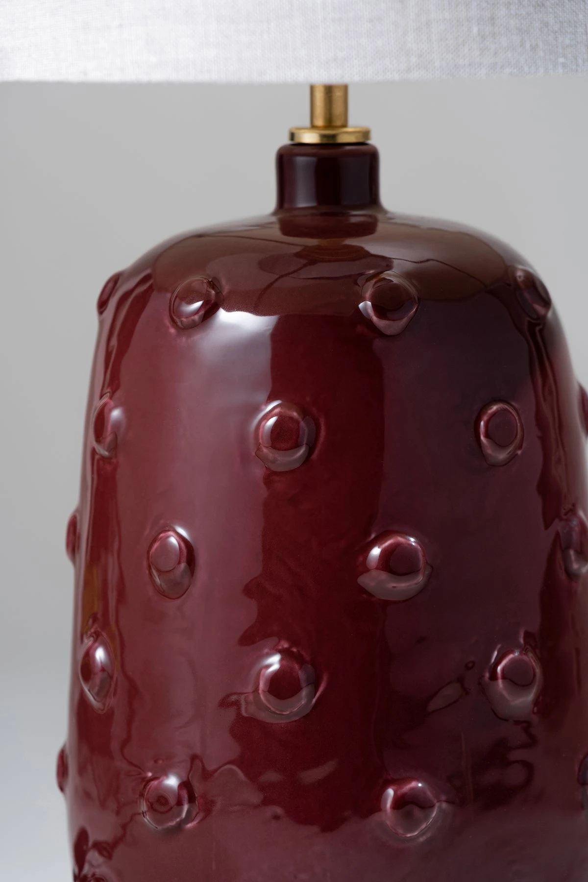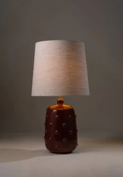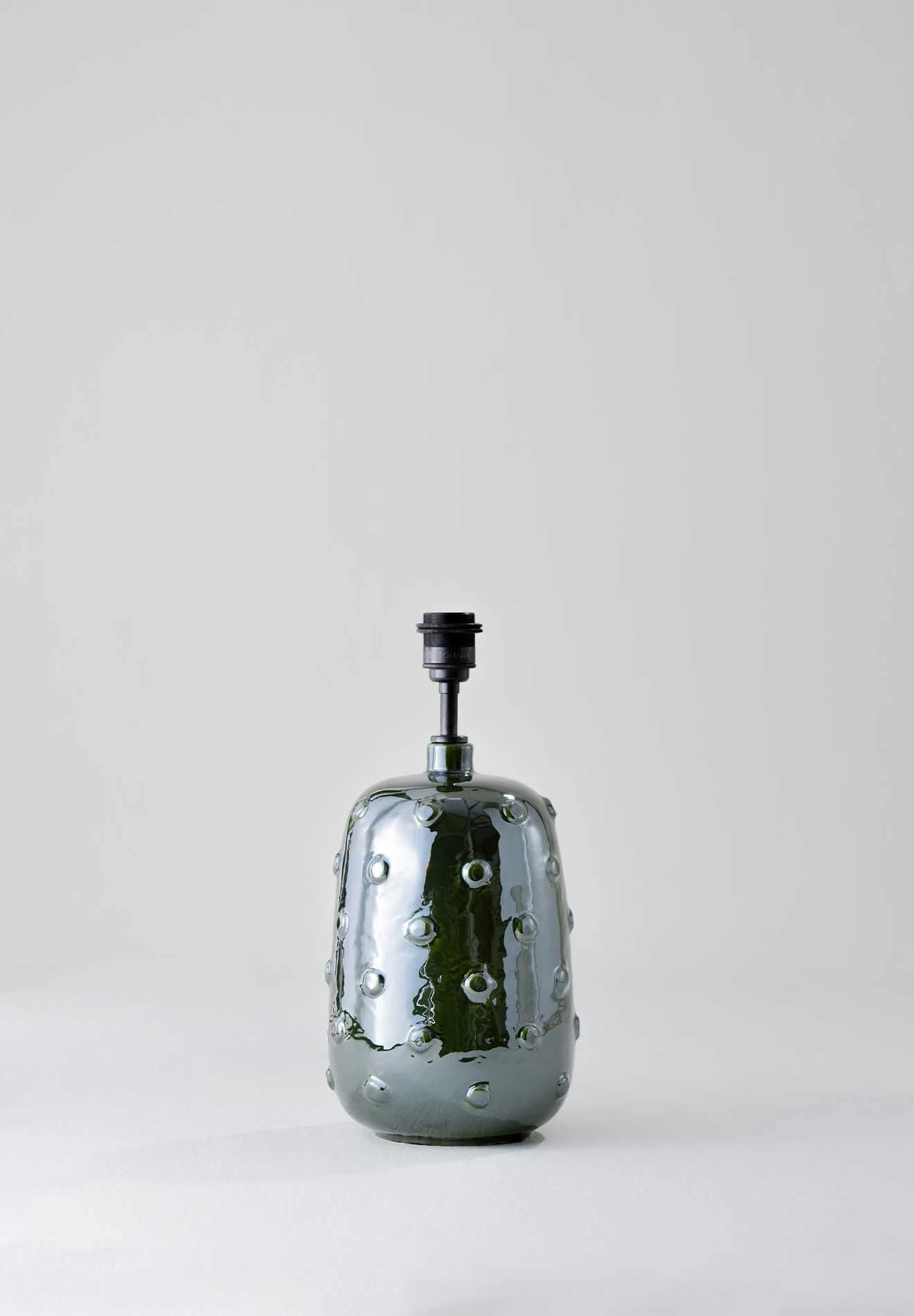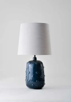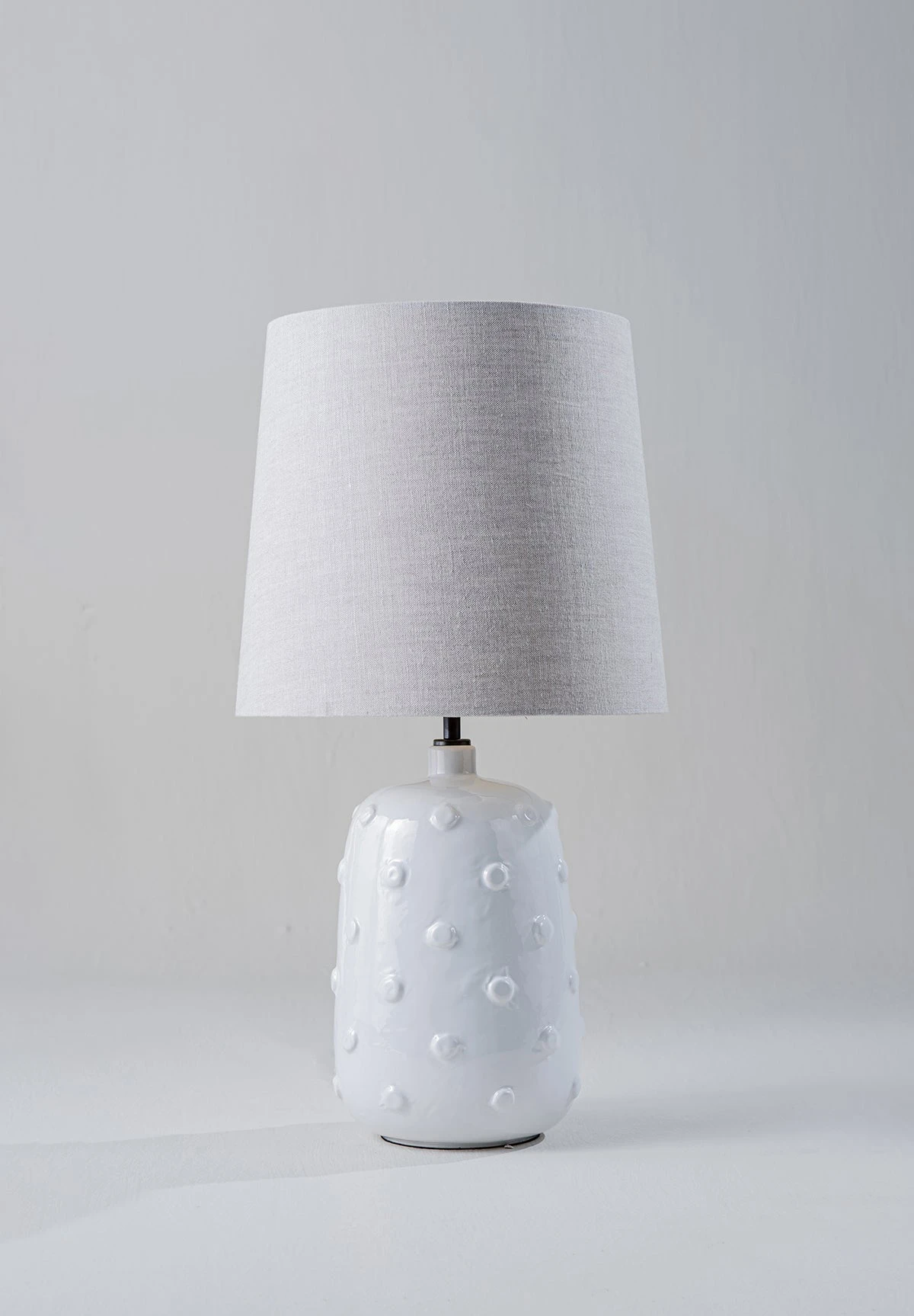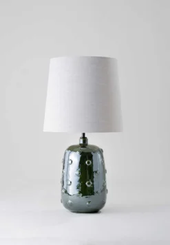 Inspired by ancient ceramics from Mesopotamia, the Button ceramic lamp is coated in a syrup of glaze scattered with irregular studs.