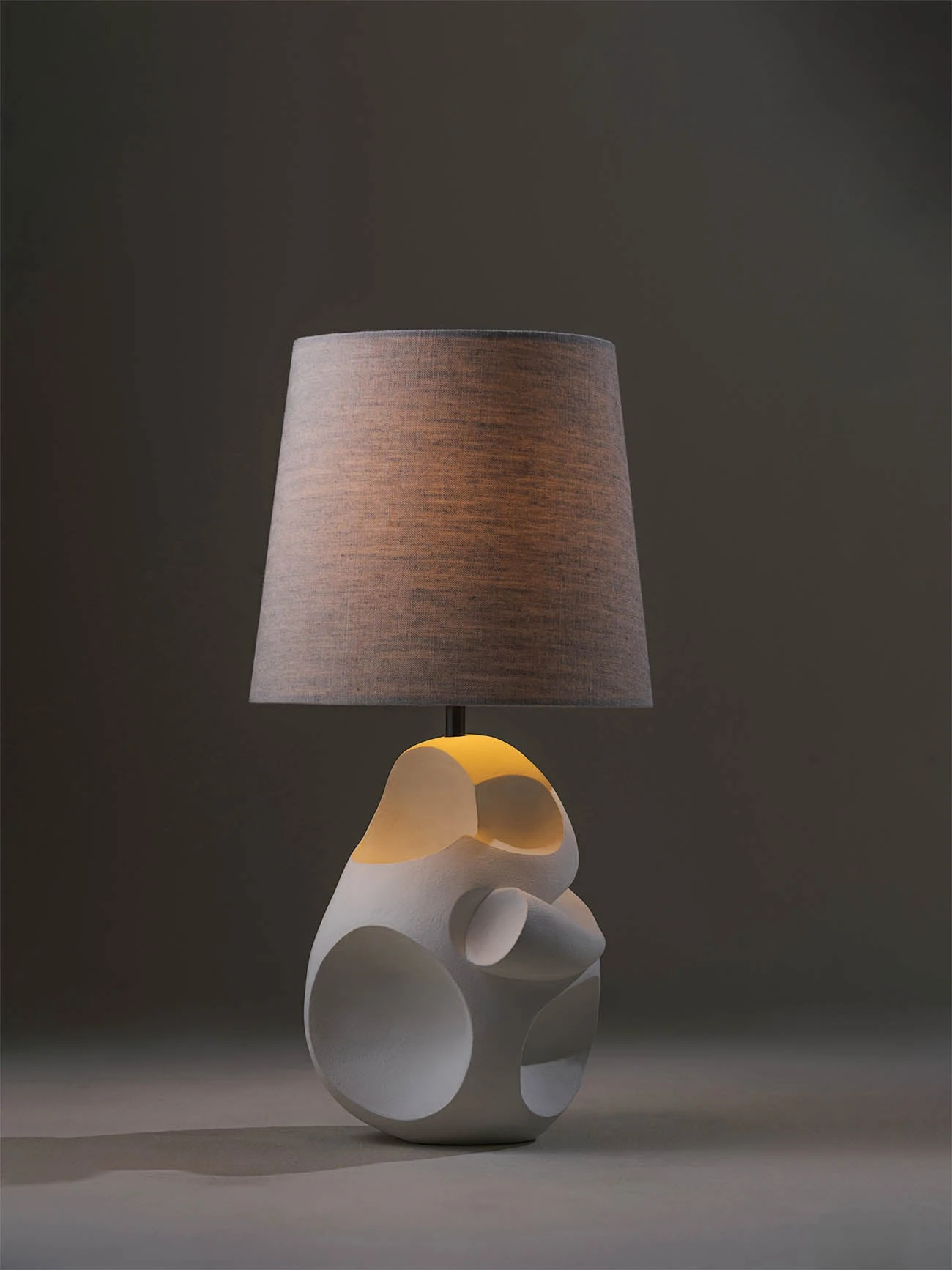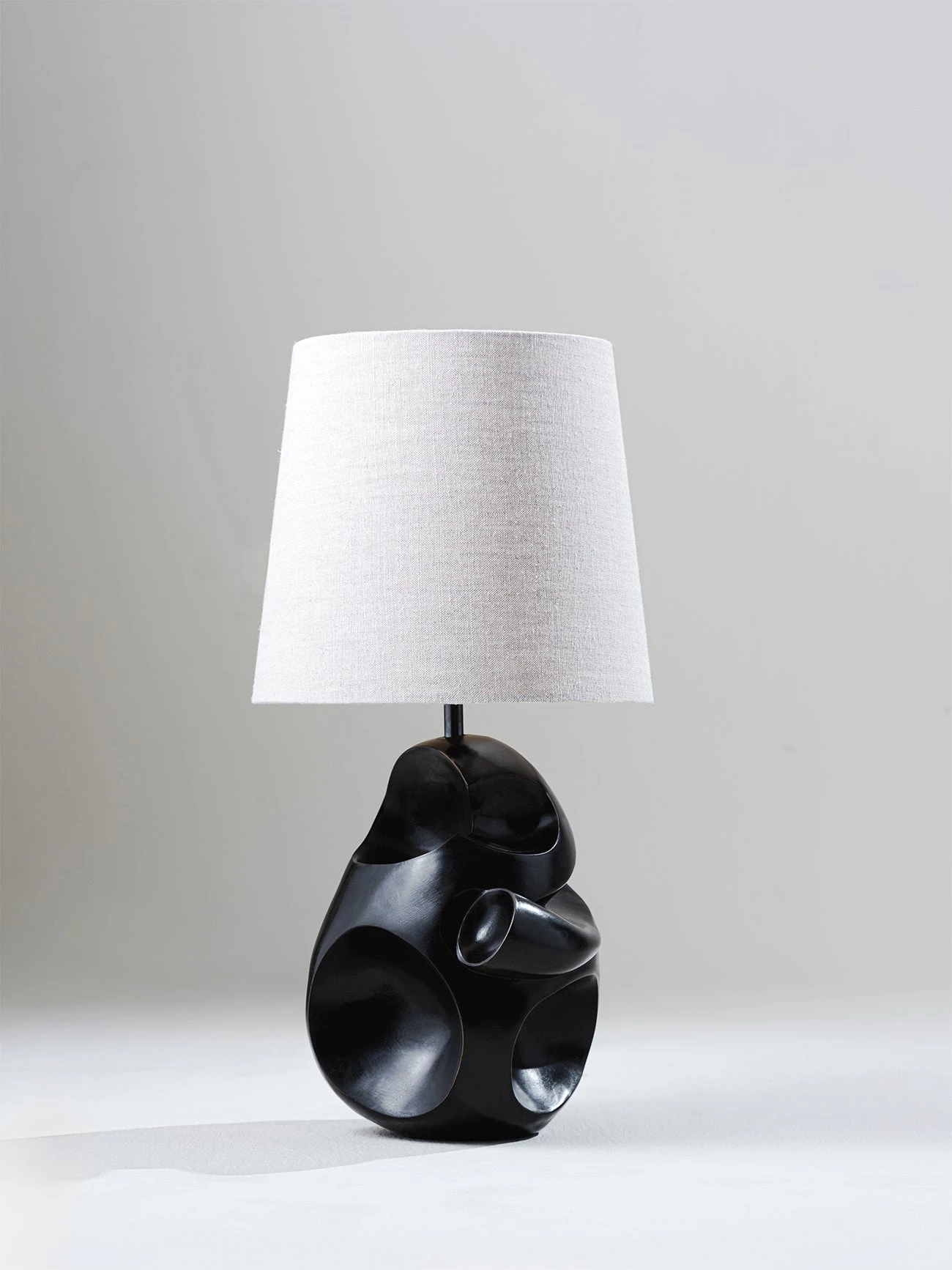 An original and asymmertrical sculpture with surrealist echoes of the human form and motherhood. The Calder lamp is sculpted and cast in the Porta Romana studio, hand-finished in dark polished Bronzé or Plaster White. Also available in any painted finish of your choice.