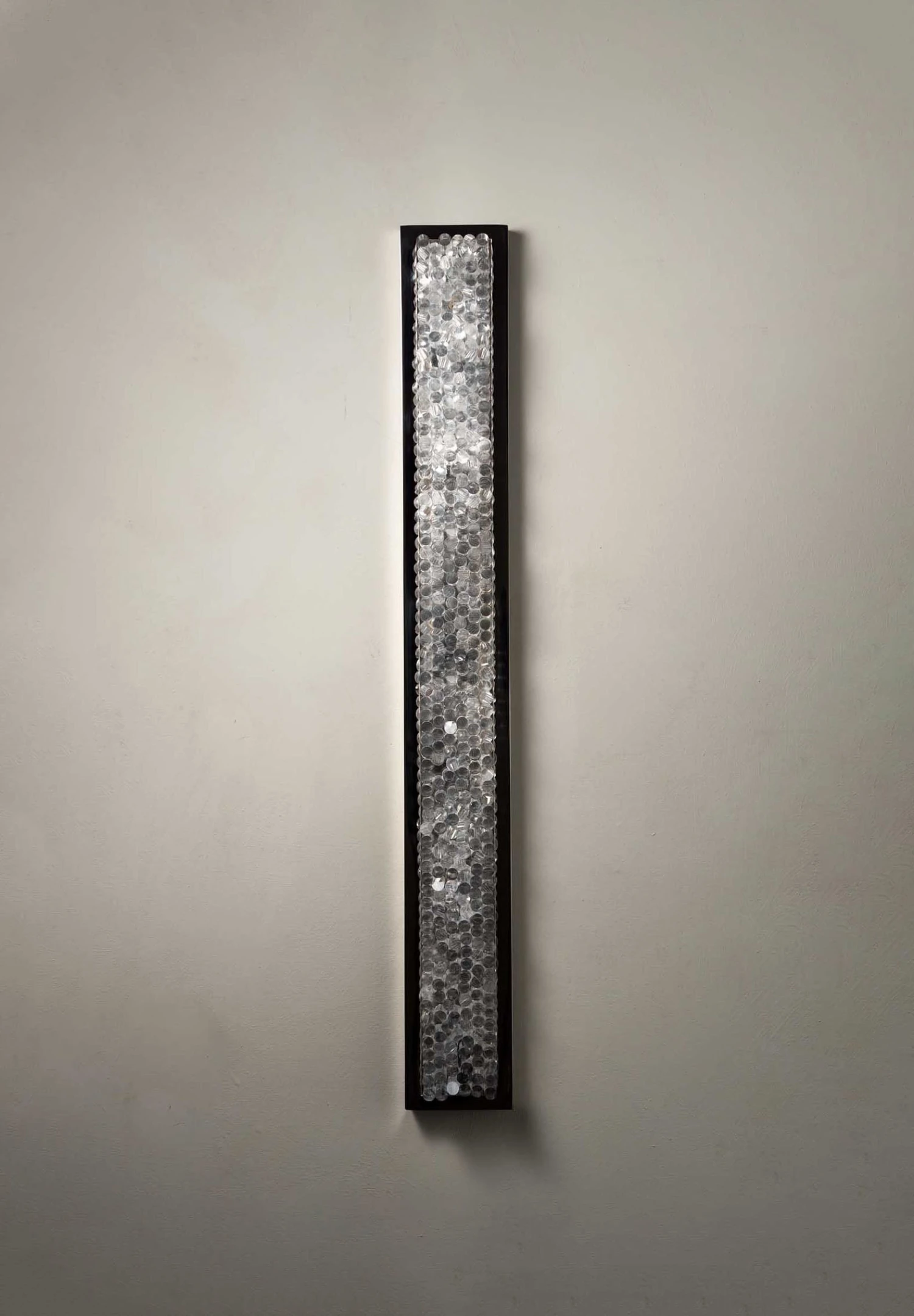 The Small Chloe Wall Light consists of hundreds of hand-cut and polished Perspex tubes, packed tightly together and back-lit with LED lights.