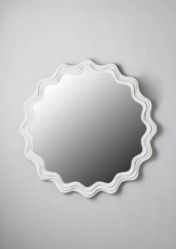 The Round Clam Shell Mirror now comes in a smaller scale, making it a usable piece in more intimate settings. Its softly grooved frame can be finished in any custom colour.