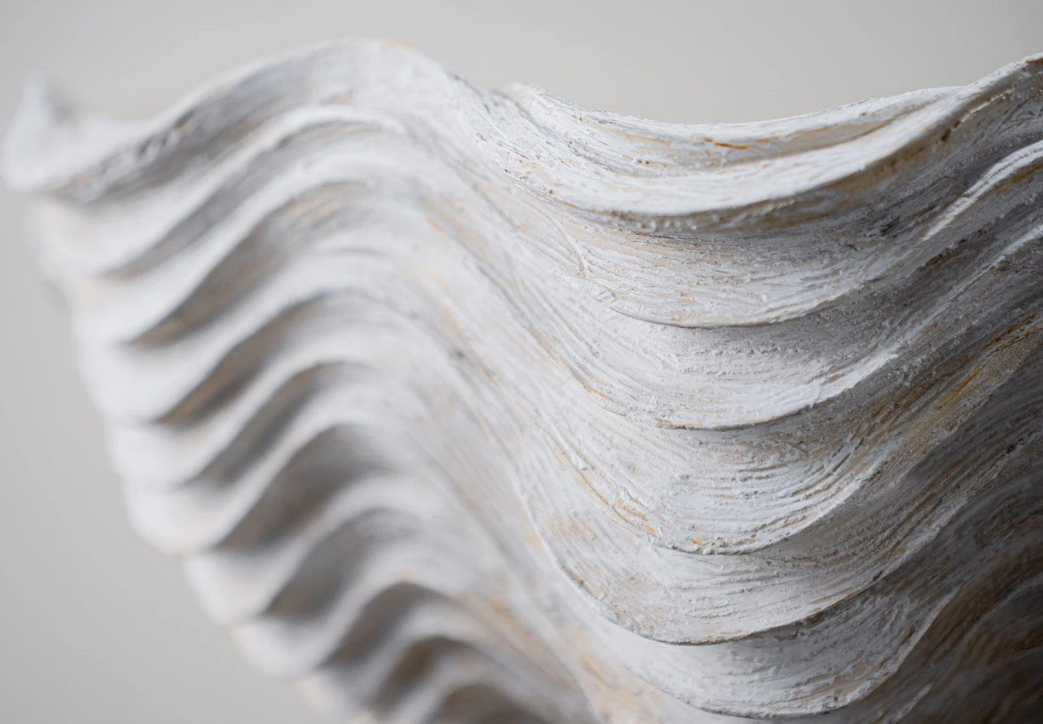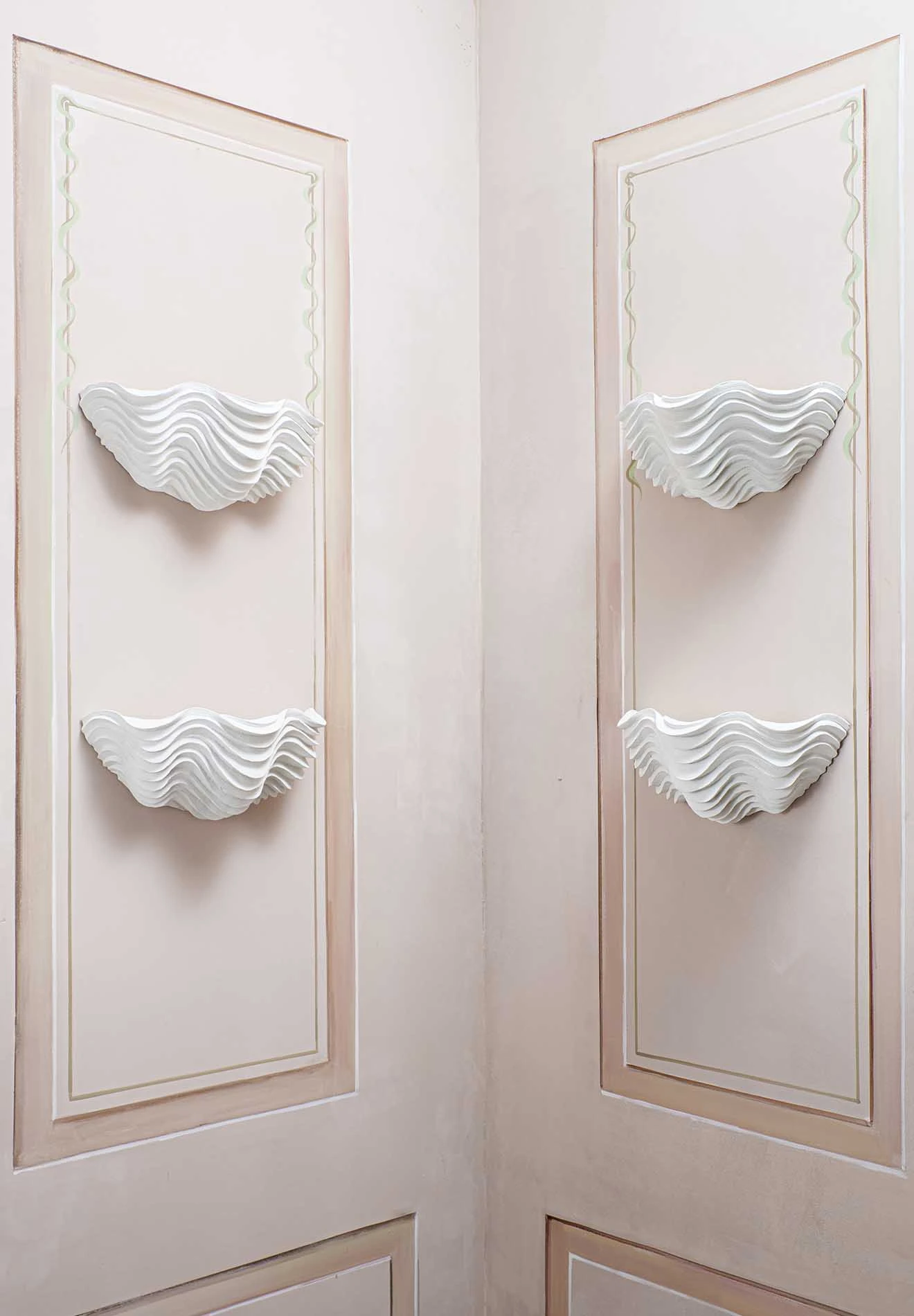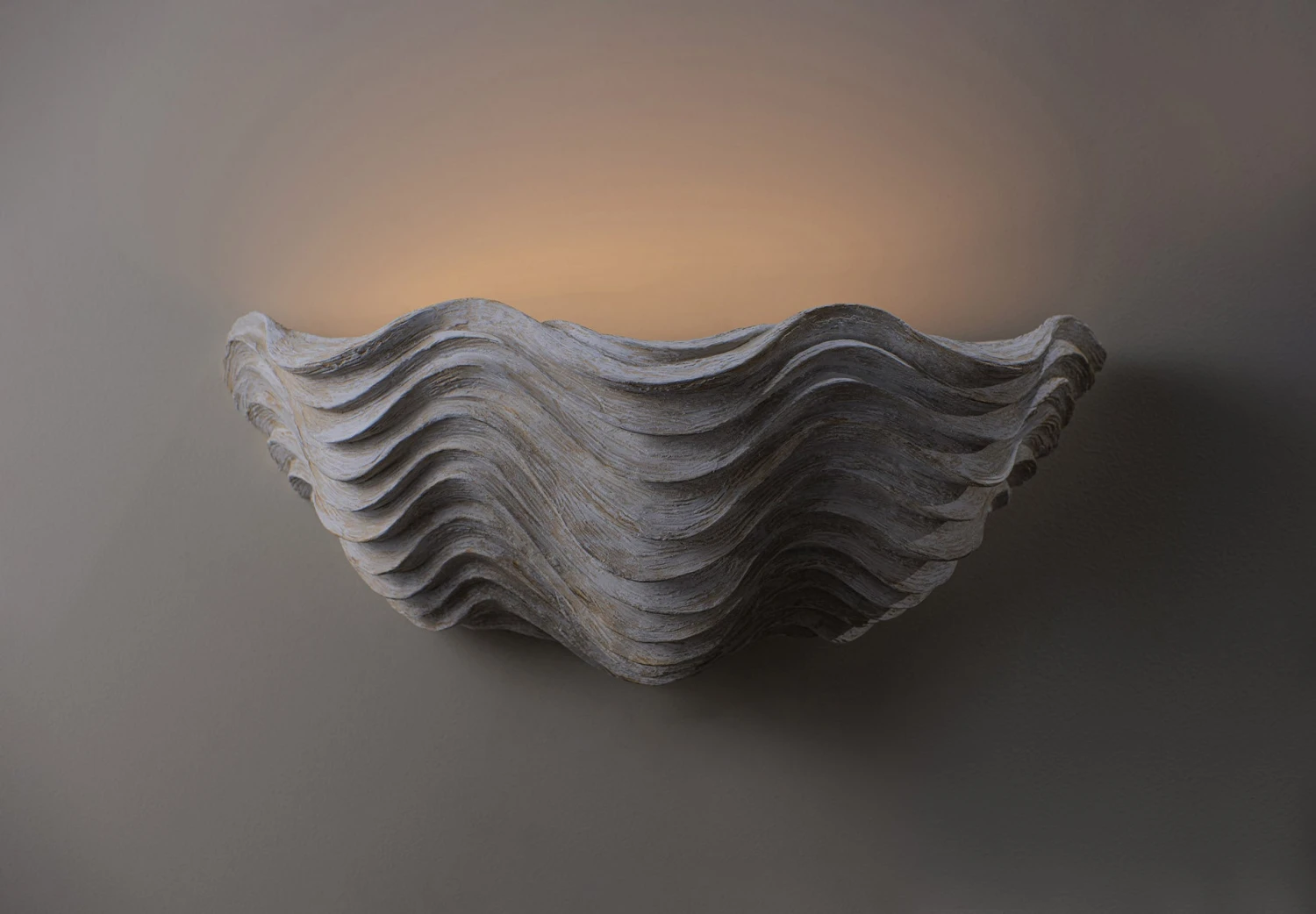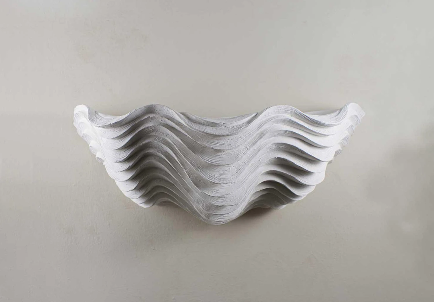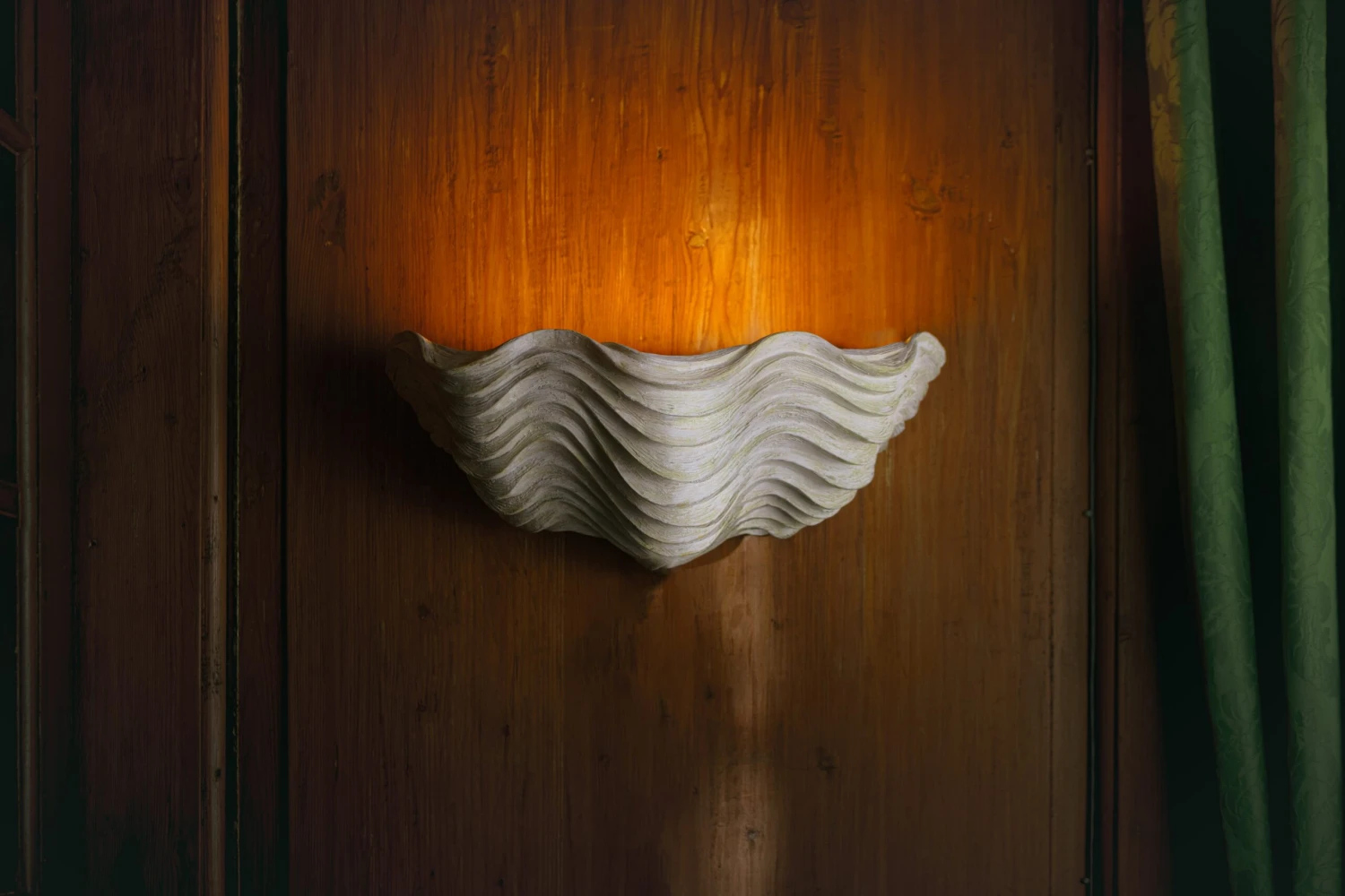 The Clam Shell Wall Light is inspired by Botticelli’s ‘The Birth of Venus’, with its soft grooves capturing the light to form distinct shadows. Also available in small.