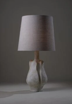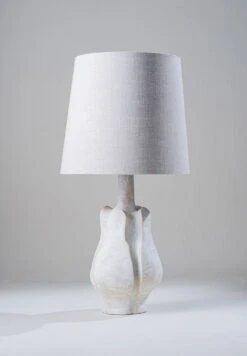 The Cordelia lamp is a sculpted form, symbolising the union of animate and inanimate objects in nature. From one perspective, the opening of a flower and from another, four silhouettes of human form. Constructed from cast composite and available in Bronzé or Drift White.