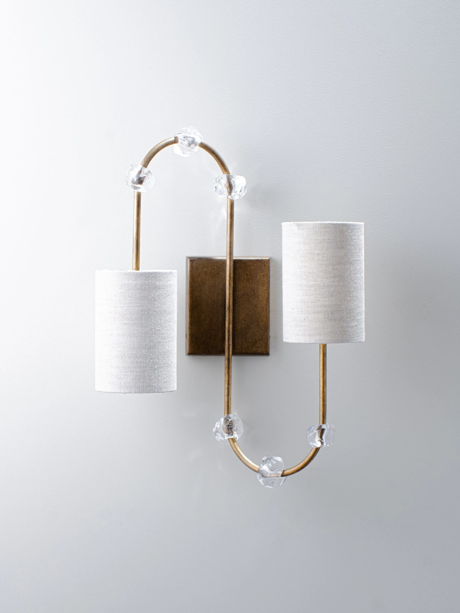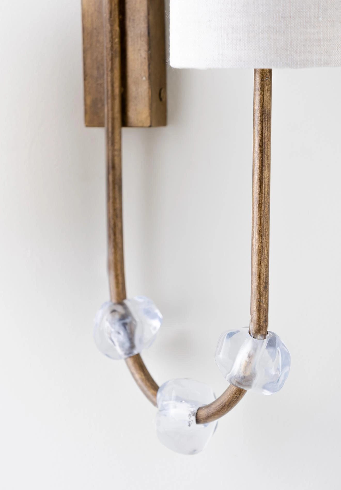 The Emile wall light is a minimalistic interpretation of the wavy movements of water. Enriched by delicate pieces of glass, which are equally positioned along the gentle curves.
