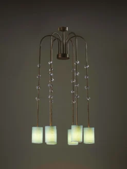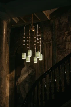 Inspired by the shape of a willow tree, a symbol of new life, the Emile Willow stairwell is hand-painted in French Brass and finished with delicate glass bubbles positioned equally along the six cascading arms. Also available in two different ceiling light designs and wall lights. View the Emile family here.