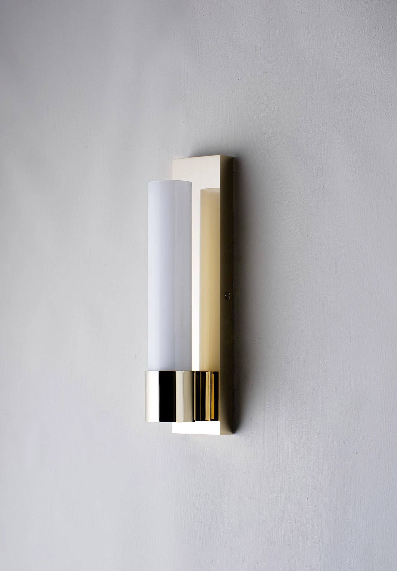 A classic bathroom wall light design, the Emperor Wall Light is available in Nickel, Brass and Patinated Brass with frosted glass.