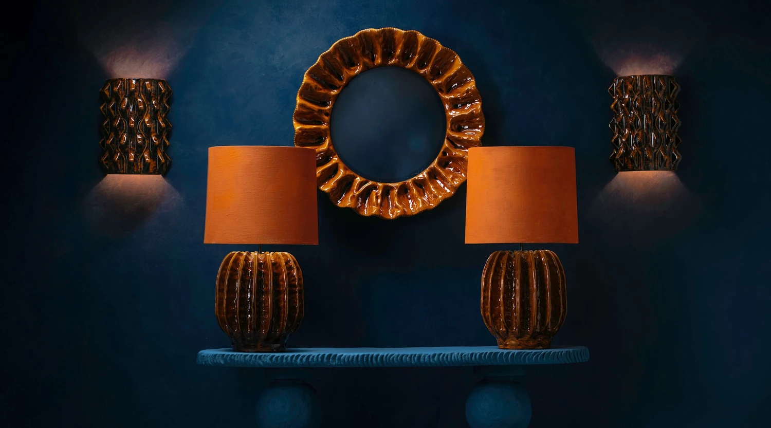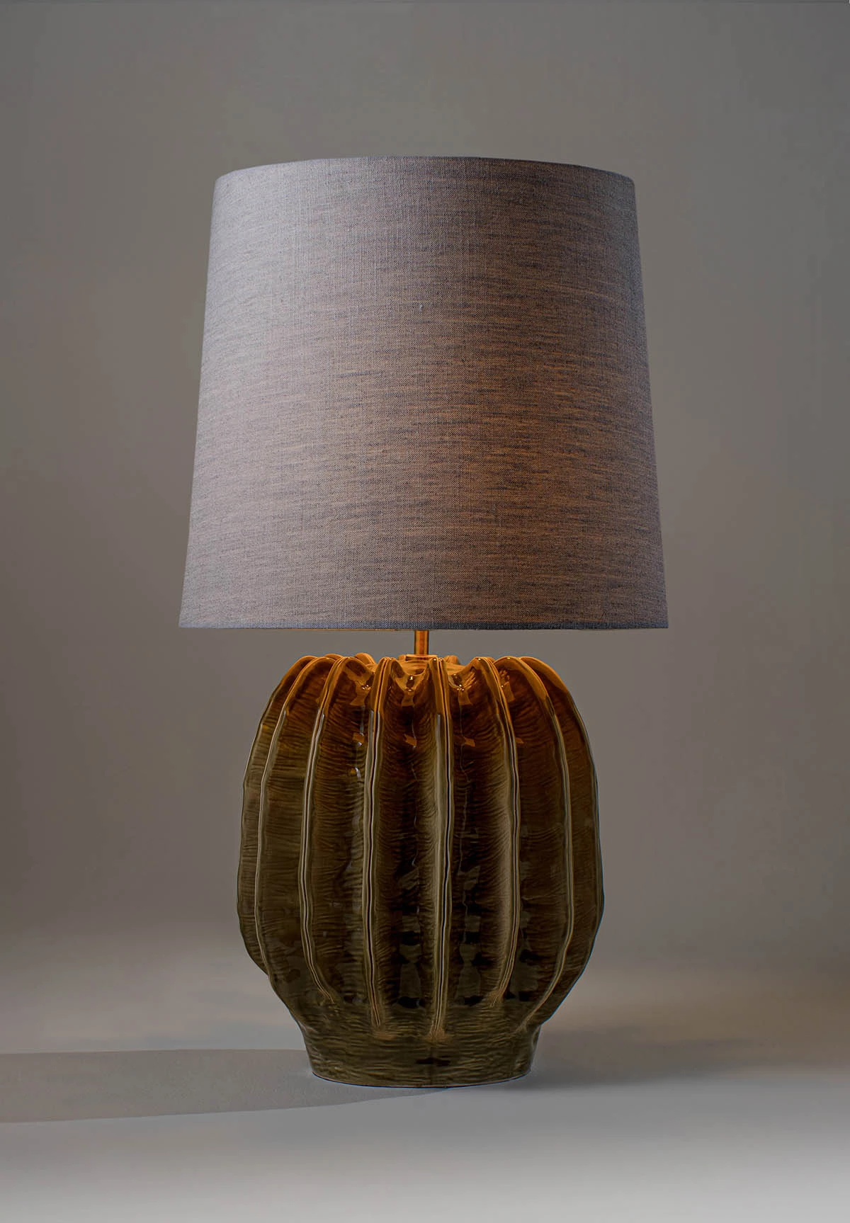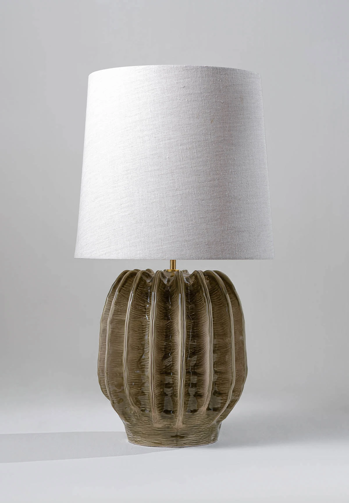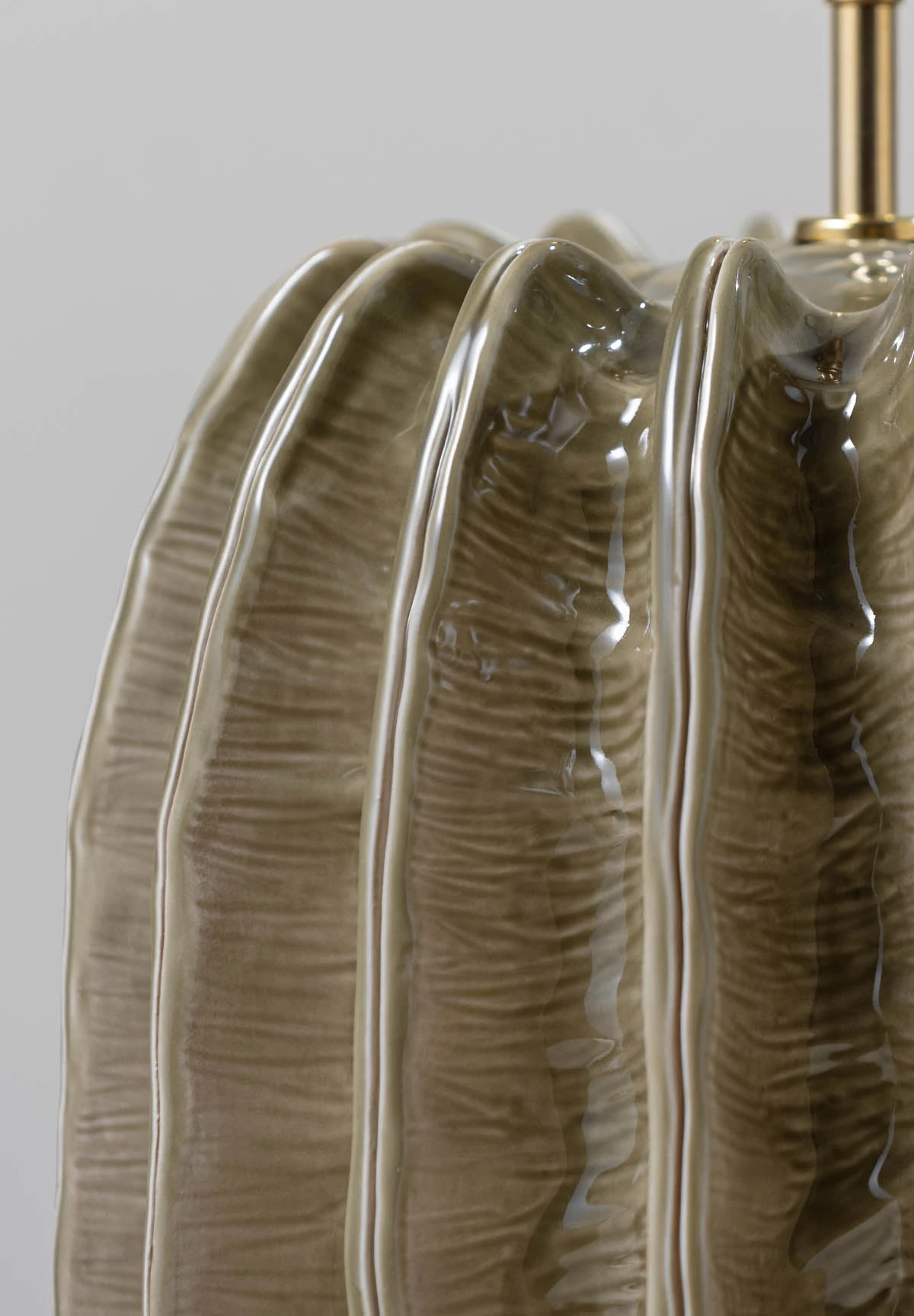 One of the most exciting designs from the Autumn 24 collection, Finley — a large-scale hand-cast table lamp inspired by the abstract shape of a cactus with rippled, asymmetrical fins on all sides. Now available in Crème Brulée and Safari glazes, it somehow seems even more spectacular.