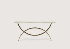 The Fishtail Console Table consists of two interlinking semi-circles and is available with any wooden or marble top and can be custom sized.