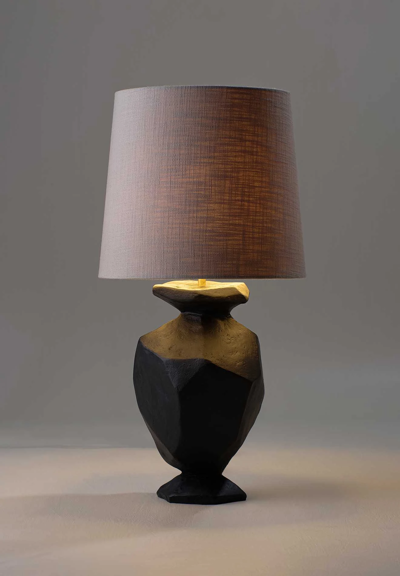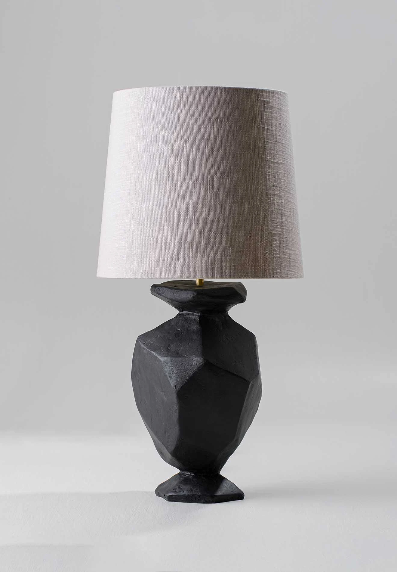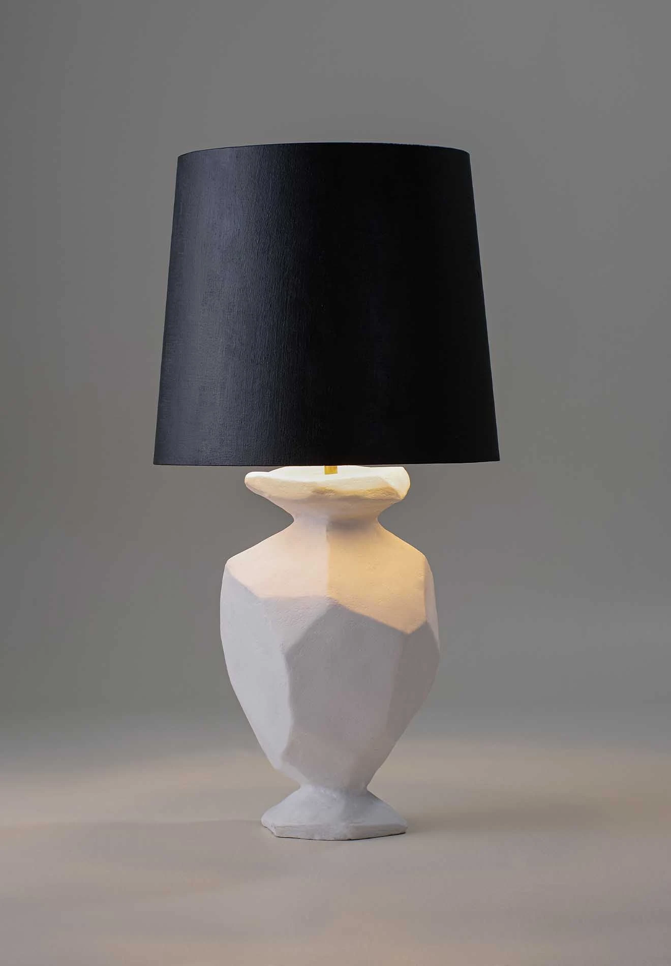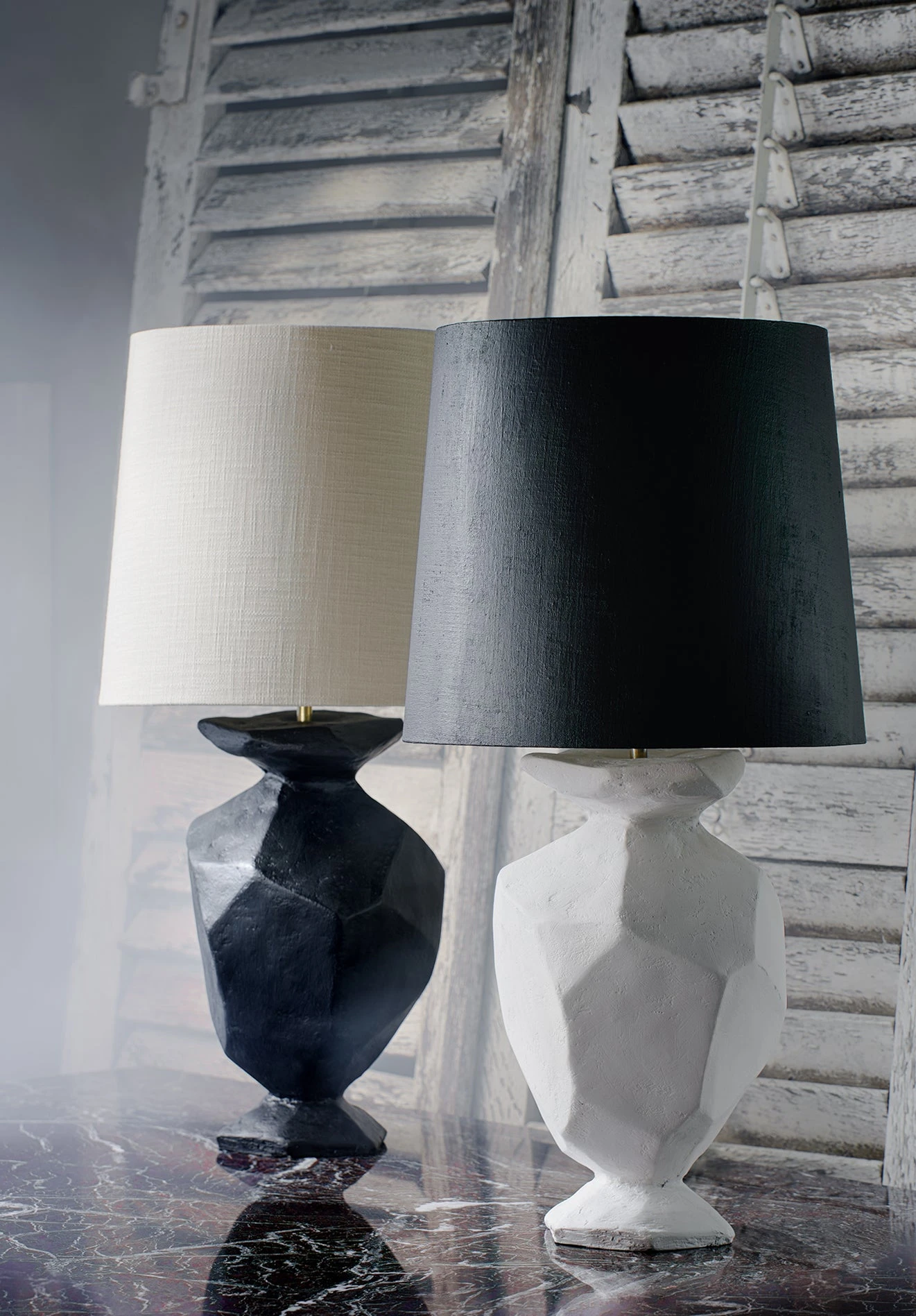 The Fletcher has a sculptural, mid-century feel. The base’s angled, multi-faceted surfaces play with the contrast between light and shade. Cast in jesmonite; a sustainable material resembling hardened plaster.
