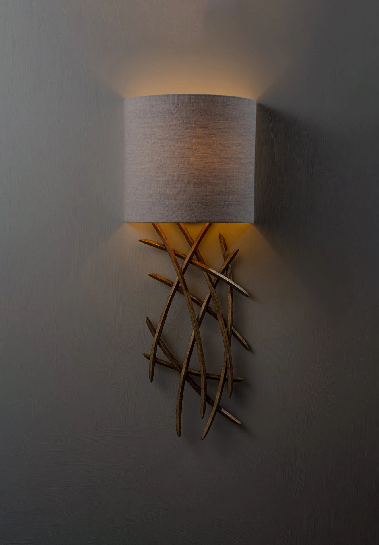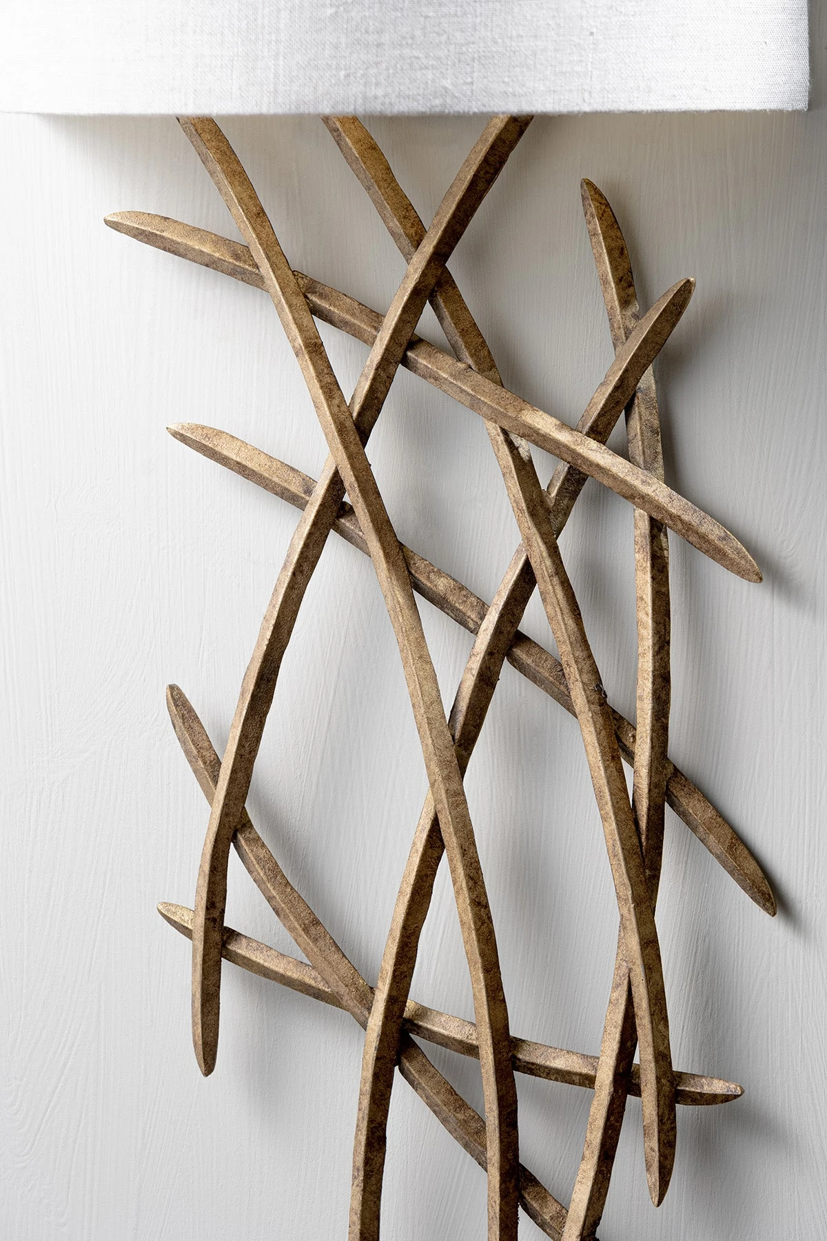 Each thin strip that makes up the Small Flynn Wall Light has been individually cut, beaten, heated and bent into shape.