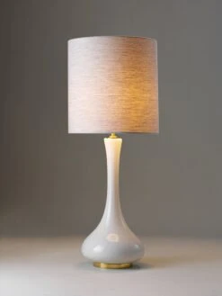 The Grace Lamp is a contemporary ceramic shape which comes in many different coloured glazes on a brass base.