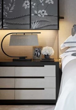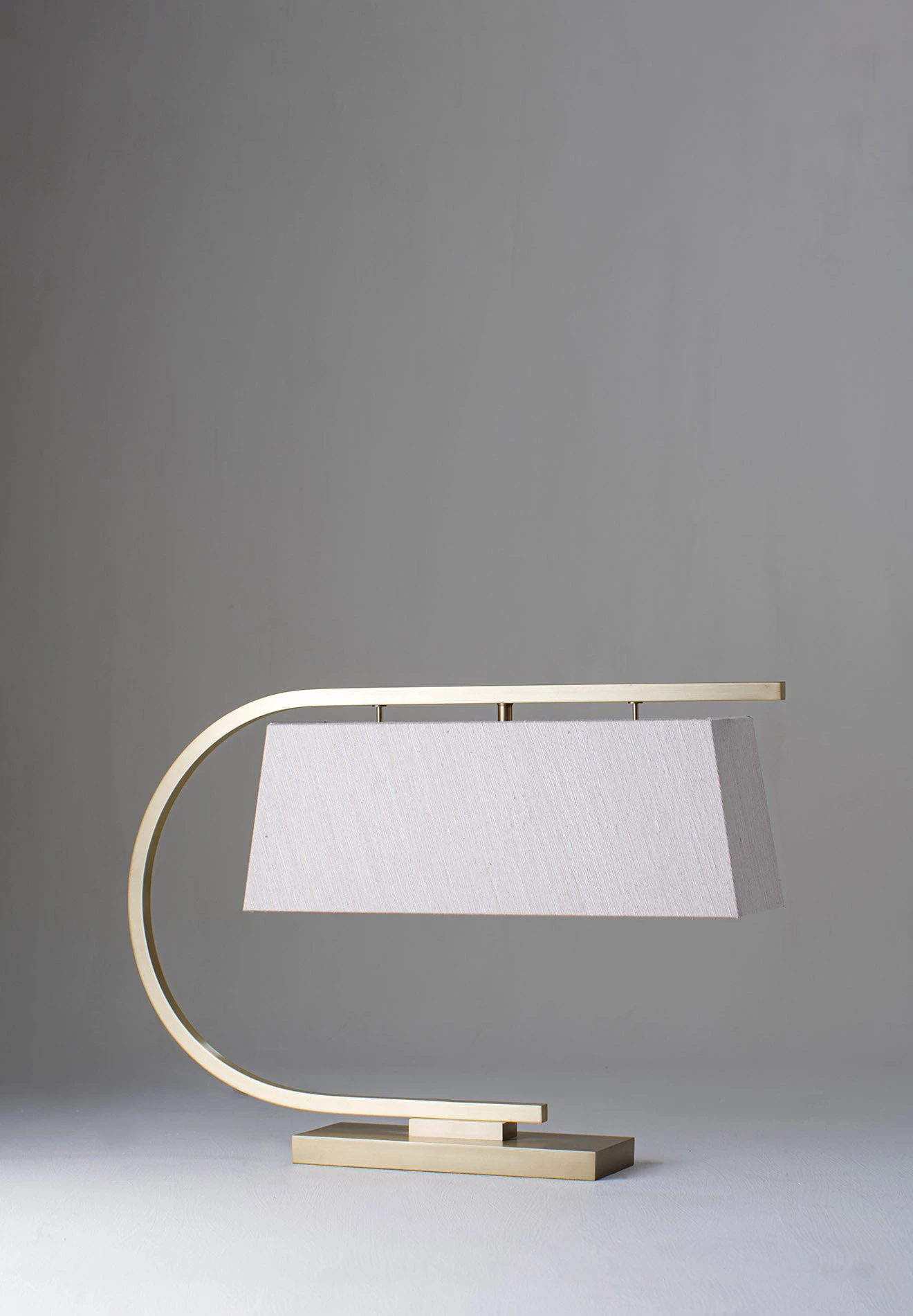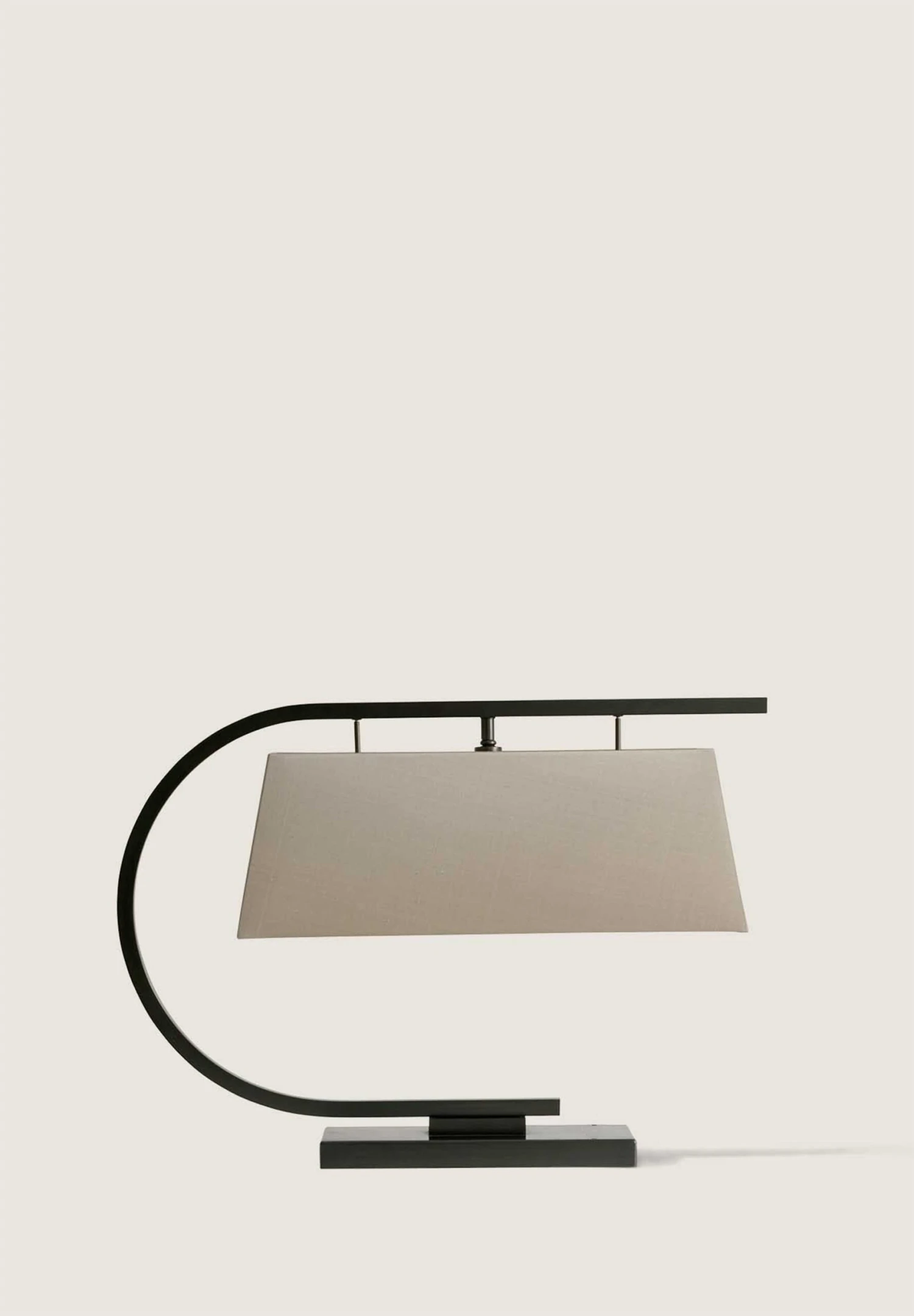 The Harry Desk Lamp was designed as a sharp and formal piece to complement a minimal office setting. The piece is paired with its own bespoke rectangular shade.