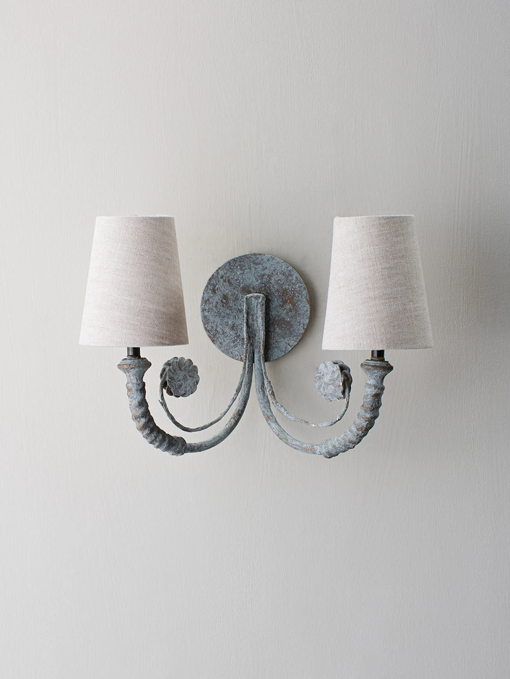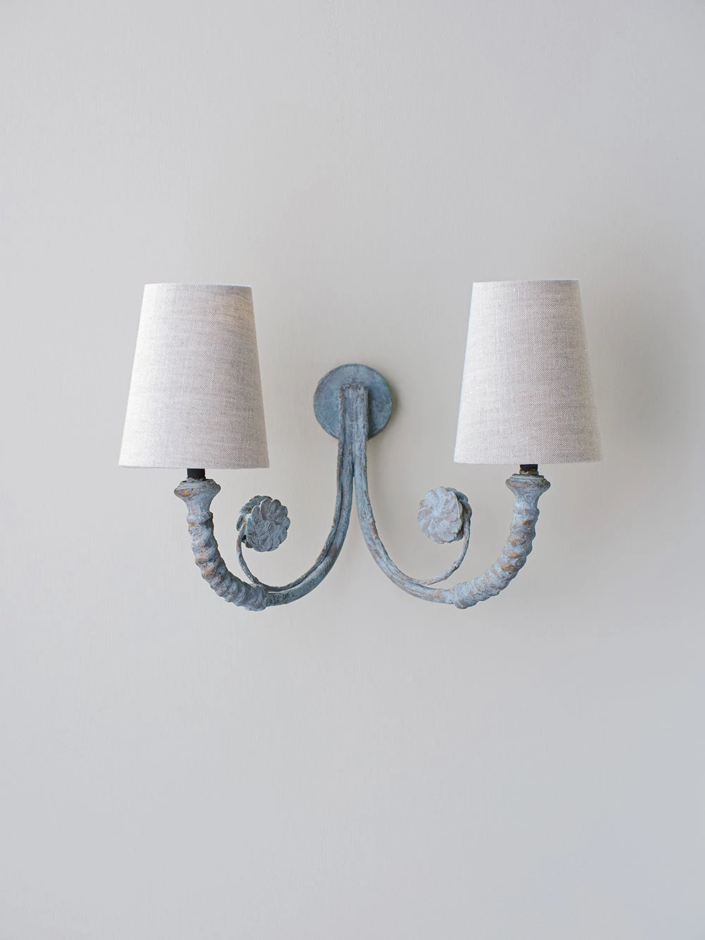 The Holbein large wall light is inspired by classical 18th century design and finished in a delicately painted Blue Verdigris simulating centuries of age.