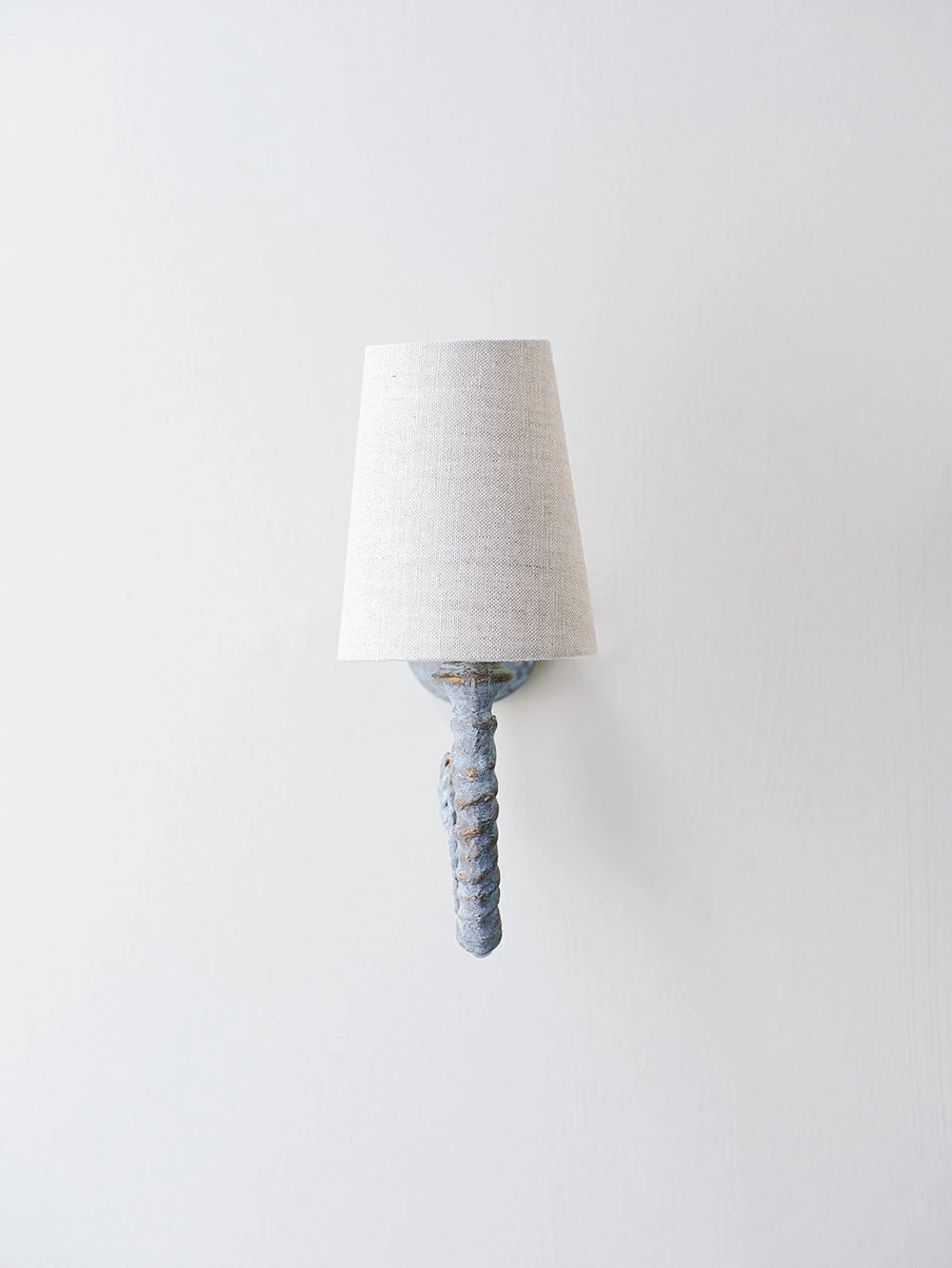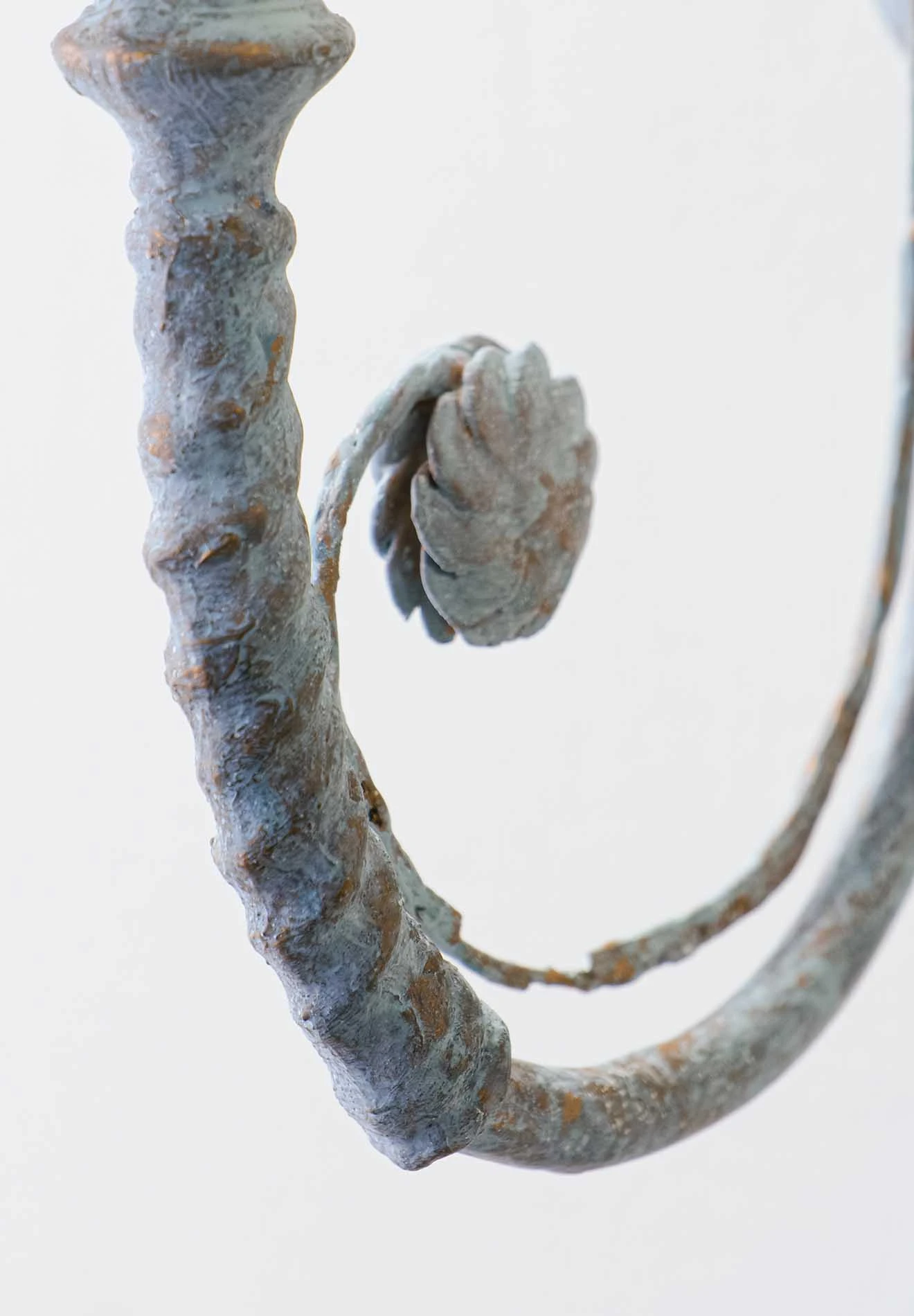 The Holbein small wall light is inspired by classical 18th century design and finished in a delicately painted Blue Verdigris simulating centuries of age.