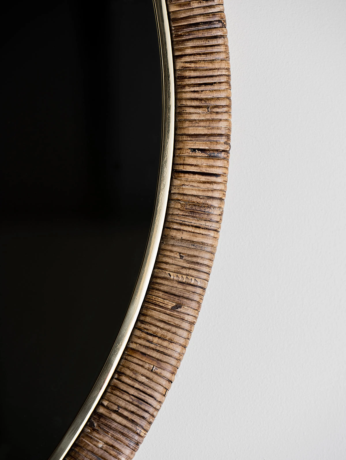 The Holden mirror Large, reflects the harmonious character of the Holden collection. Wrapped in cane and edged in brass, the mirror is framed in a neutral and refined style that has elements of both simplicity and sophistication.