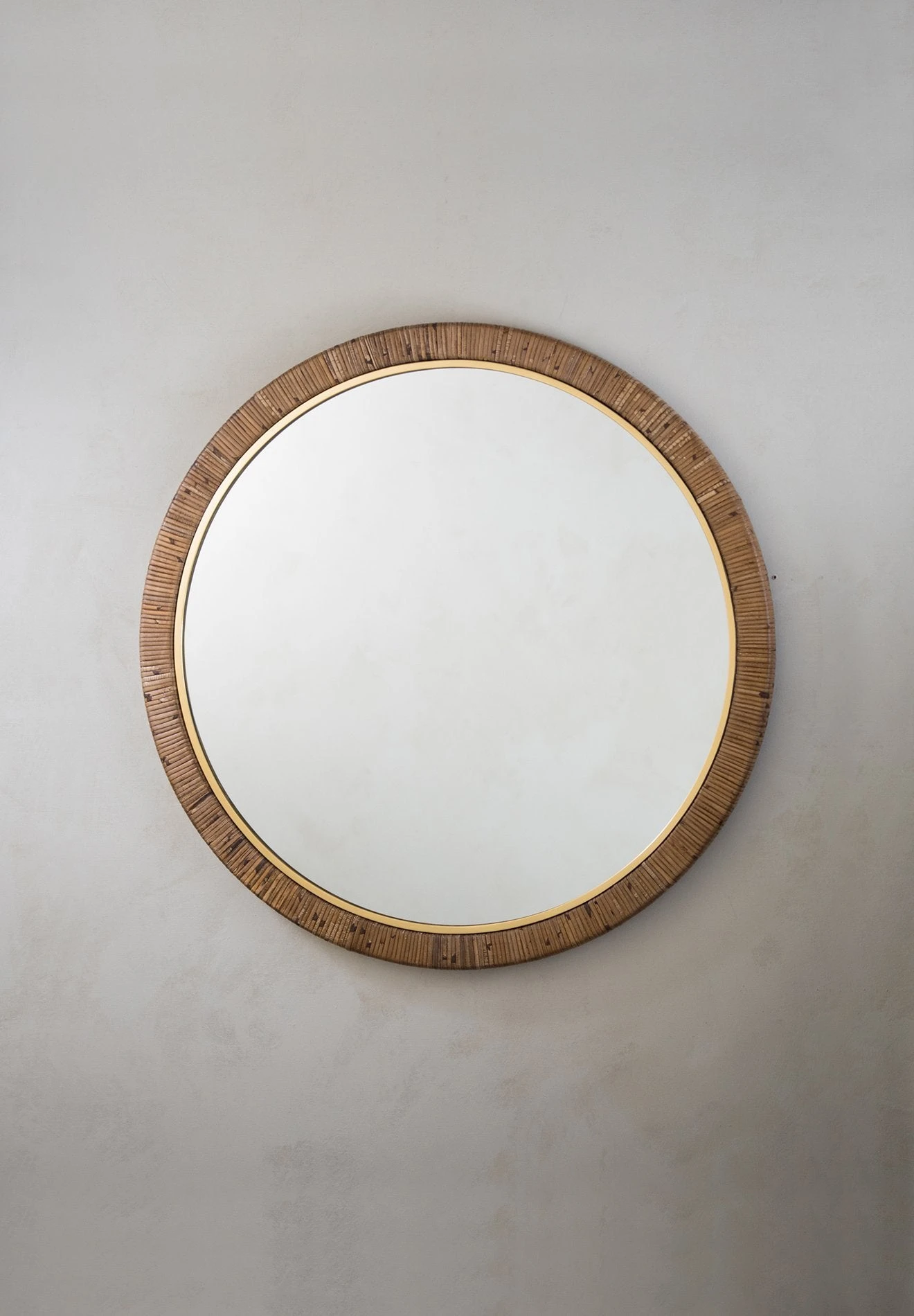 The Holden mirror small, reflects the harmonious character of the Holden collection. Wrapped in cane and edged in brass, the mirror is framed in a neutral and refined style that has elements of both simplicity and sophistication.