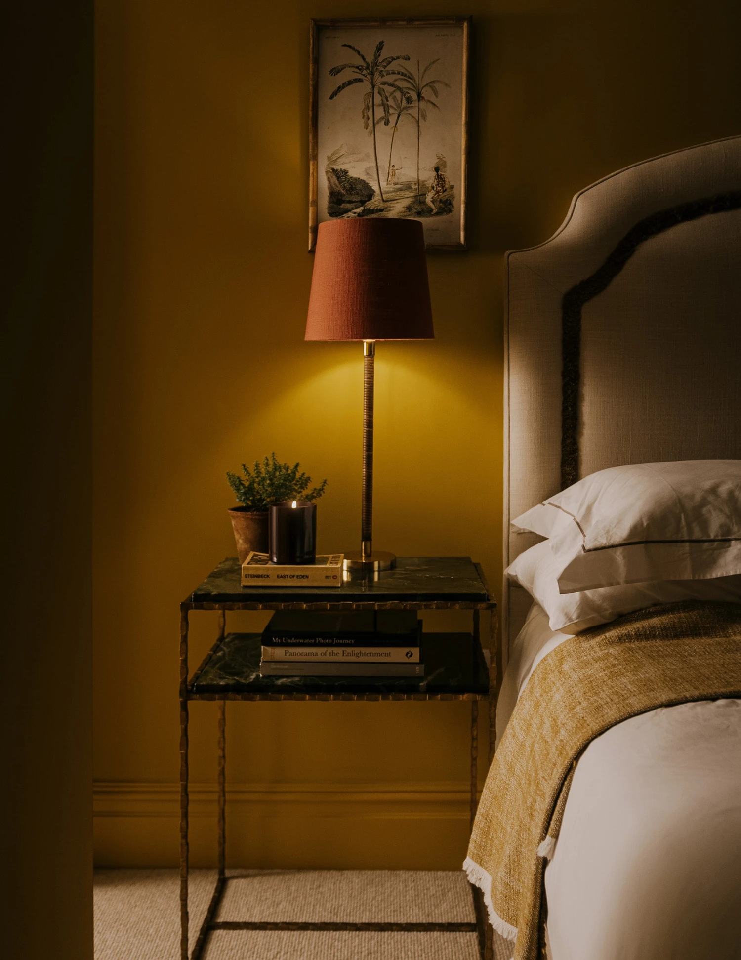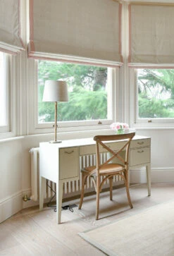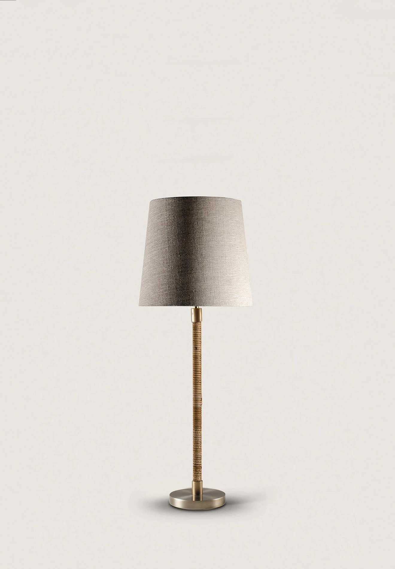 The Holden Lamps follow the design of metal candlestick lamps. The cane that wraps around the stem has subtle markings that have been maintained throughout the making process.