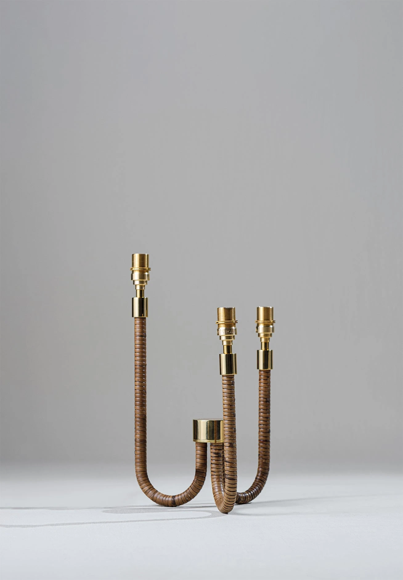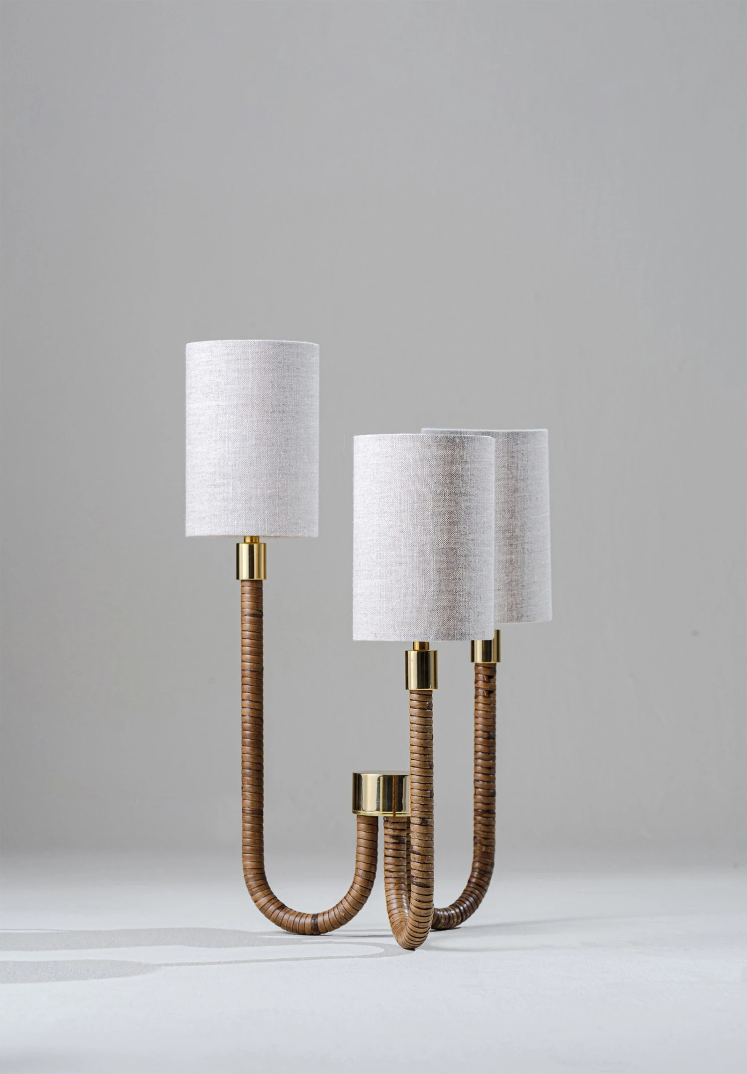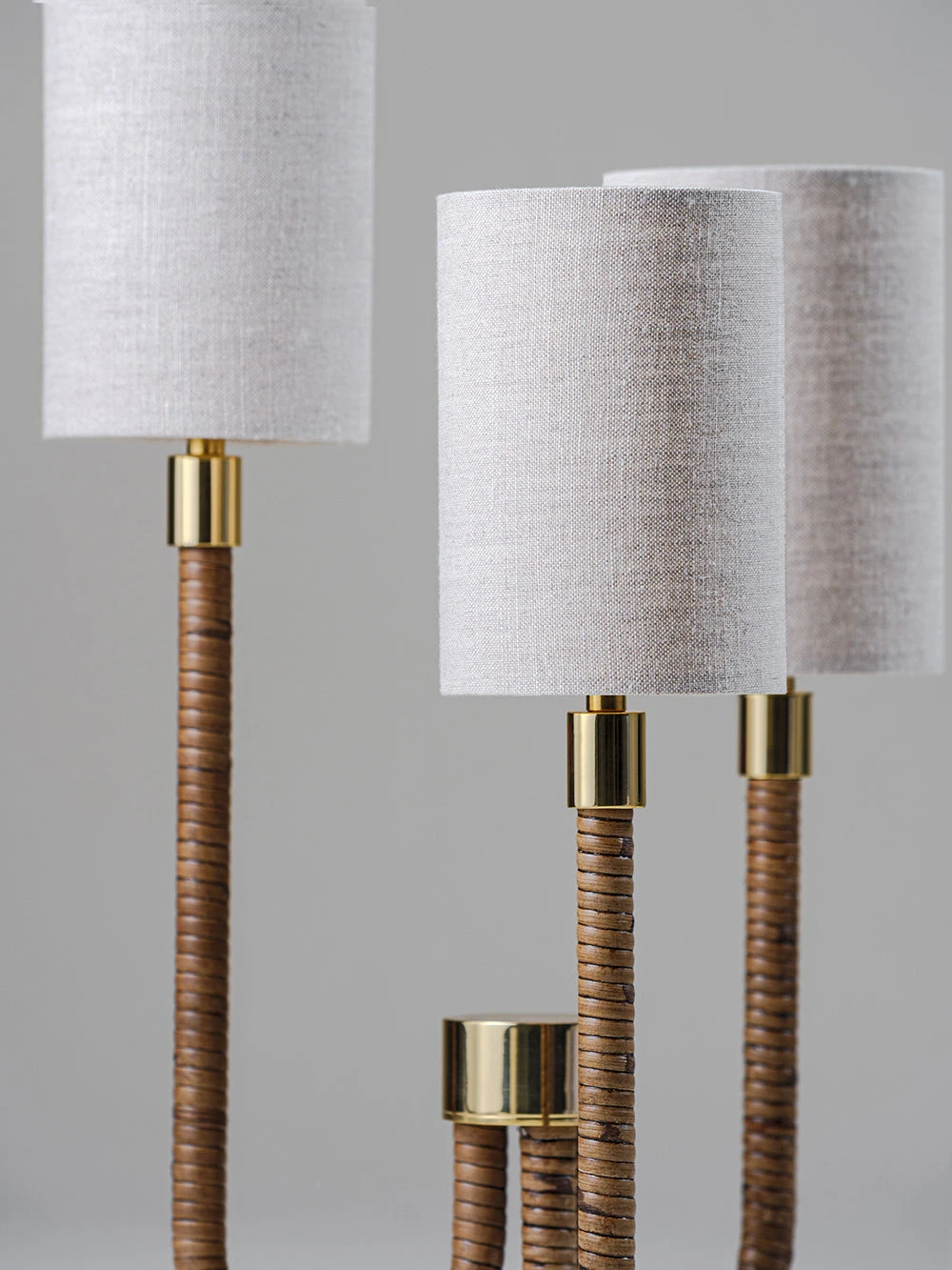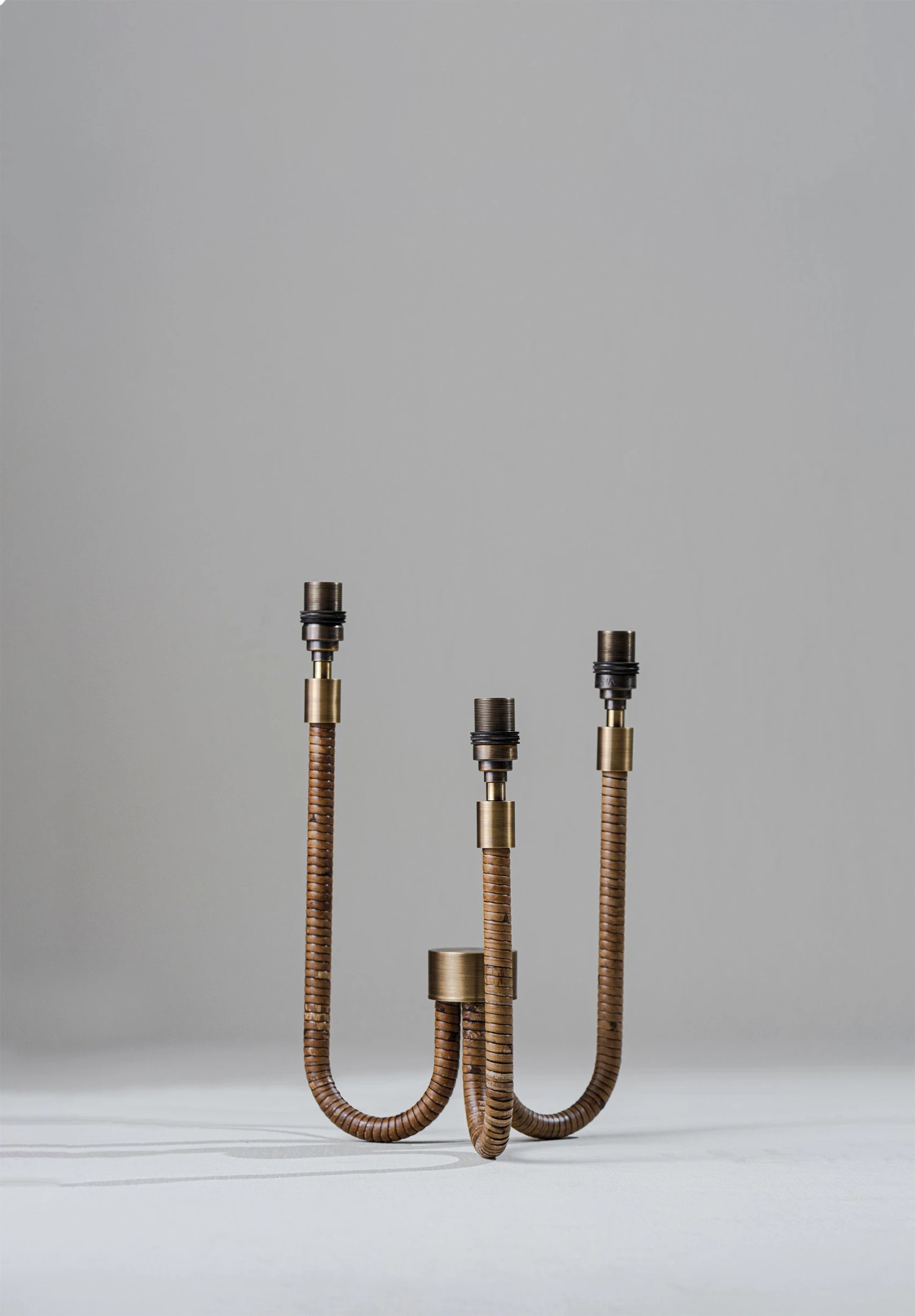 New to the Holden family, the Triad features three stems wrapped in dark cane and finished with either Brass or Antiqued Brass. The cane that wraps around the stems has subtle characterful markings that have been maintained throughout the making process. View the Holden family here.