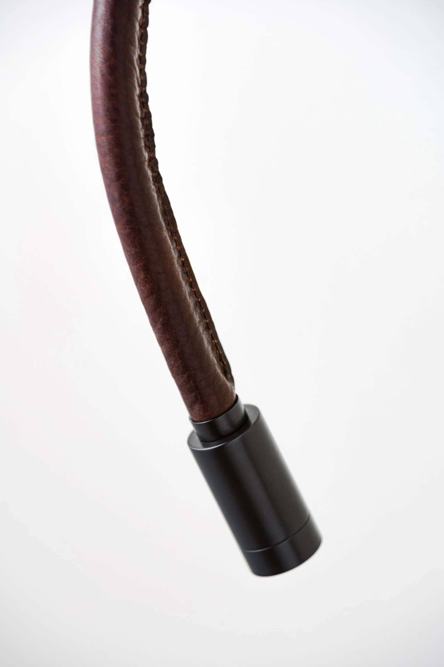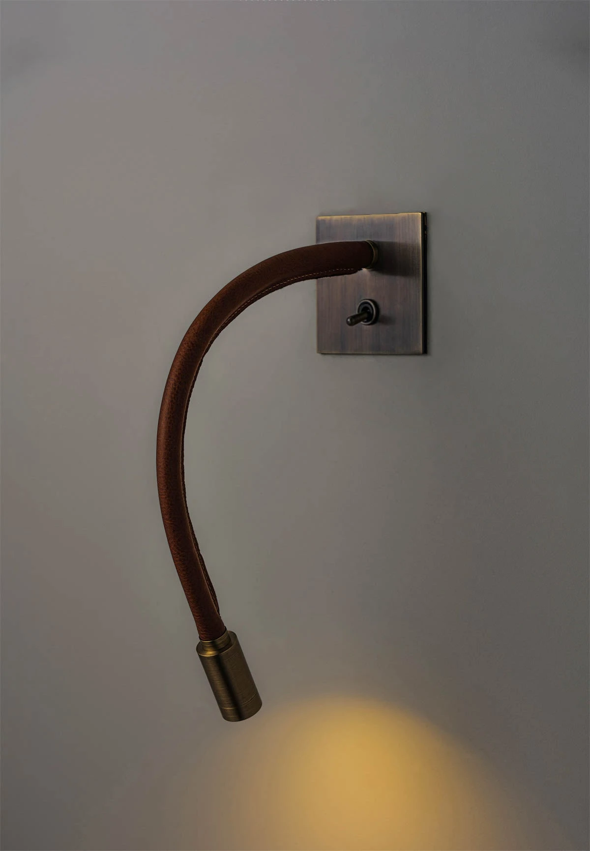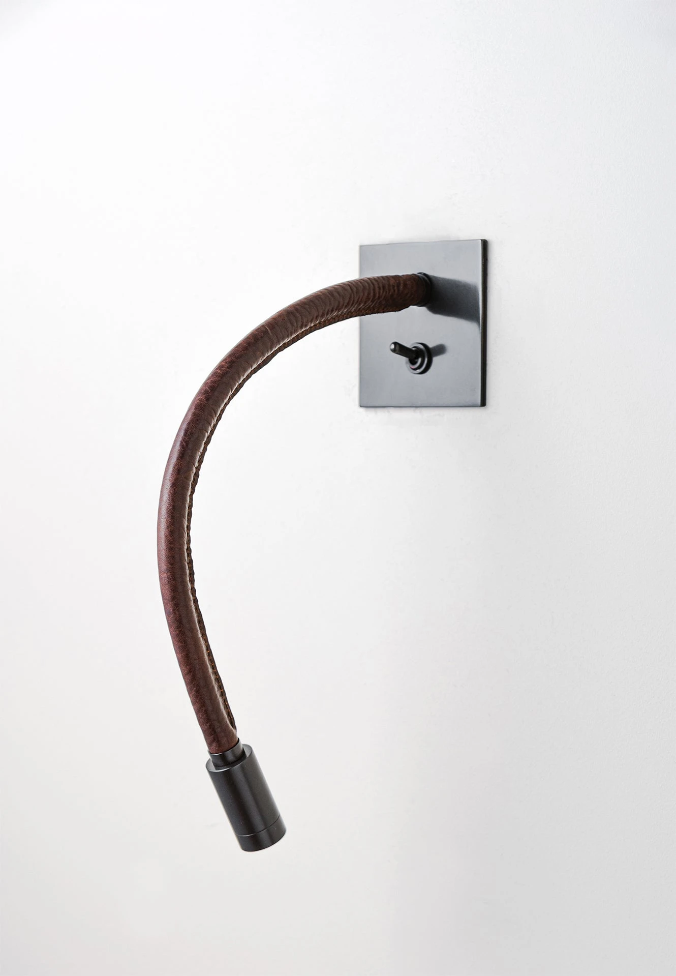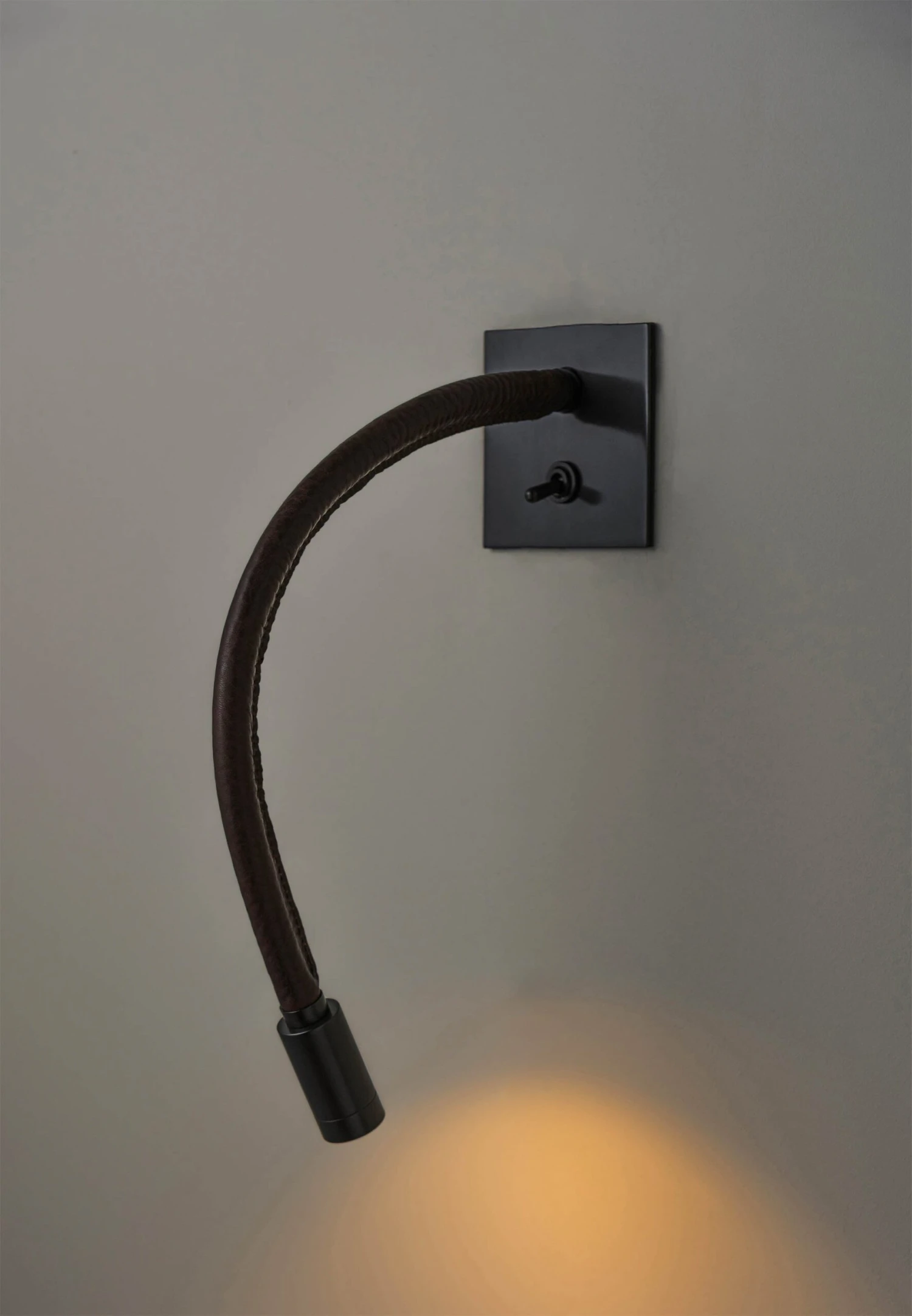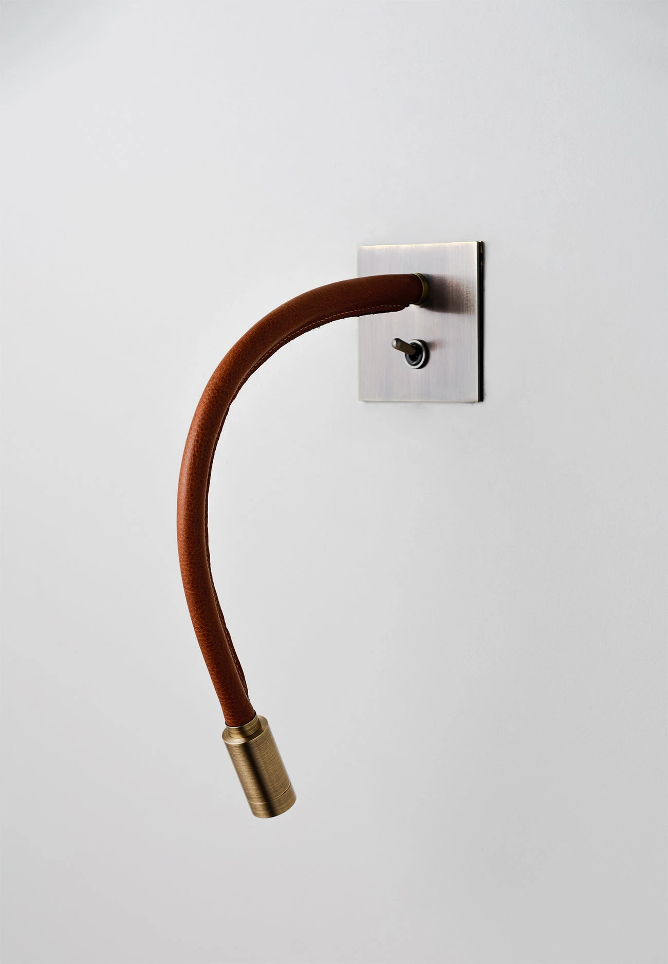 The Huxley Jordan wall light is the perfect blend of the Jordan’s simplicity and the Huxley’s classic demure. Featuring an elegant adjustable arm wrapped in stitched leather. Available in Antiqued Brass, Nickel or Bronze with choice of Chocolate, Tan, Oat or Scarlet leather.