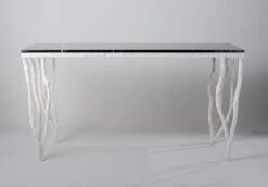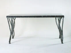 The free-standing console table, Kitty. Designed with organic and textured forged steel legs. Can be made to order in any custom size or painted finish.