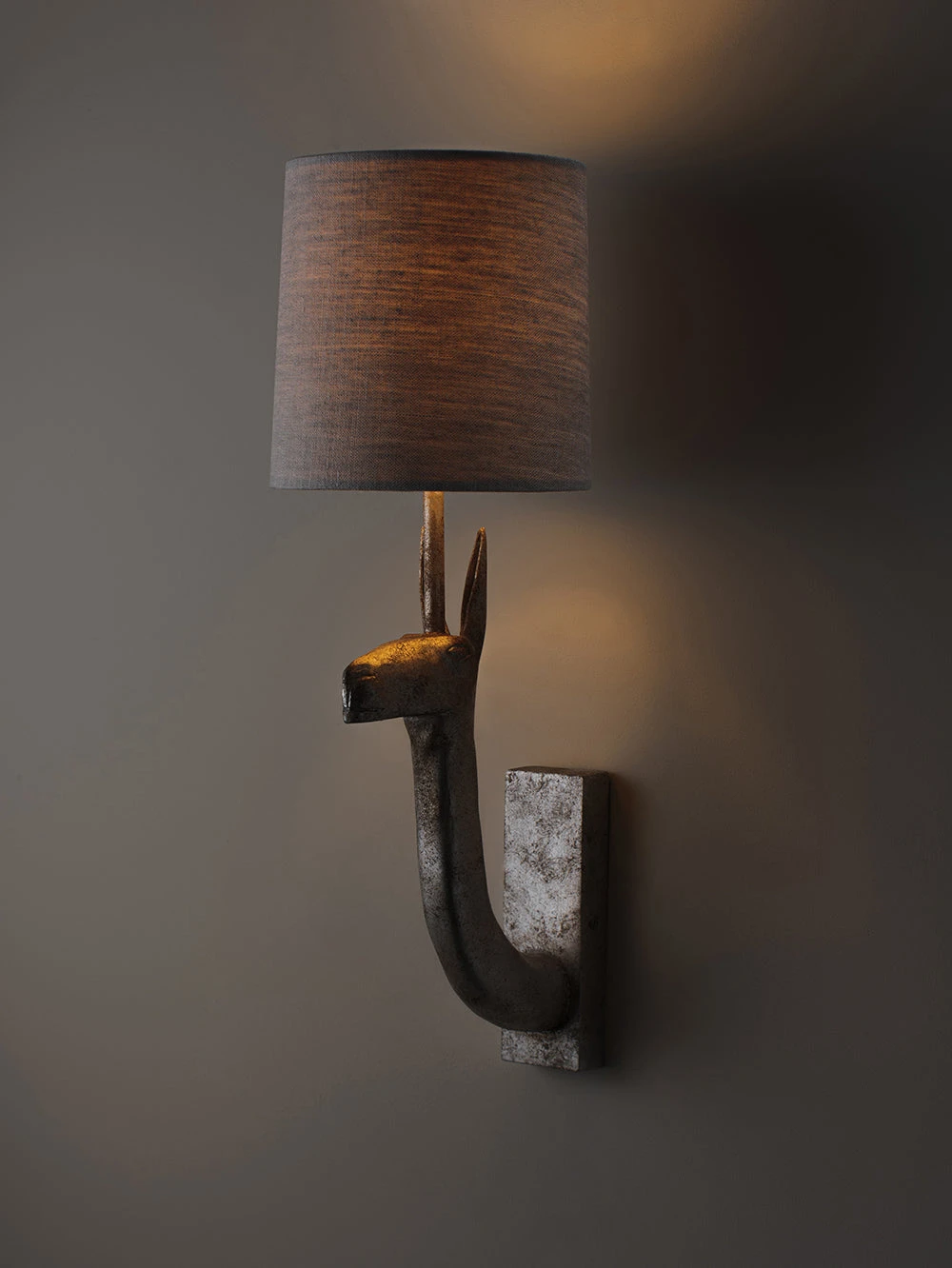 The Llama Wall Light joins the Toucan and the Cow as part of Porta Romana’s menagerie of wall lights.