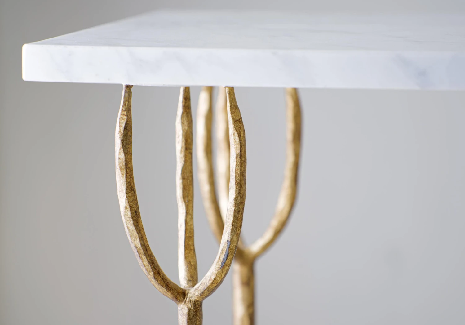 Charatised by its softly rounded metal bars and trident features, the member of the Logan family a classic example of Porta Romana furniture design.