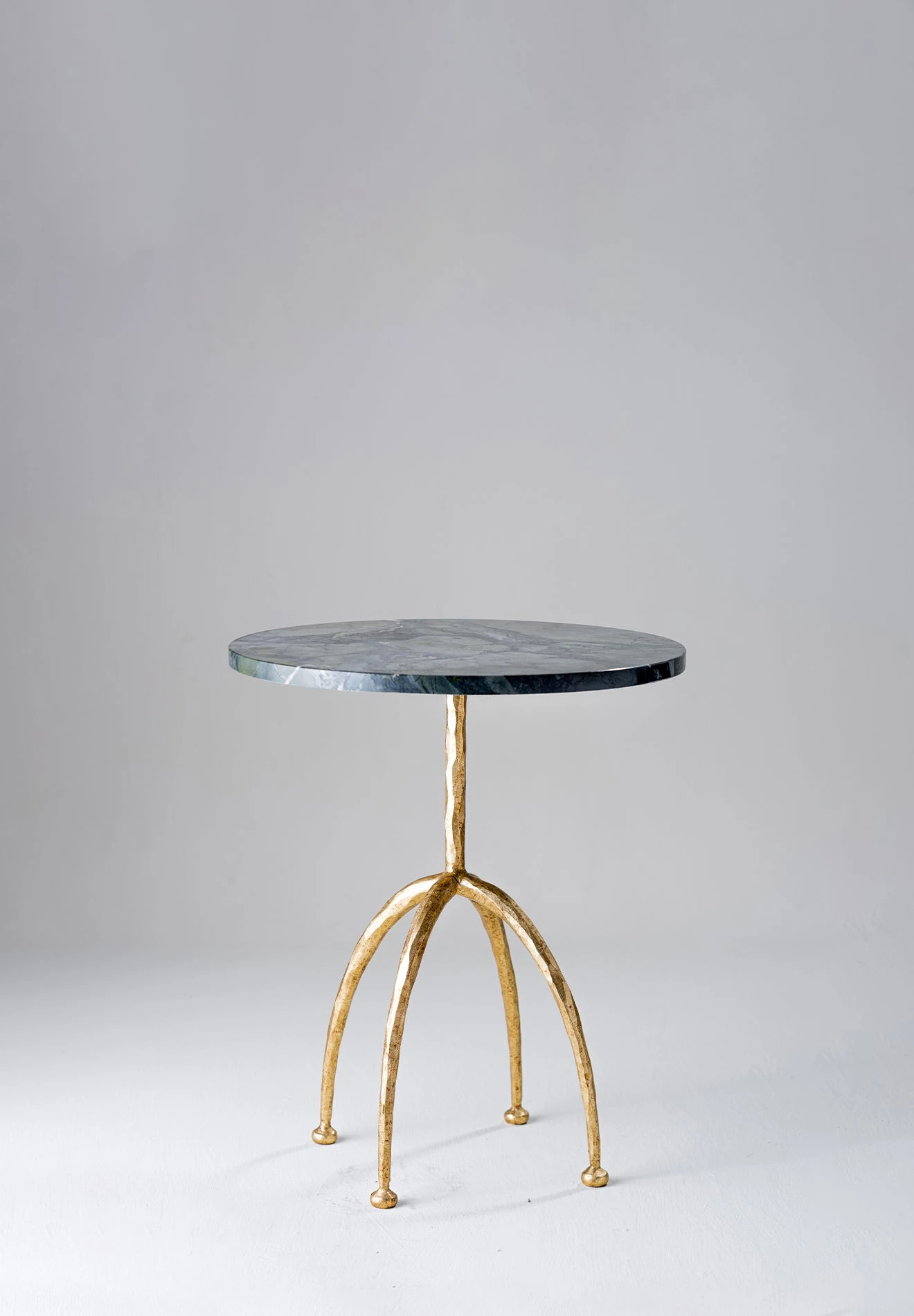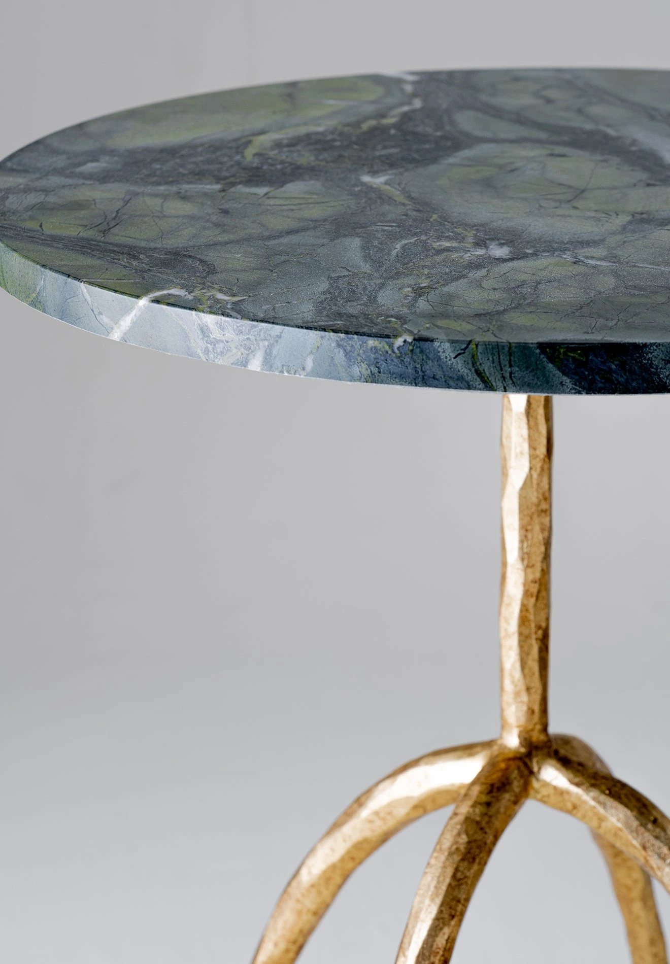 The Logan side table matches the silhouette of our Giacometti Cocktail table, with a round profile and subtly textured to give it a hand-sculpted quality and can be custom made to any size or finish.
