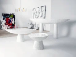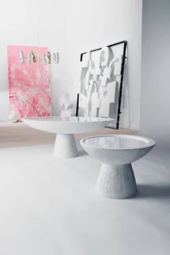 The Marina Coffee Table was designed by Gareth Devonald Smith. Marina, of the sea, from a submerged ancient temple, and cut from rock, light in appearance but bold and strong in form.