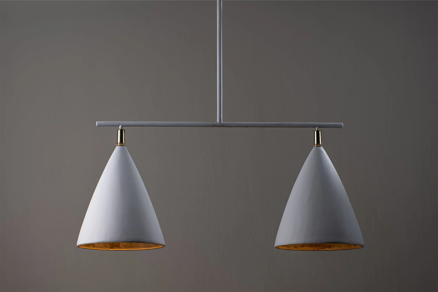 Boasting a sleek cone shape with brass detailing, the Matilda family is simple and elegant, available as both a wall and ceiling light. The cup is etched with gold providing a soft golden light. Each piece is cast and carefully finished by hand in our painting studio.Â