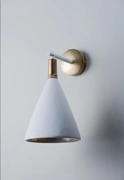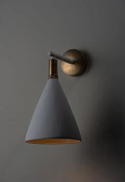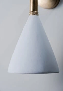 Boasting a sleek cone shape with brass detailing, the Matilda family is simple and elegant, available as both a wall and ceiling light. The cup is etched with gold providing a soft golden light. Each piece is cast and carefully finished by hand in our painting studio.
