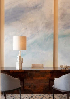 The Metropolis references an urban landscape, with sharp blocks sitting on top of one another in a brutalist style. This monolithic piece was designed by Gareth Devonald Smith for Porta Romana.