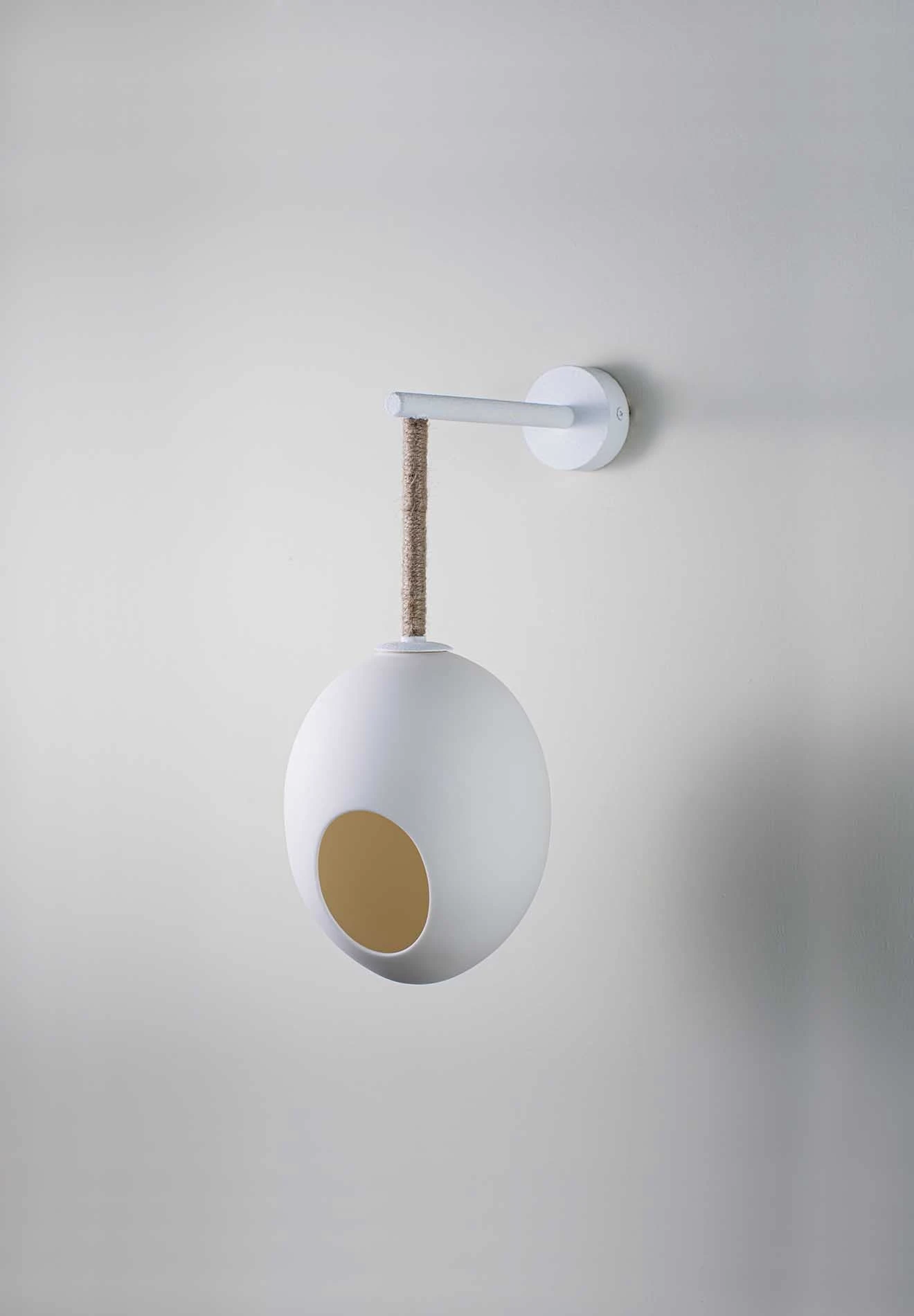 Mimi’s Robin Wall Light was designed by Kit Kemp for Porta Romana. The piece is lit from within the porcelain egg to give off a soft golden glow.