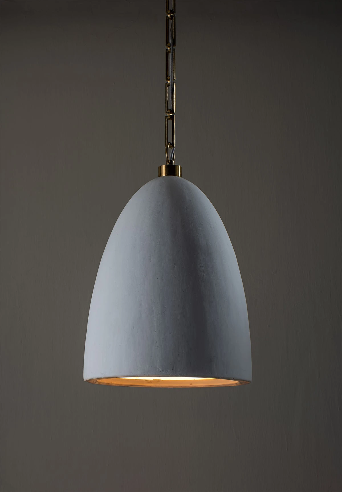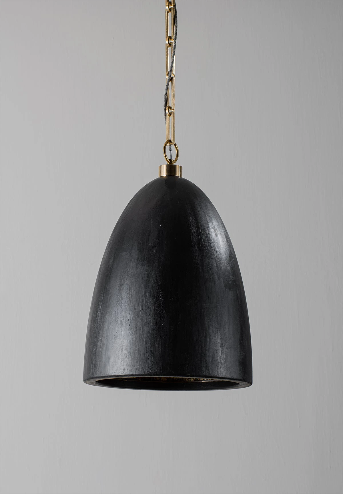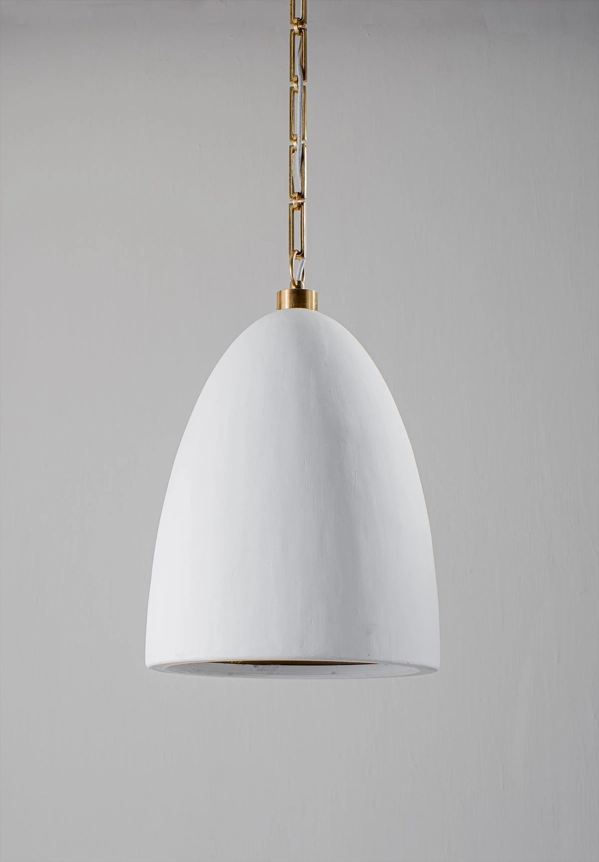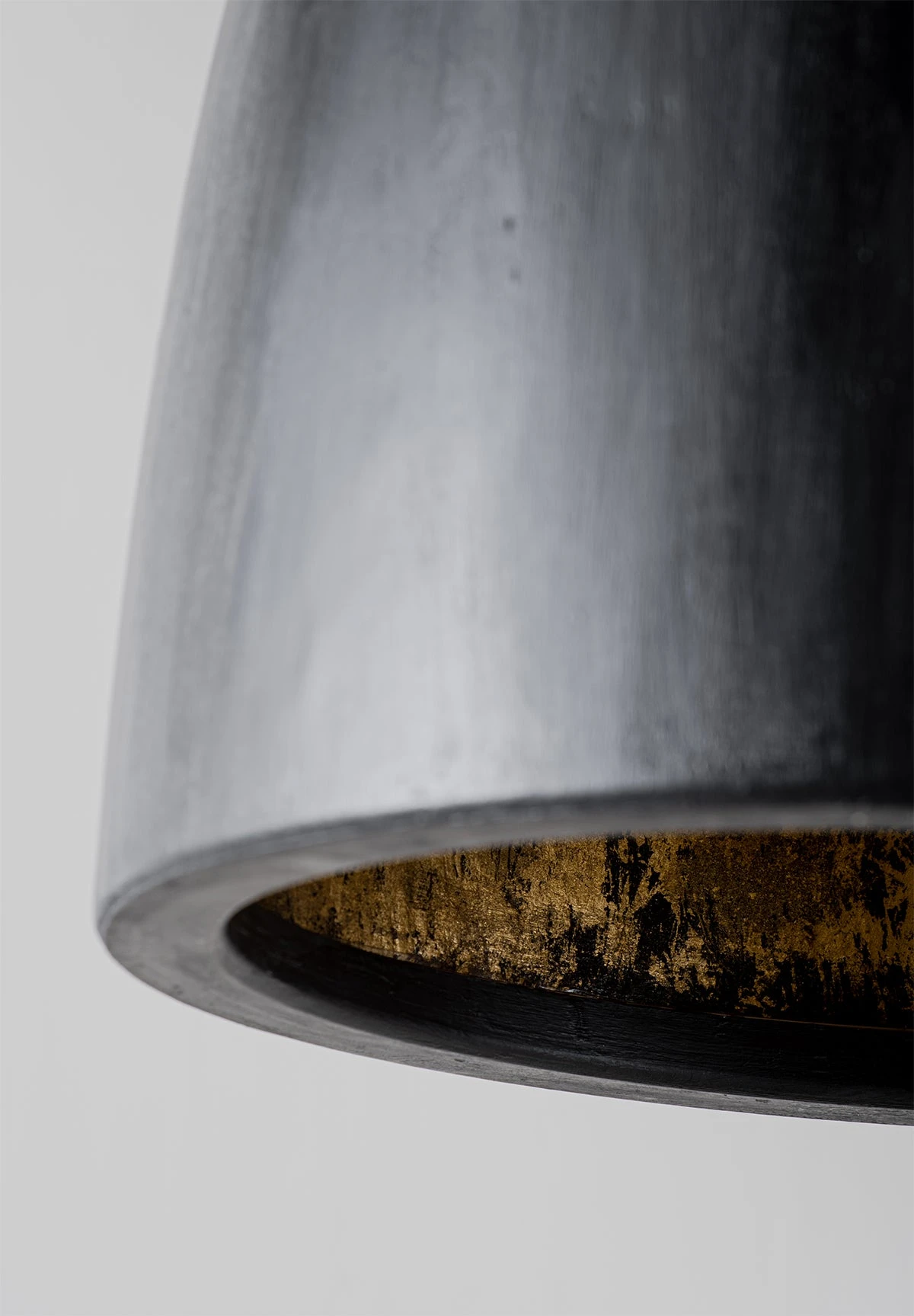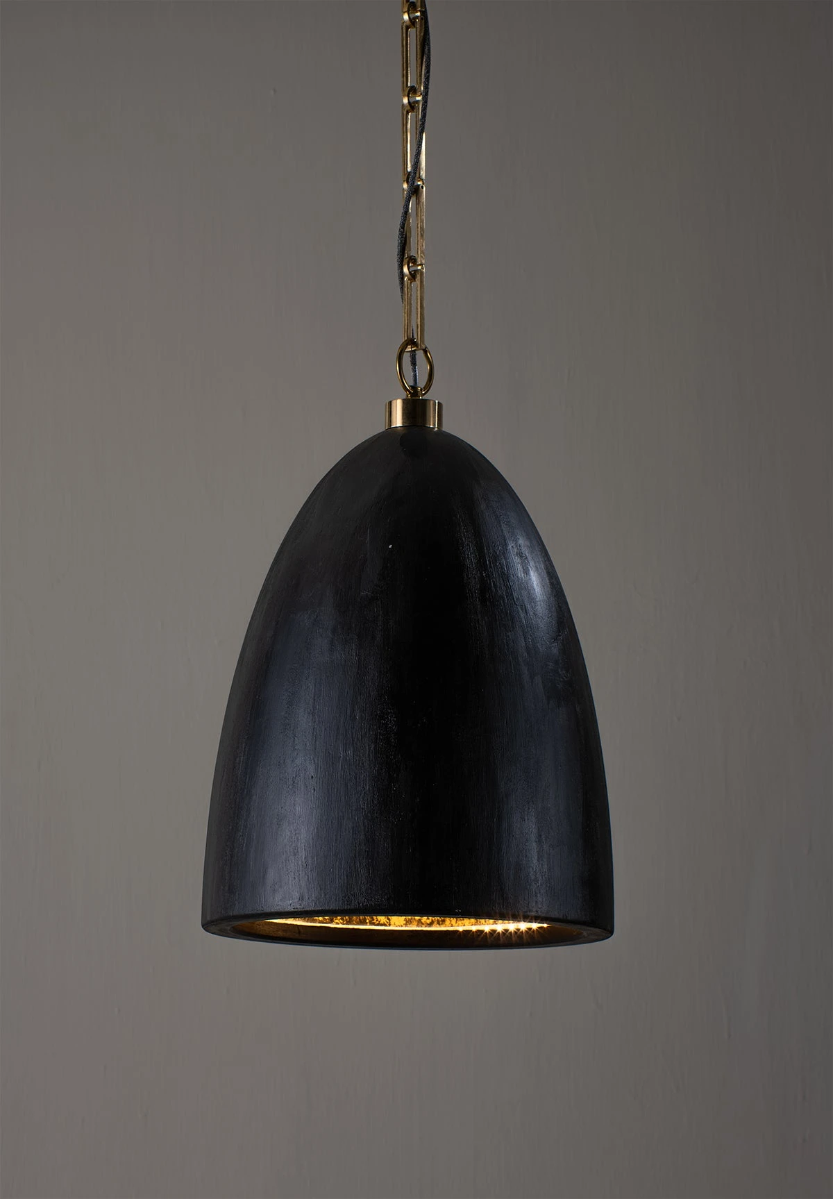 A simple cone shaped pendant, finished with an elegant brass interlinked chain and etched gold inner cup, hand-finished in our painting studio.
