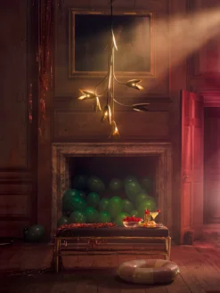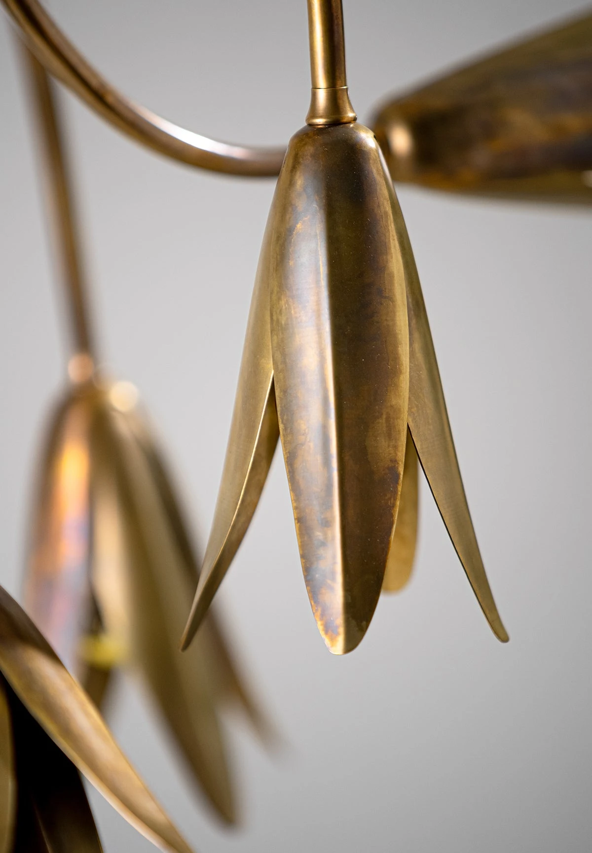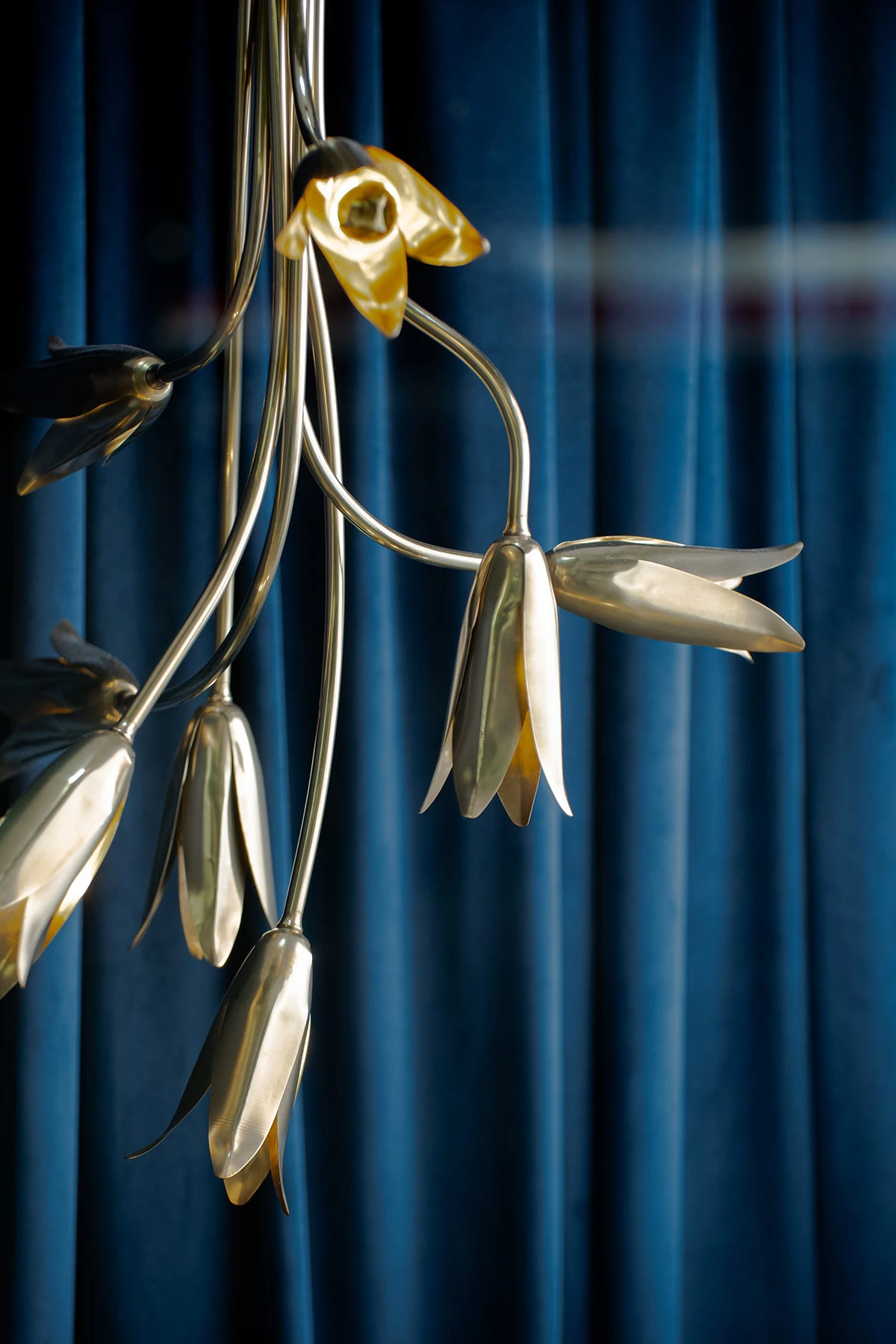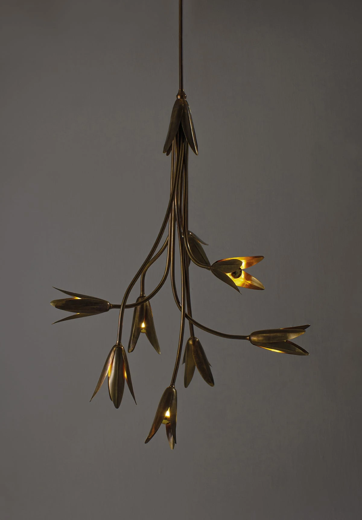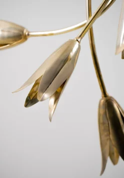 Magnificent in structure, the Morales is a beautifully hand-formed statement design. Featuring the flower heads of the Seven Hour Flower which emit directional light.