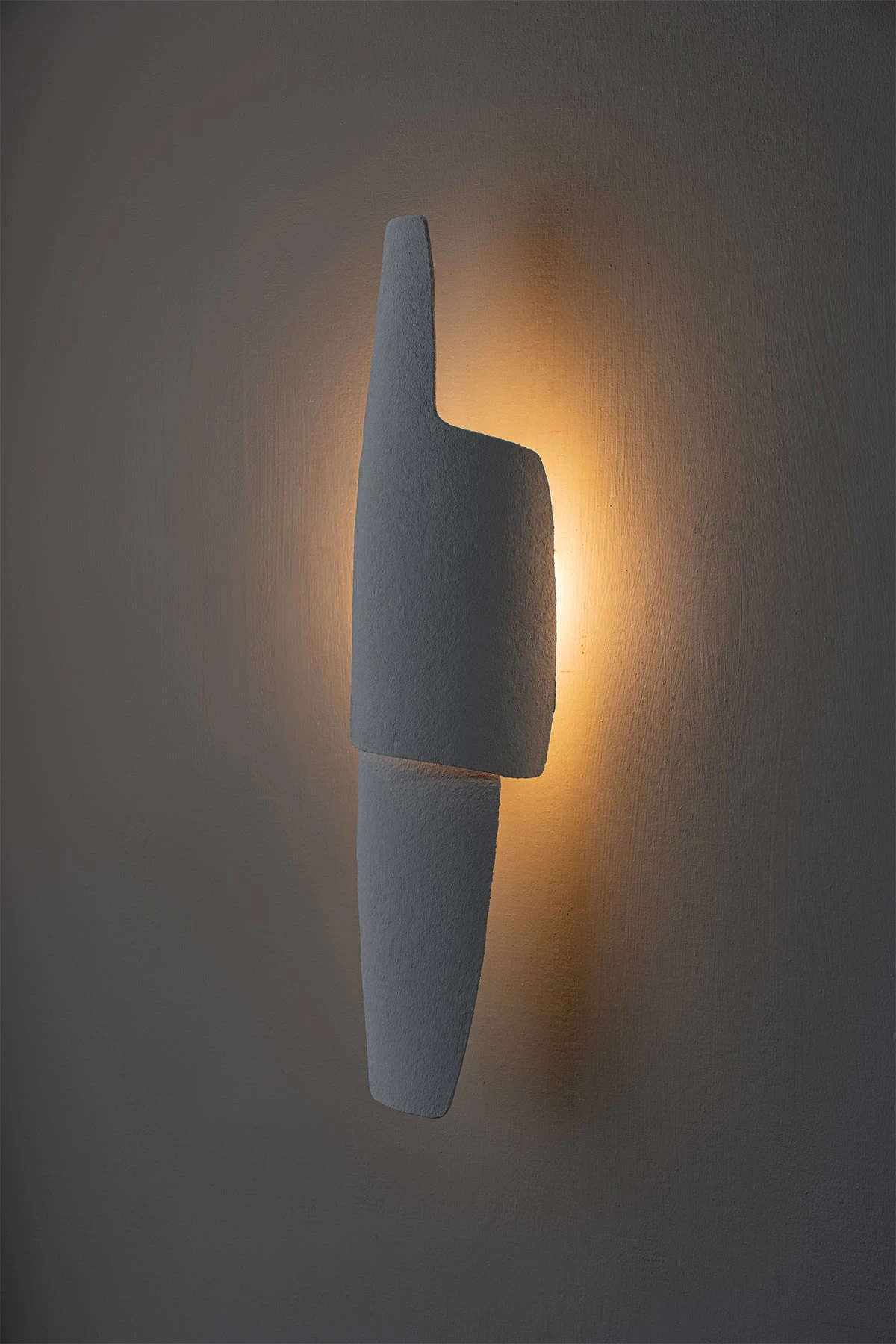 The Neolith Wall Light consists of overlapping folds that cast the light from within to create a diffused glow and enhance the subtle texture of the piece.