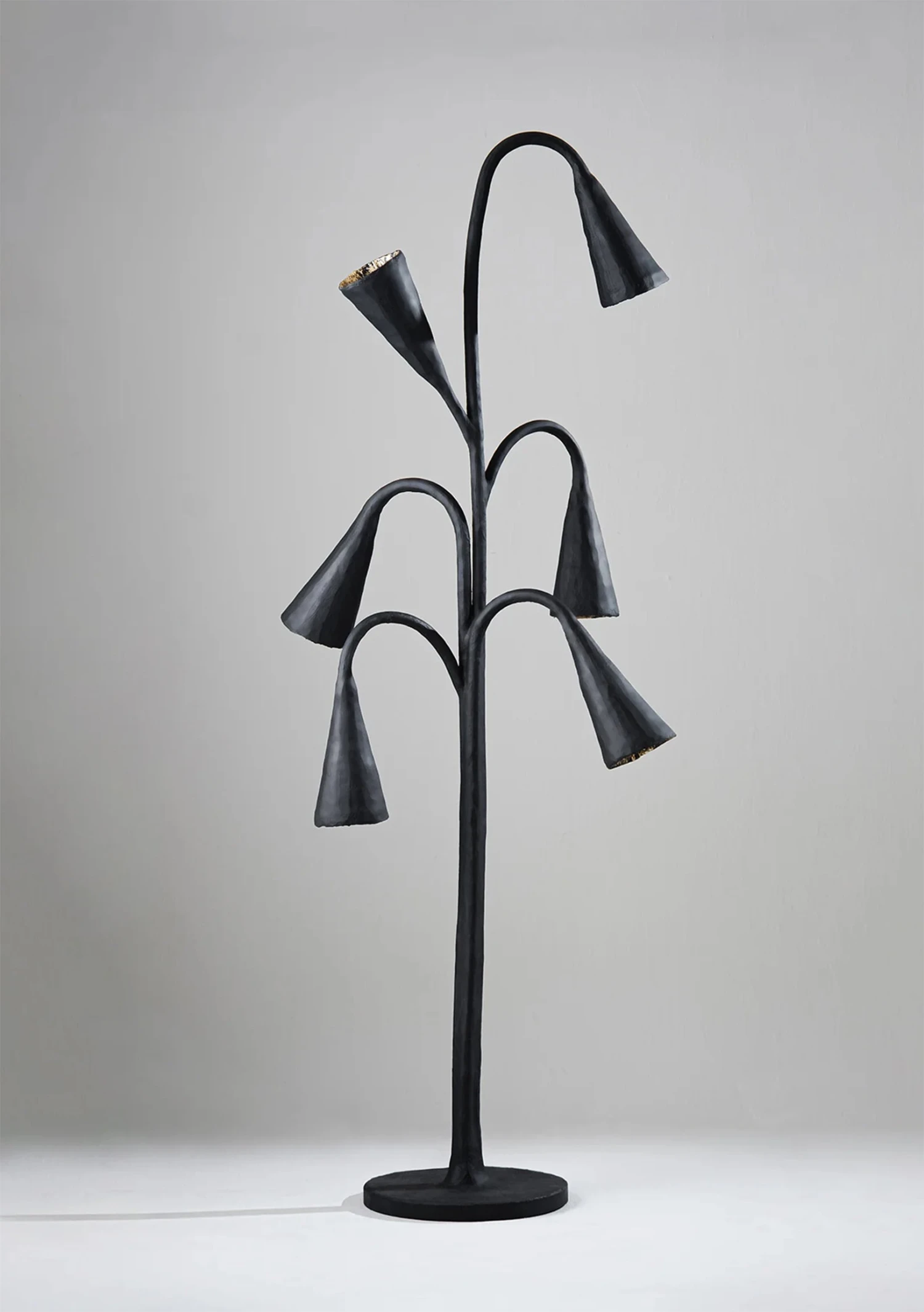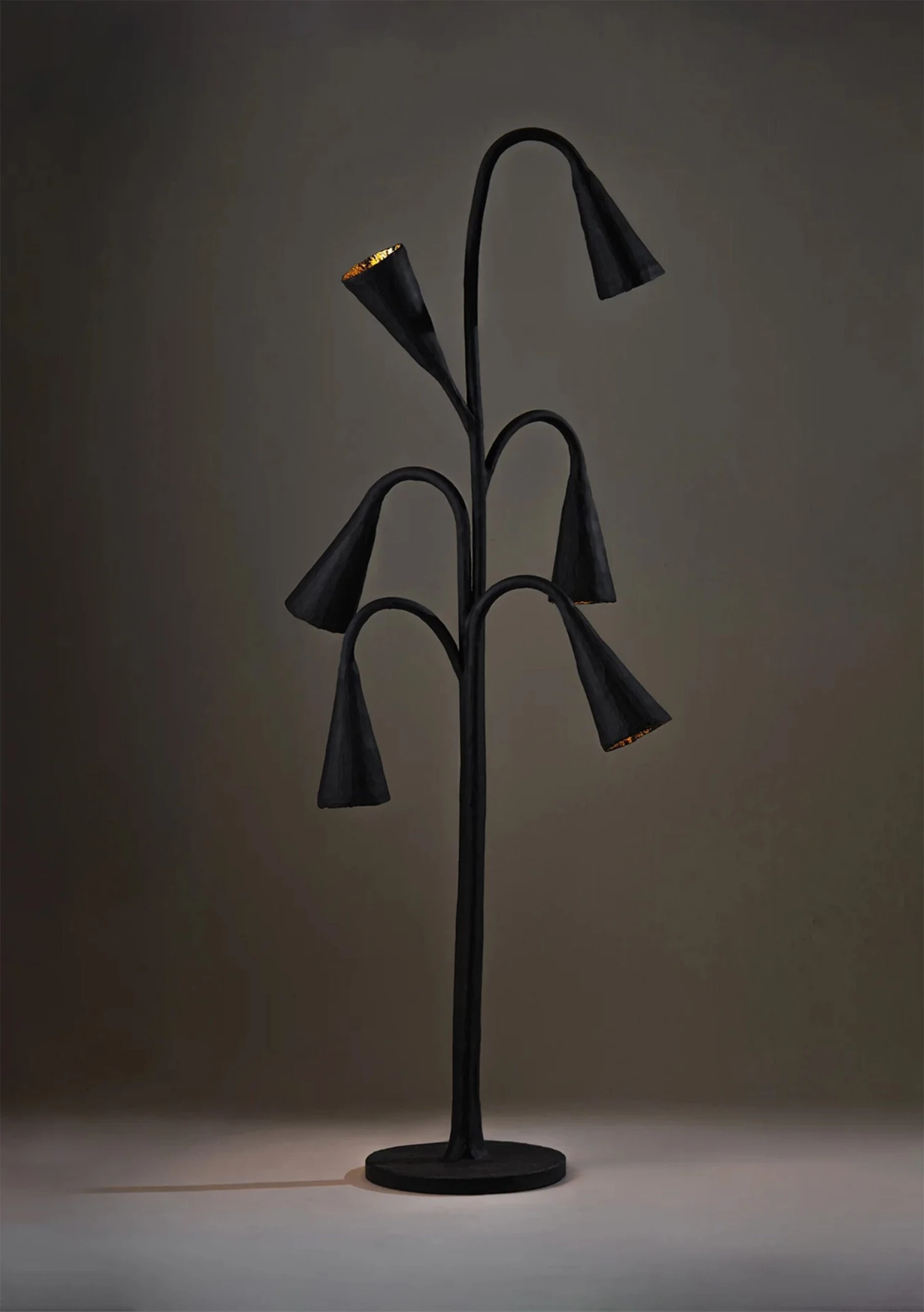 Each Ophelia floor lamp is individually hand sculpted by our artists in the paint workshop. Featuring beautifully twisting flutes that emit a golden light which is softened by its sculptural surface.