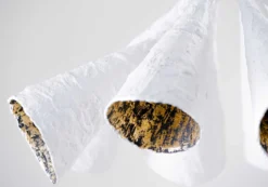 Each Ophelia ceiling light is individually hand sculpted by our artists in the paint workshop. Featuring beautifully twisting flutes that emit a golden light which is softened by its sculptural surface.Â