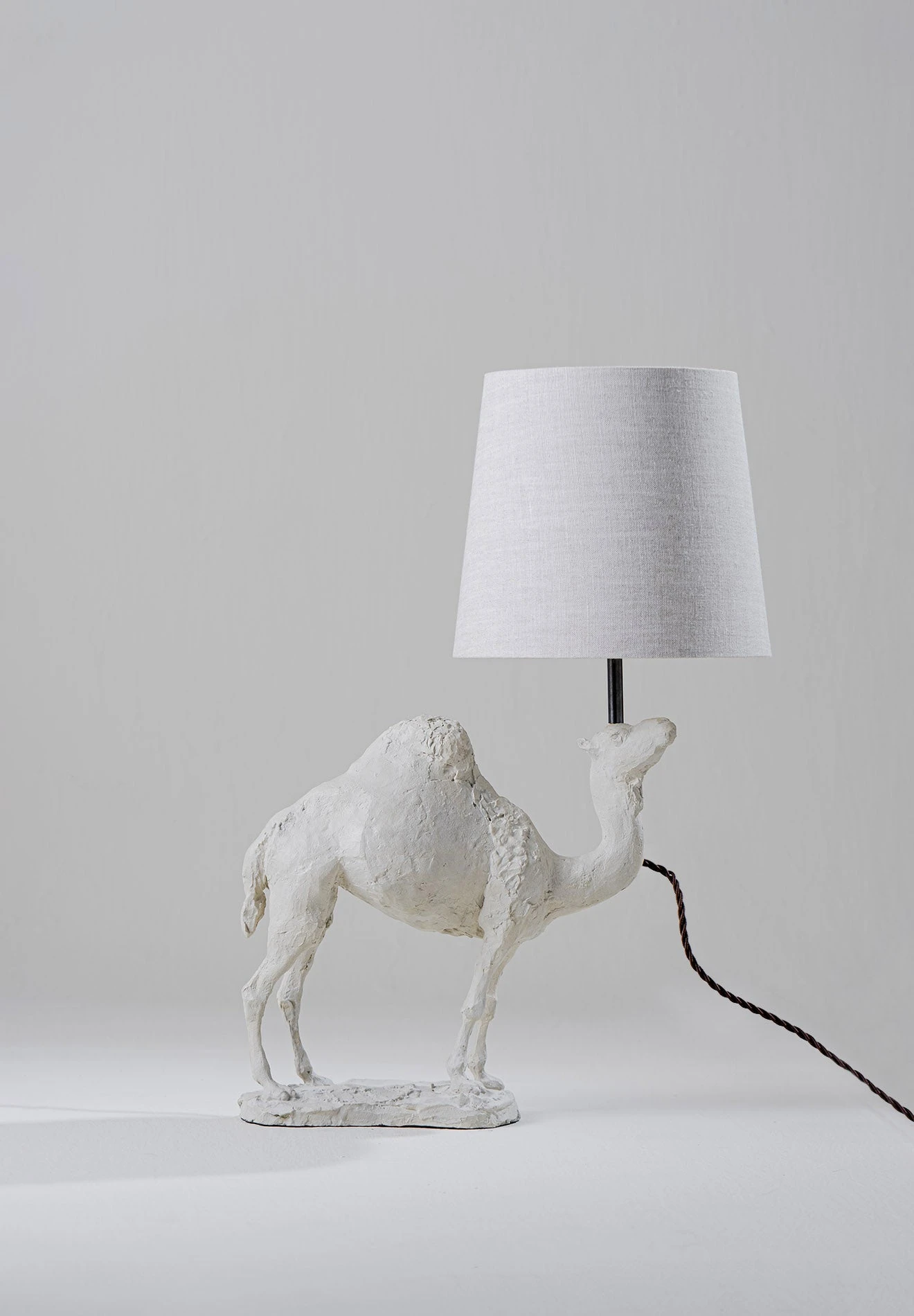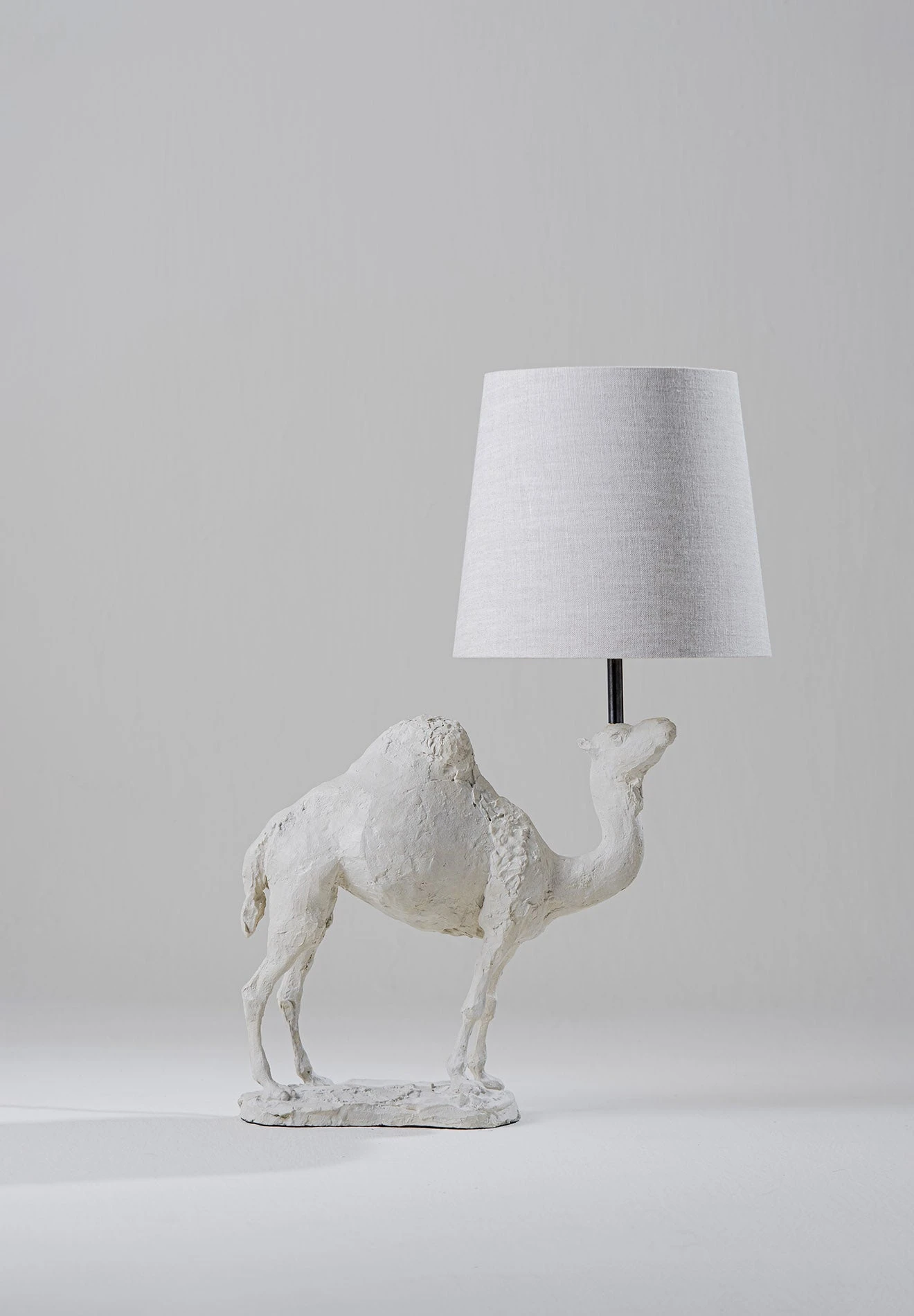 Models of animals have a childlike appeal across the generations and have repeatedly featured in our collections over the years. Percy is a beautifully textured and sculpted camel lamp, bursting with character and haughty charm. Constructed from case jesmonite, a water-based alternative to resin, and hand-finished in Antiqued Plaster.